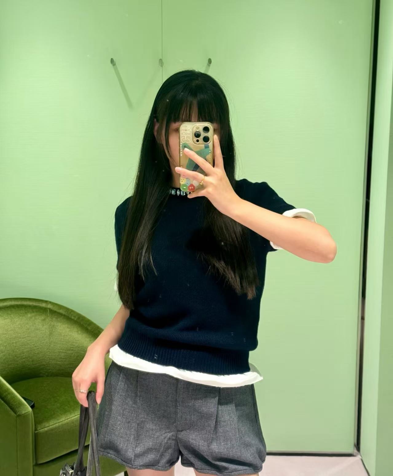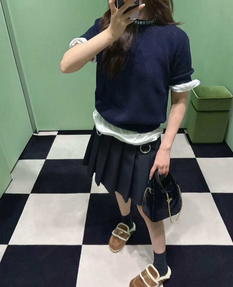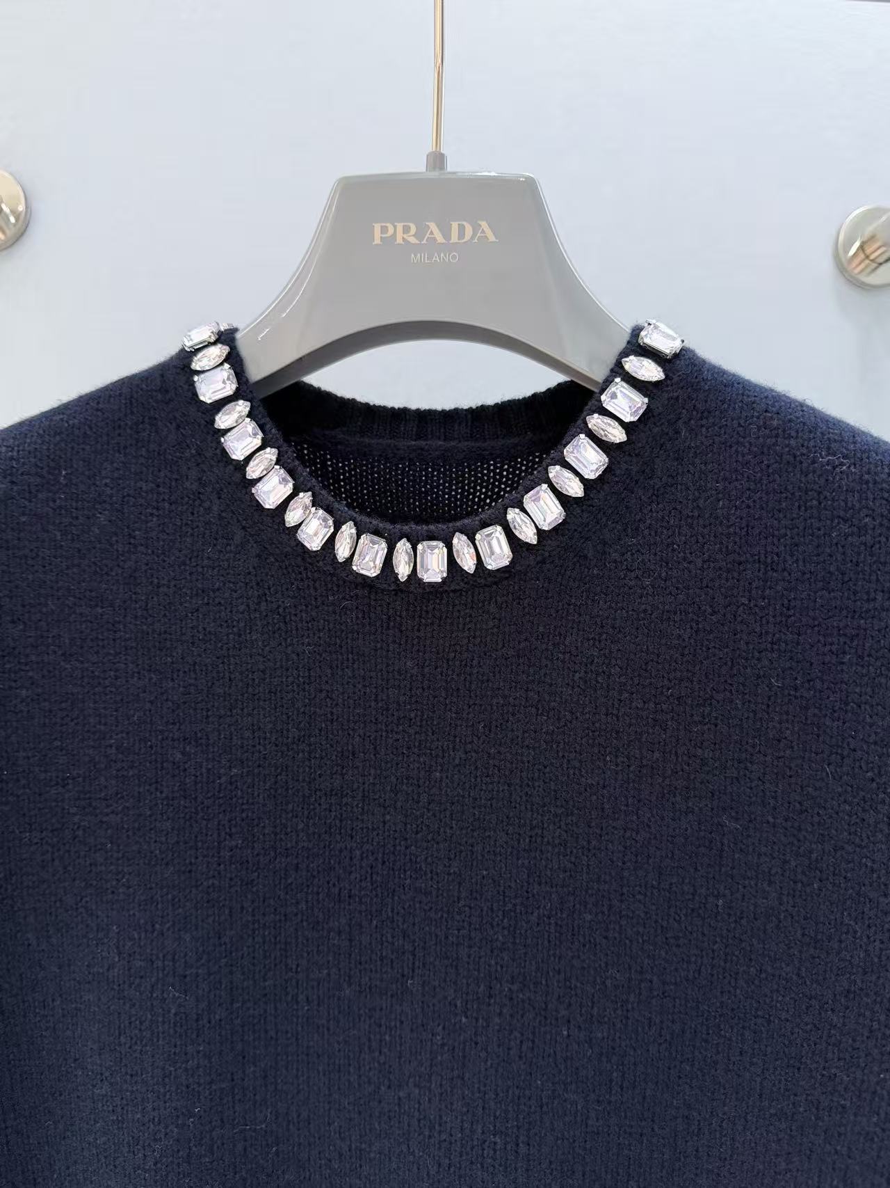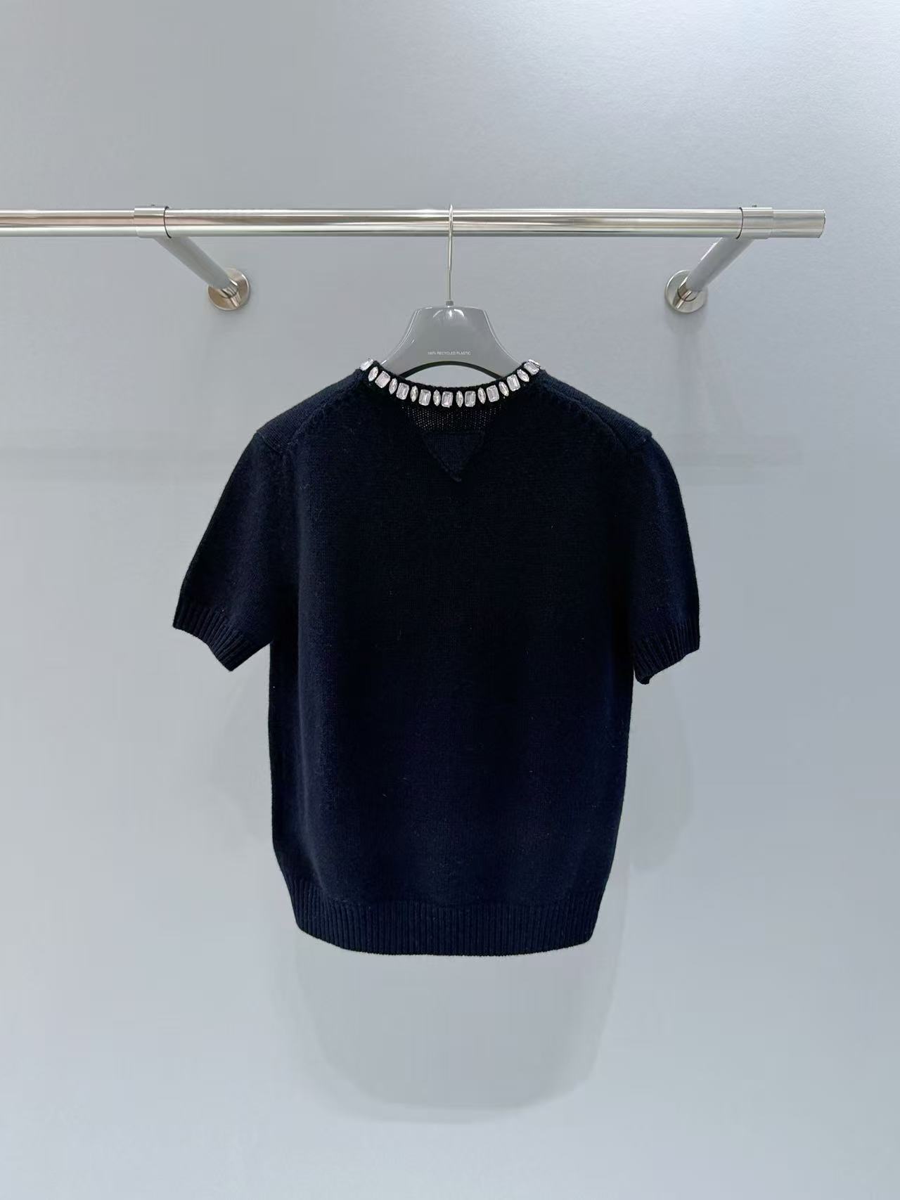 2025秋冬 PD家 領口鑲鑽羊絨短袖