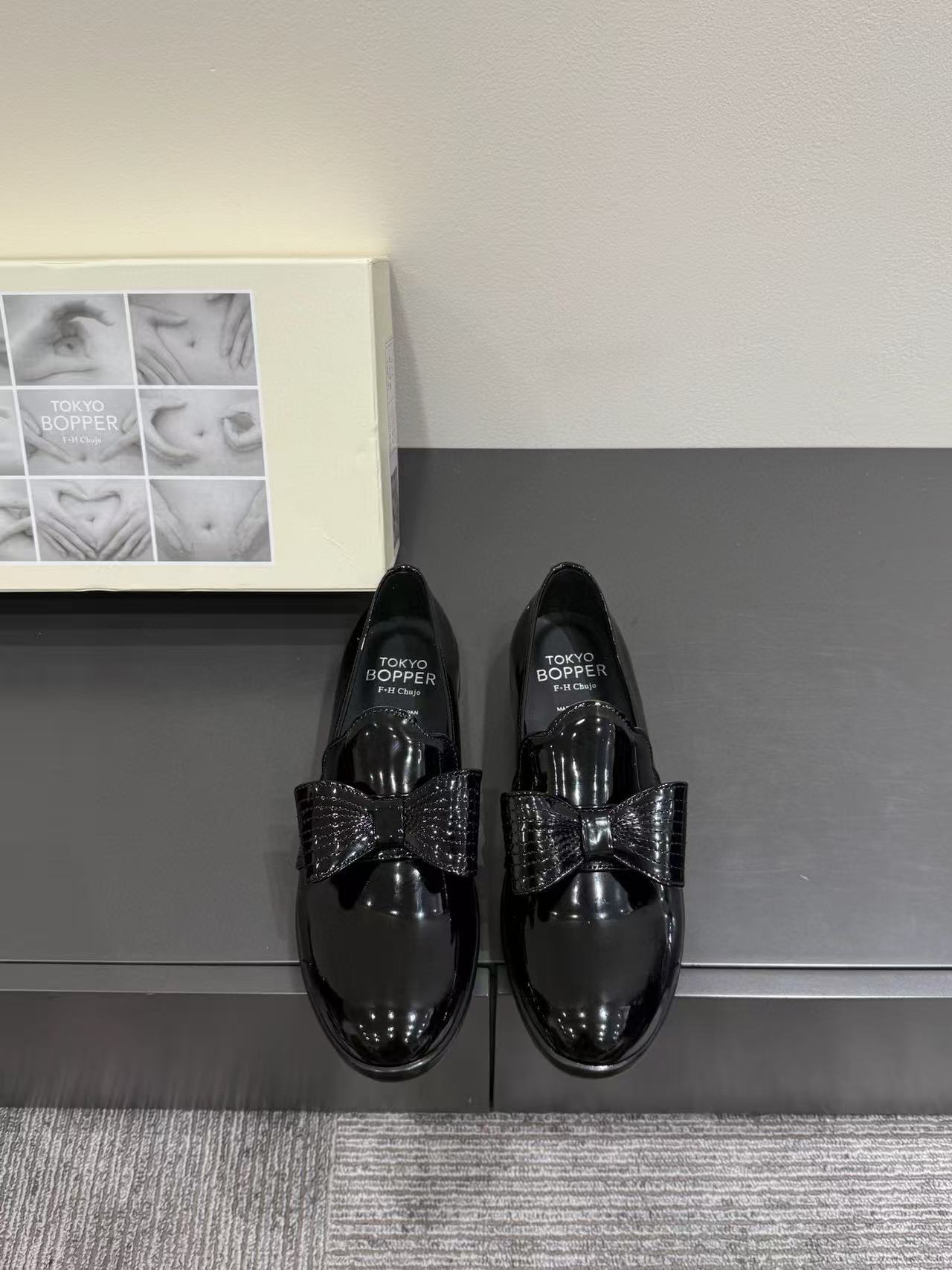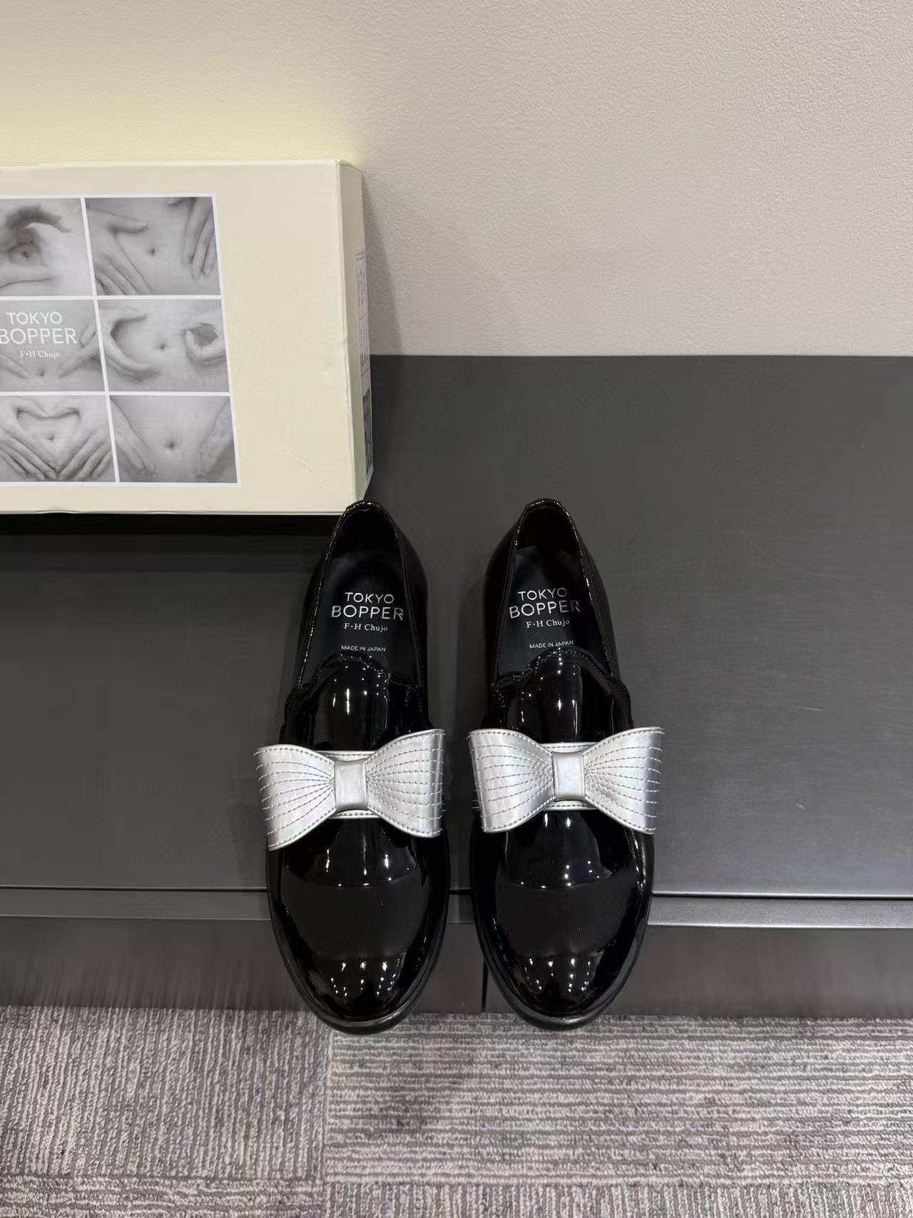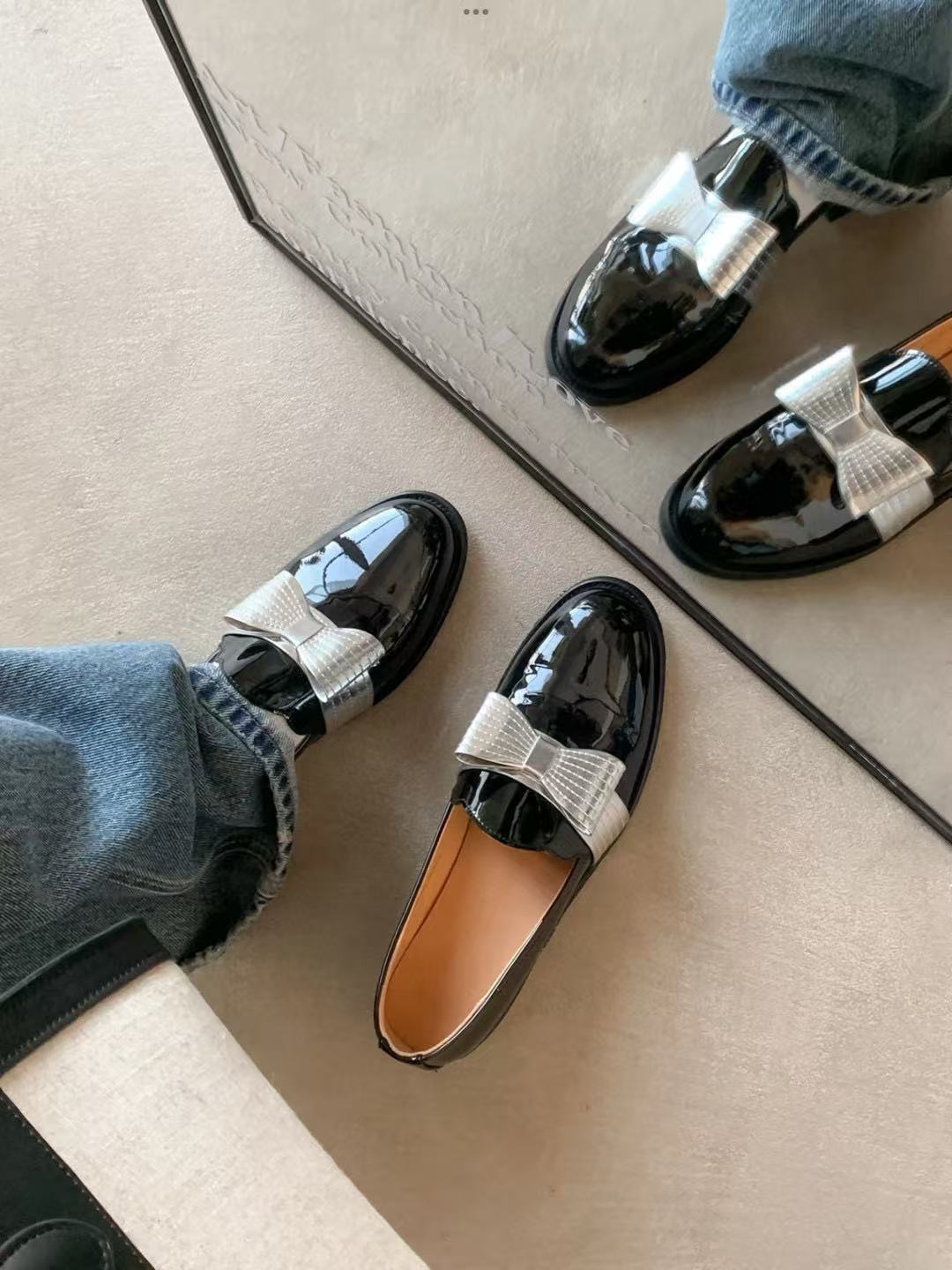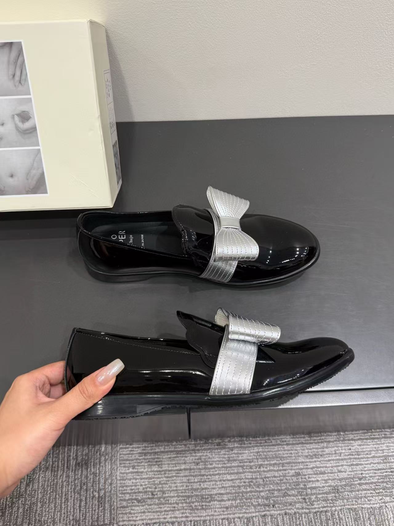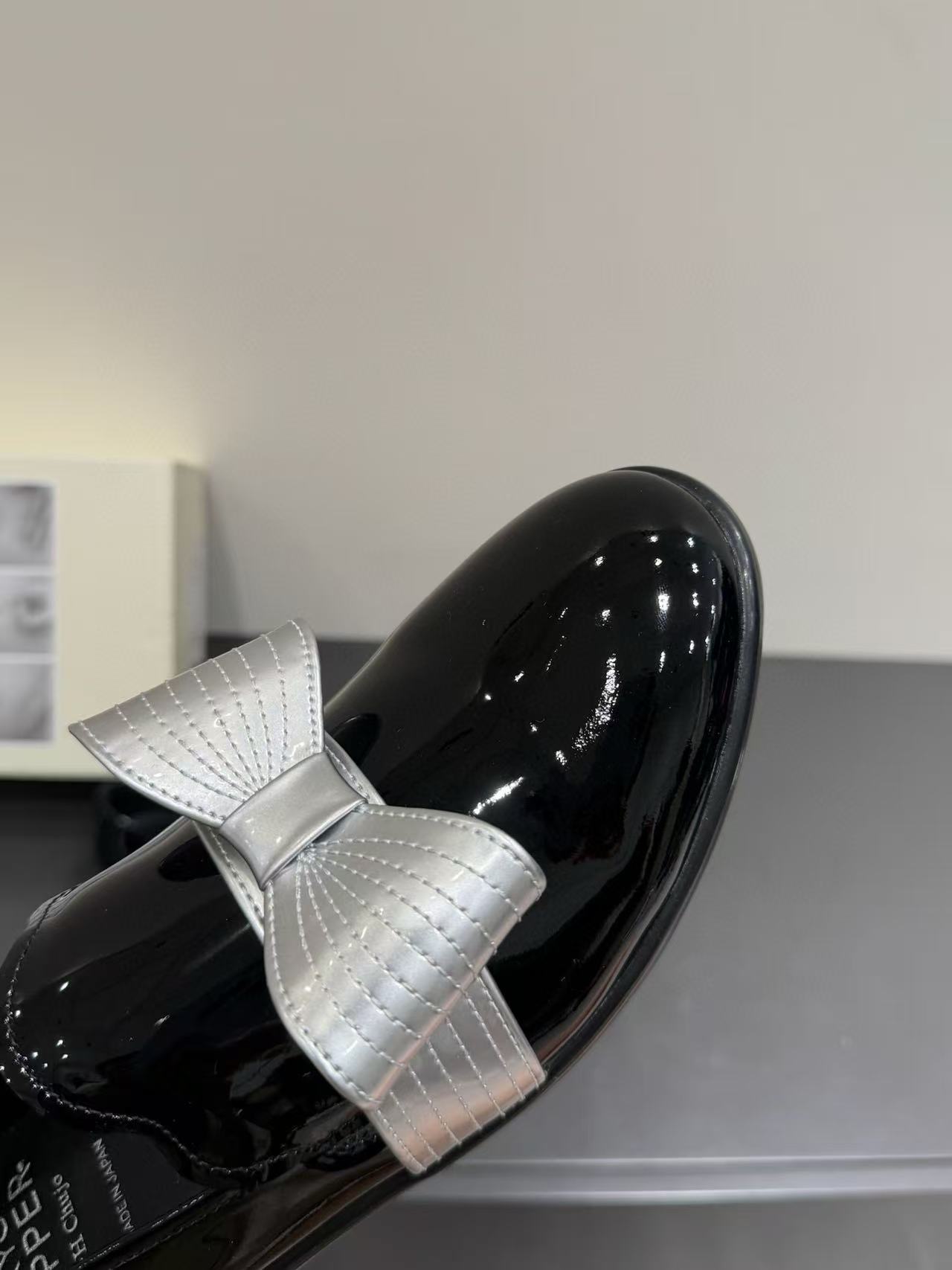 漆皮黑銀色蝴蝶結 /