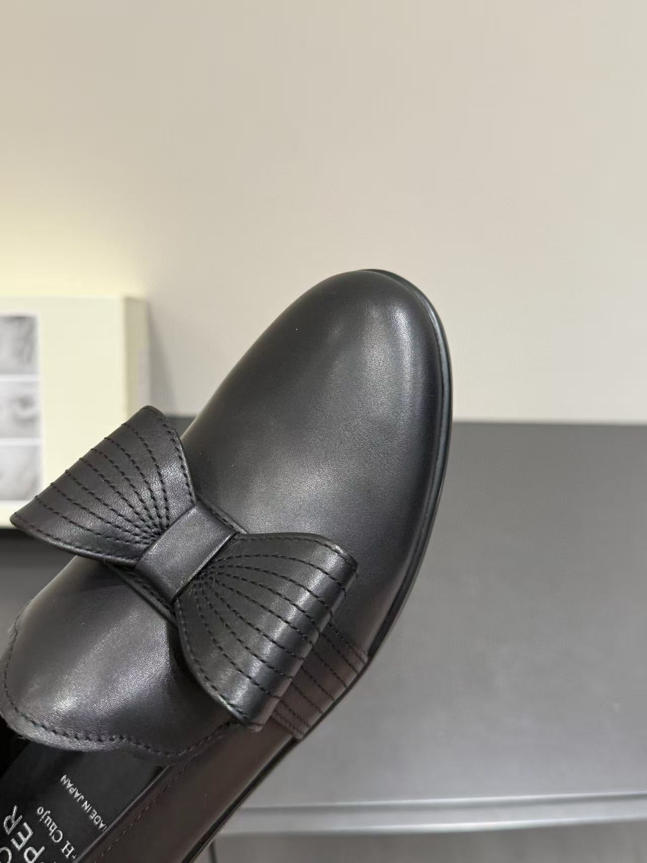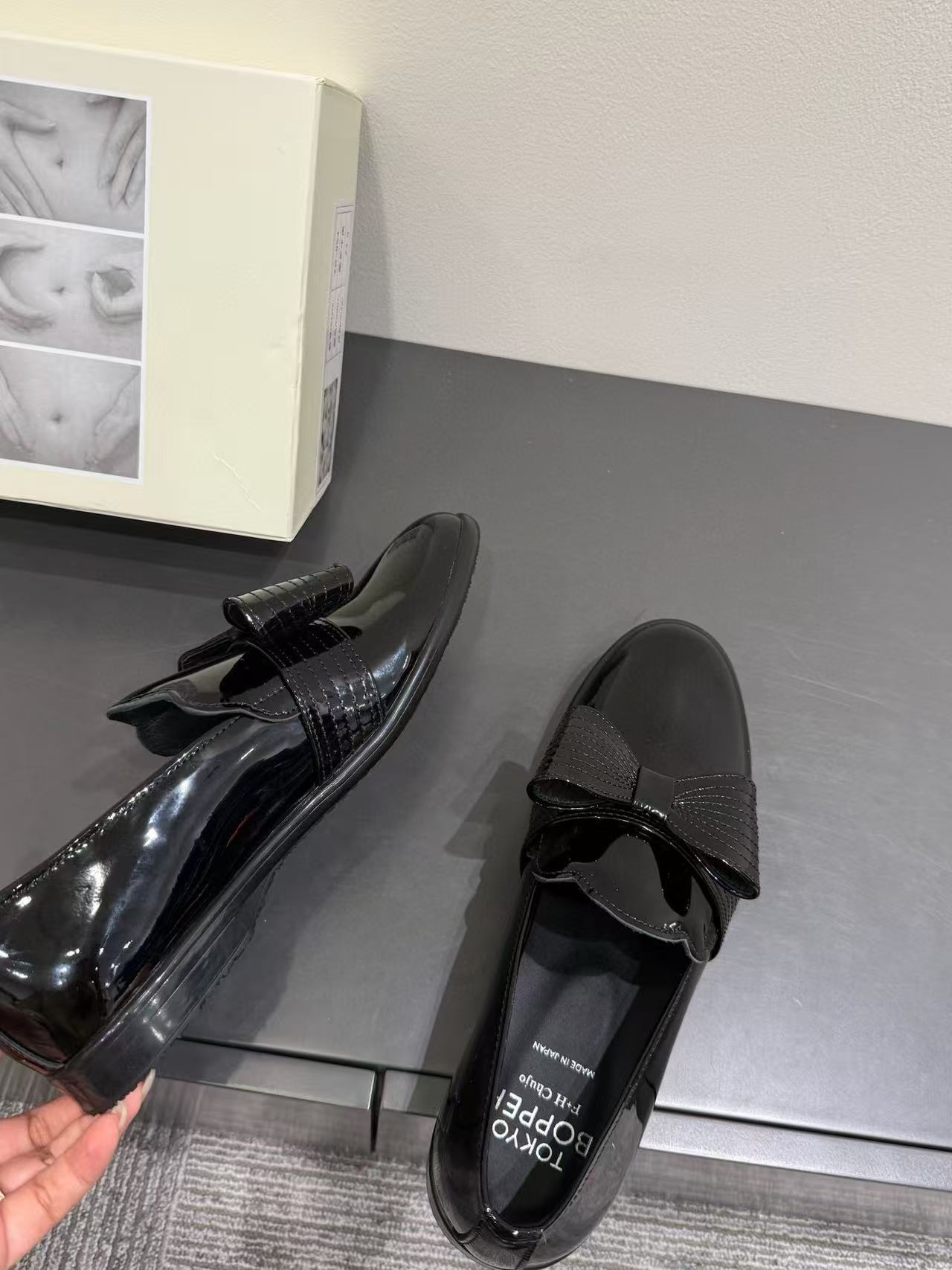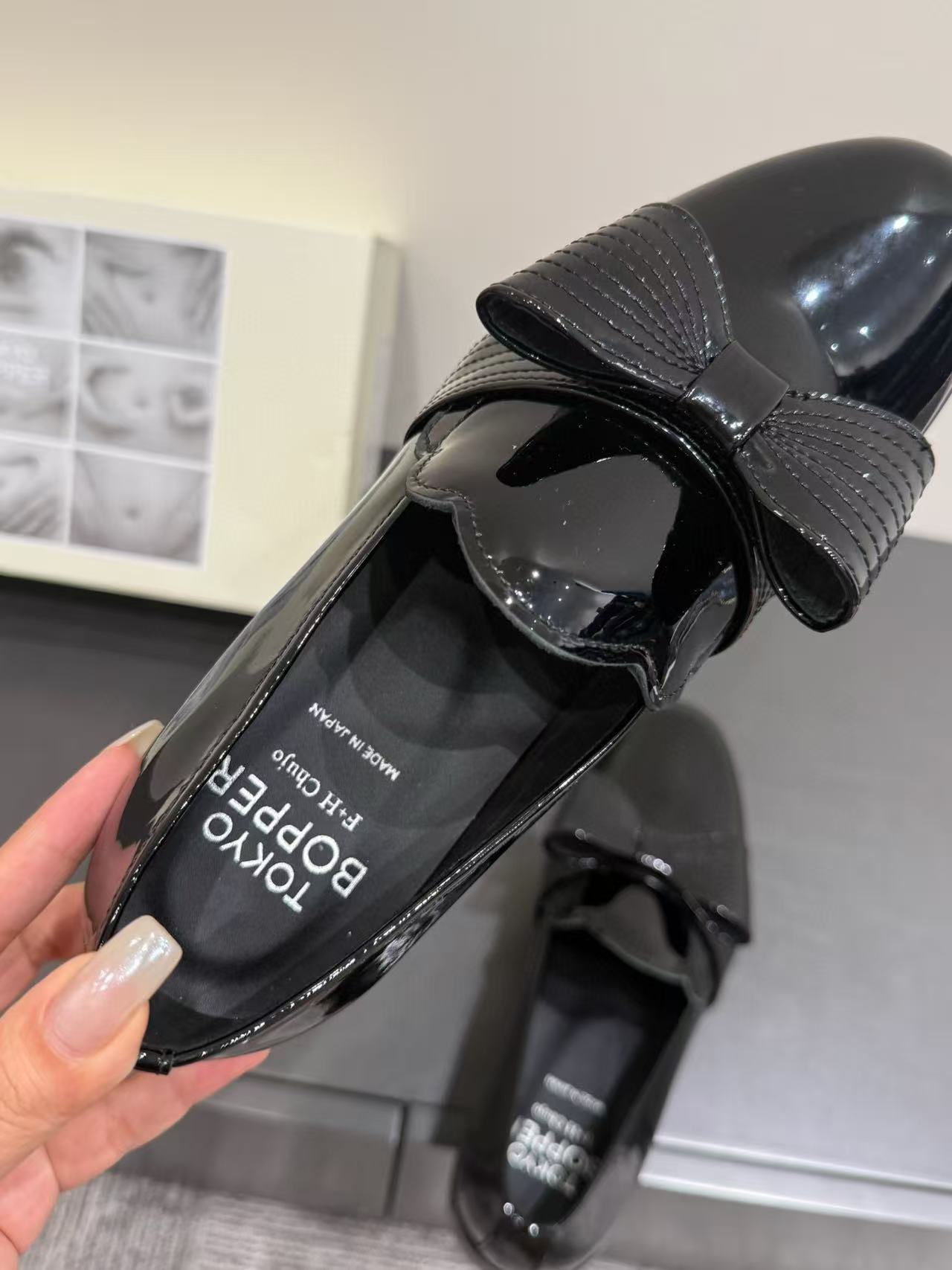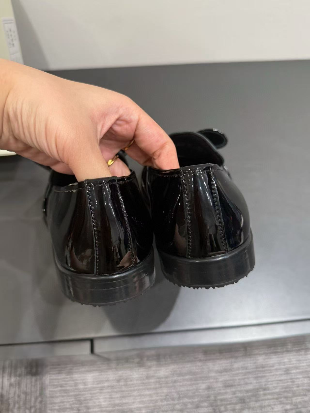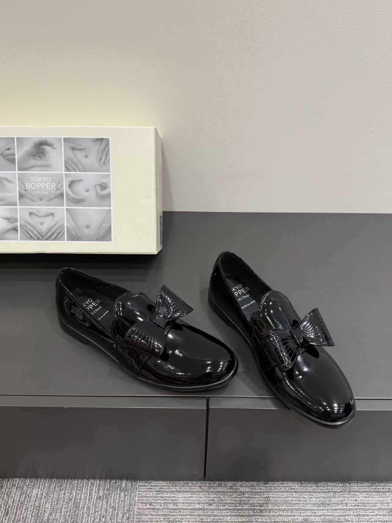 漆皮黑銀色蝴蝶結 /