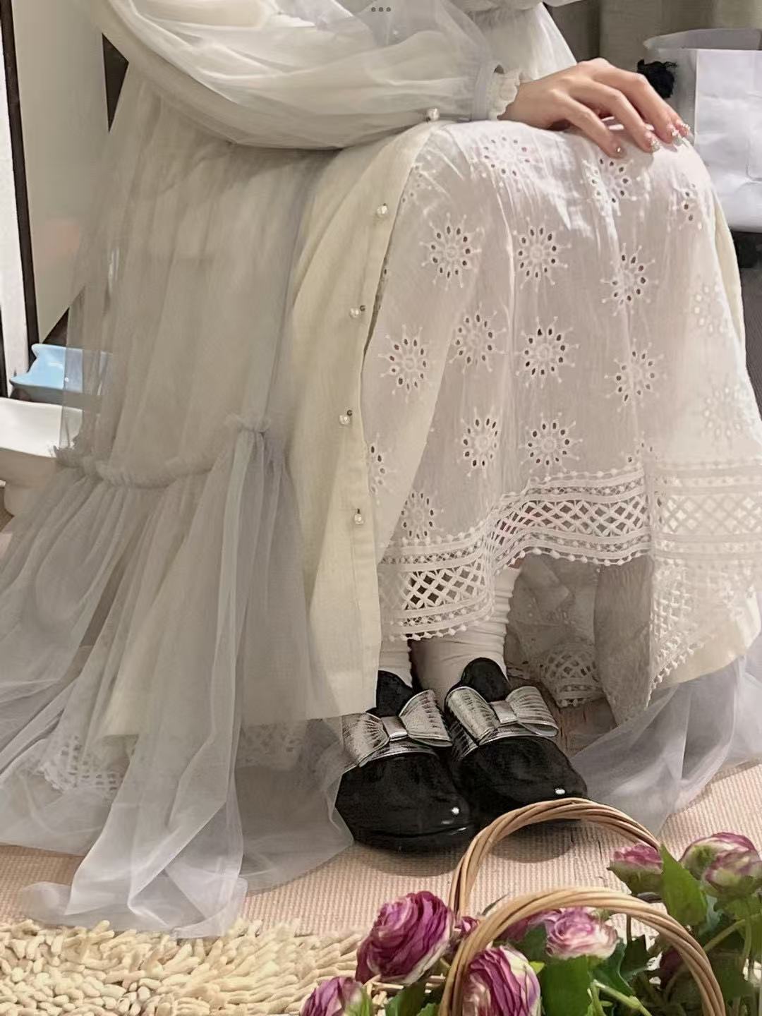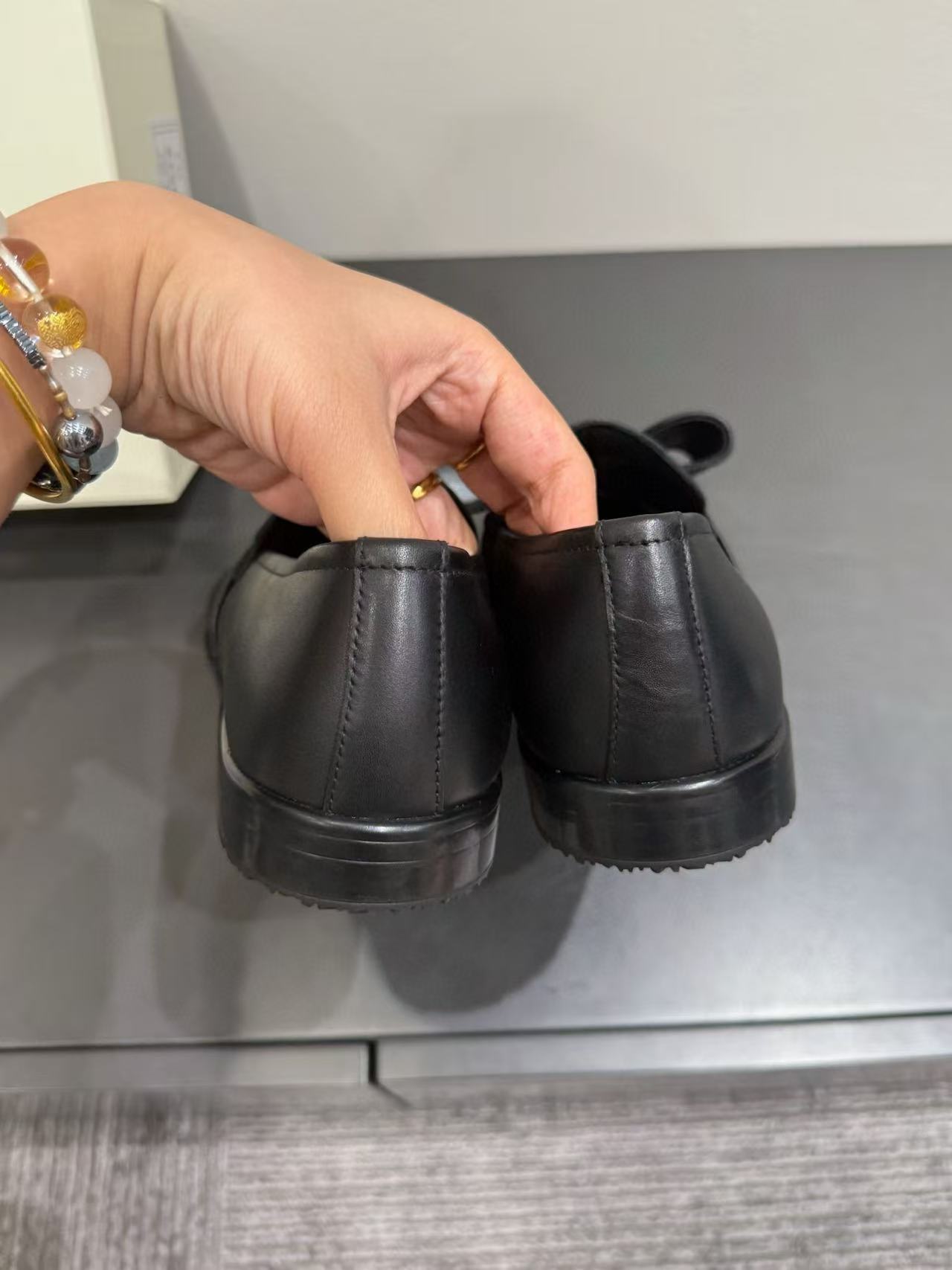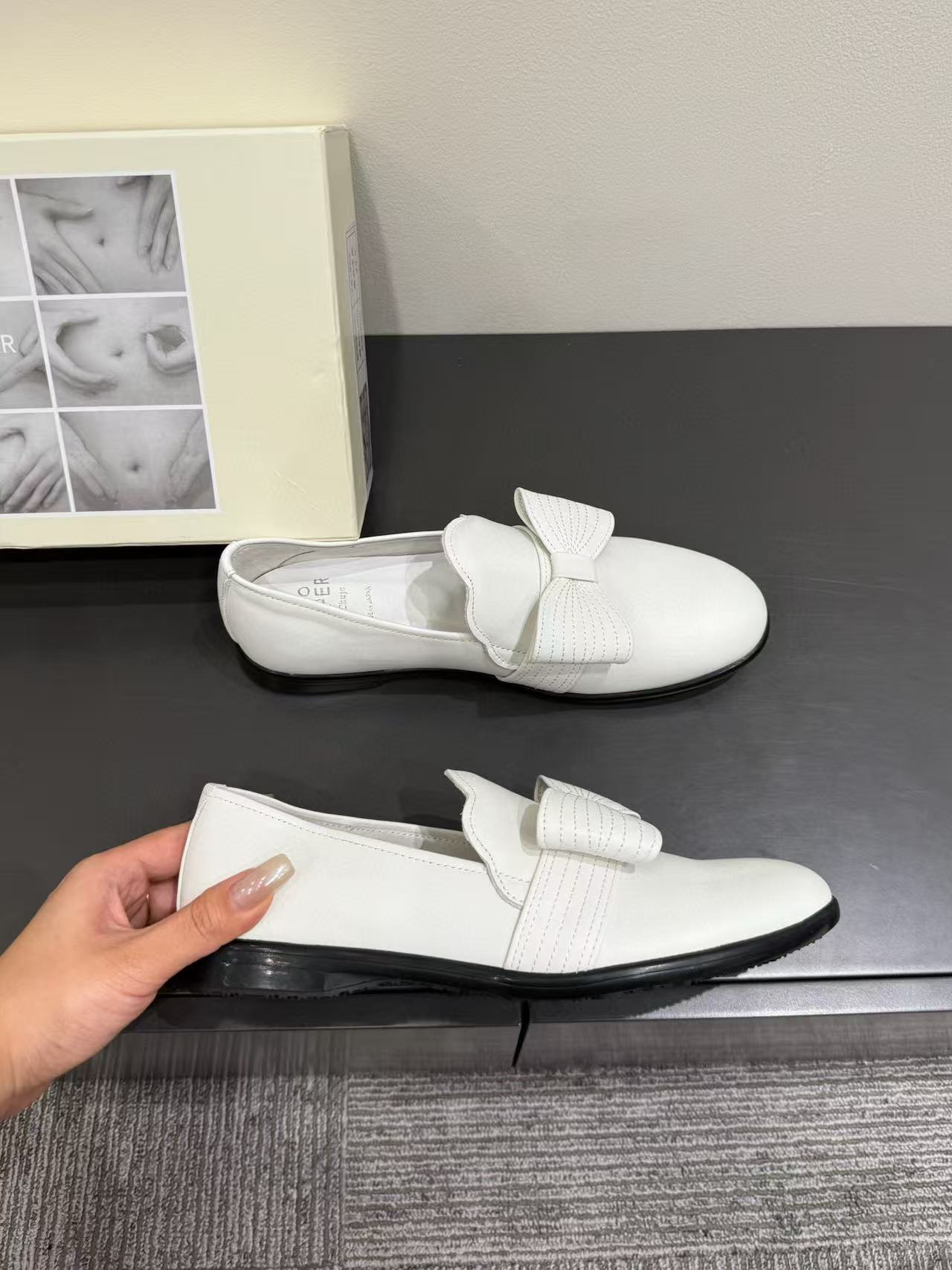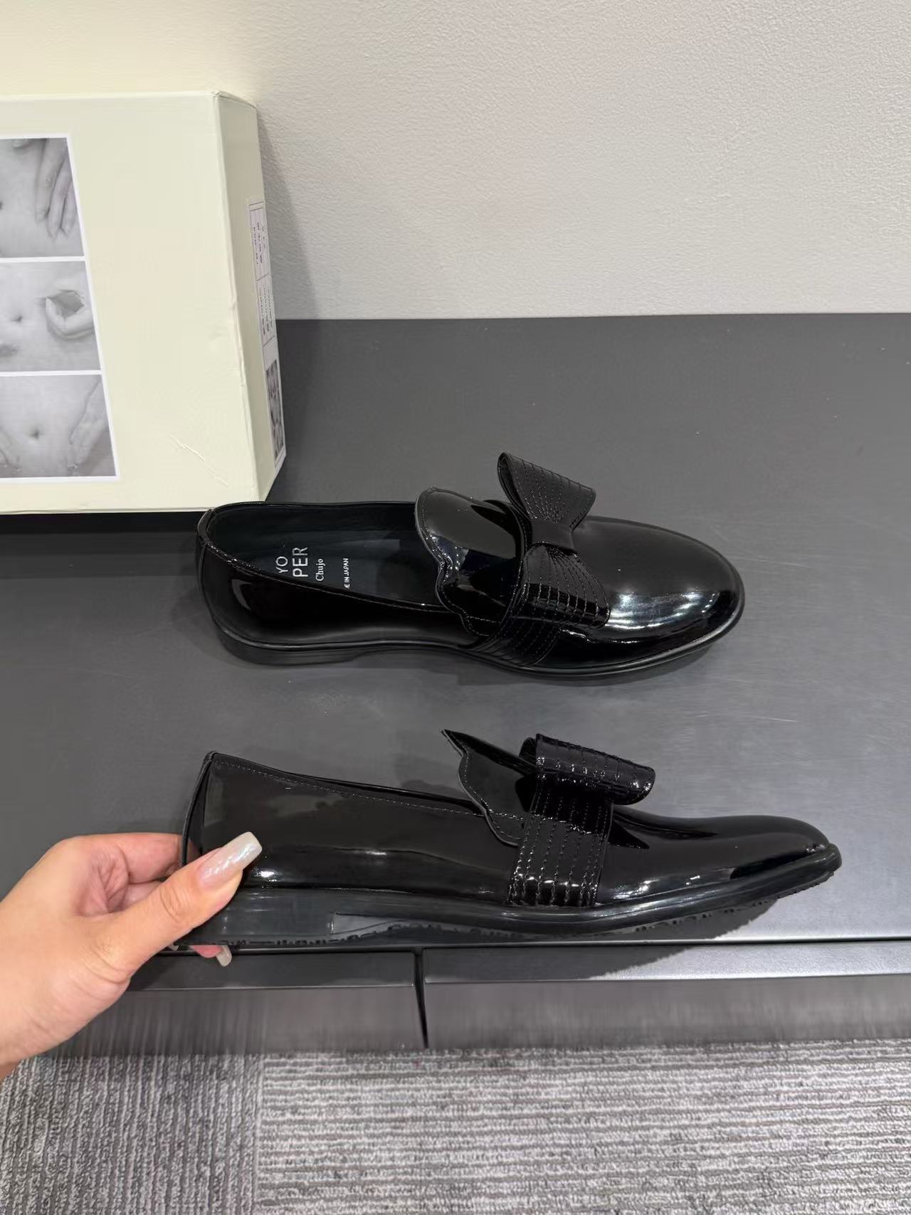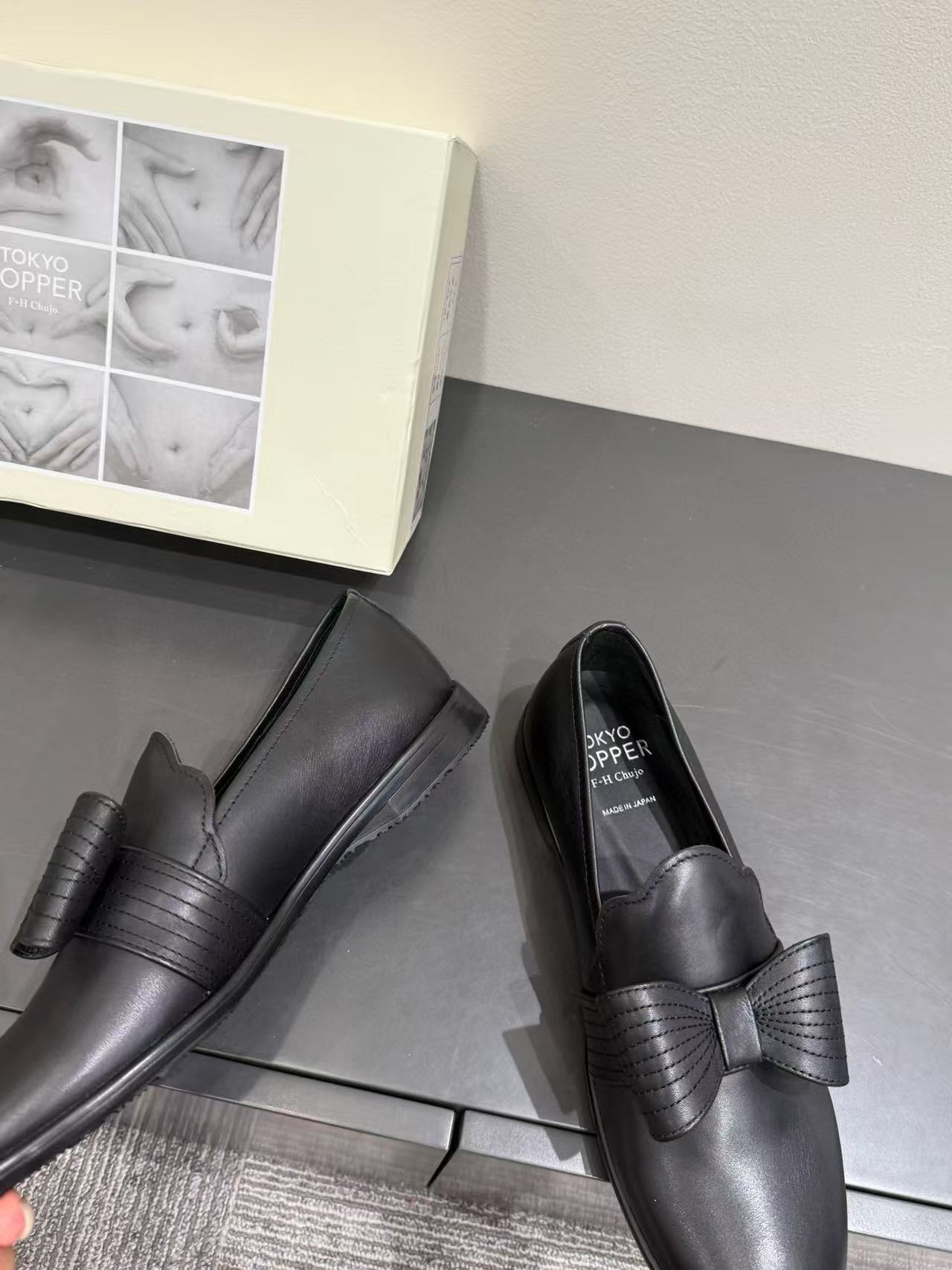 漆皮黑銀色蝴蝶結 /