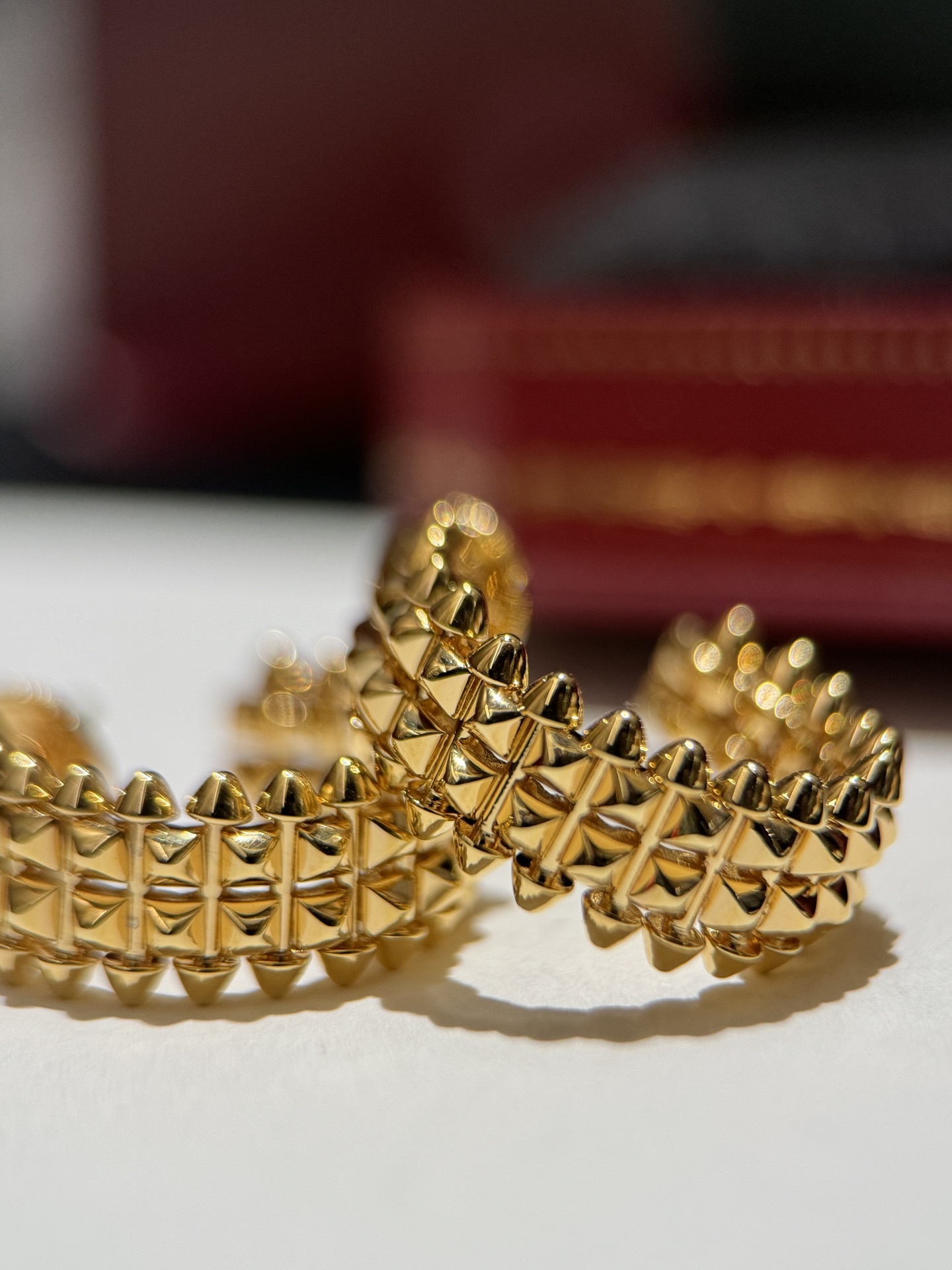 這款雙排尖錐亮金耳環來自Clash de系列,一眼就讓人留下深刻印象。