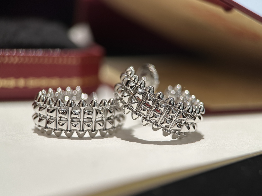 整體線條俐落有型,看似簡約,實則工藝層次相當豐富。雙排排列讓視覺更立體,佩戴在耳畔能自然修飾臉型,存在感十足卻不顯浮誇。