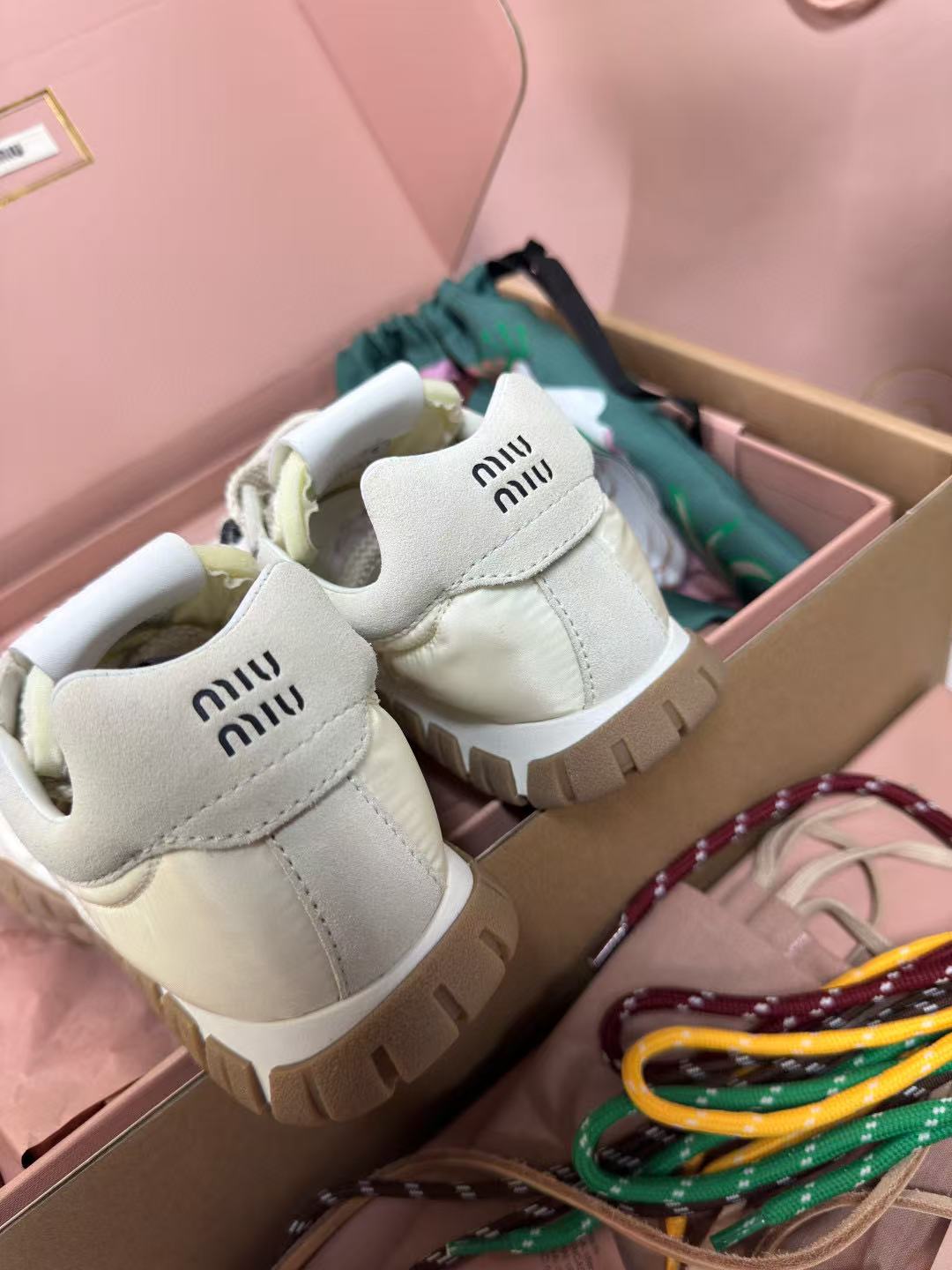 品牌標誌細節,從鞋舌、鞋領到鞋底,滿滿 Miu Miu 精緻標誌