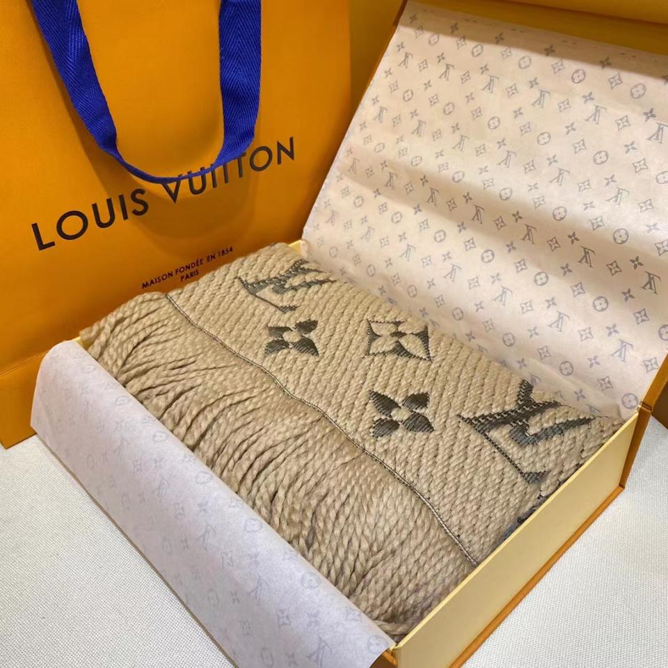 2021秋冬 經典款式 每年首選的圍巾 大老花流蘇羊毛圍巾(卡其色)
