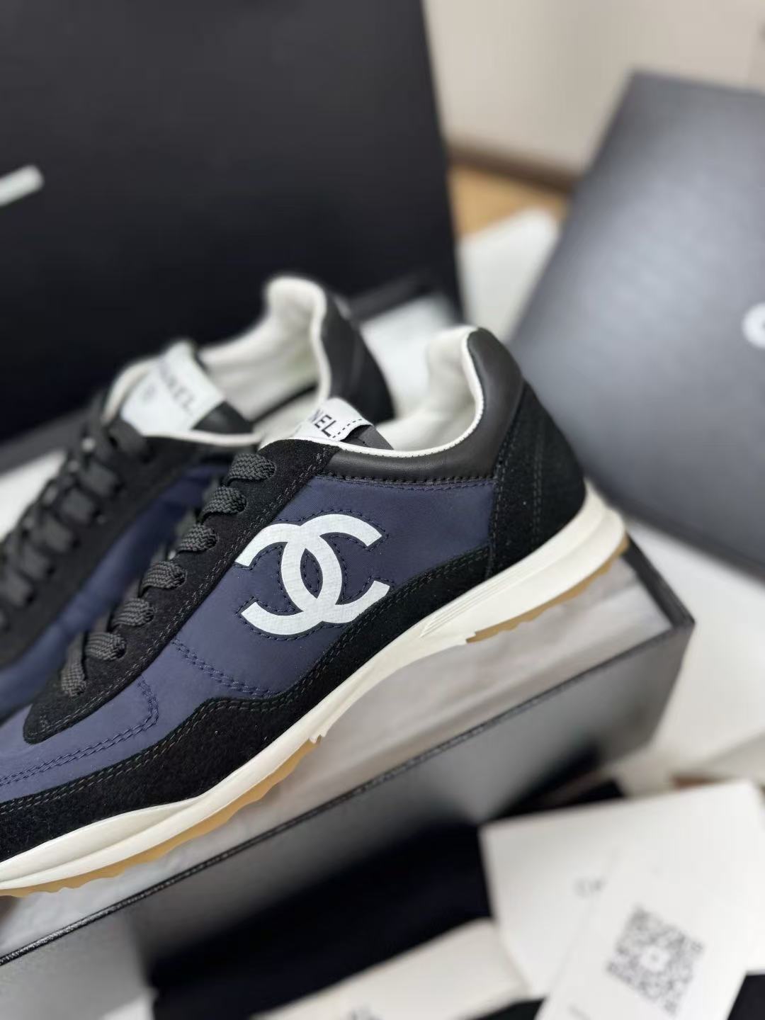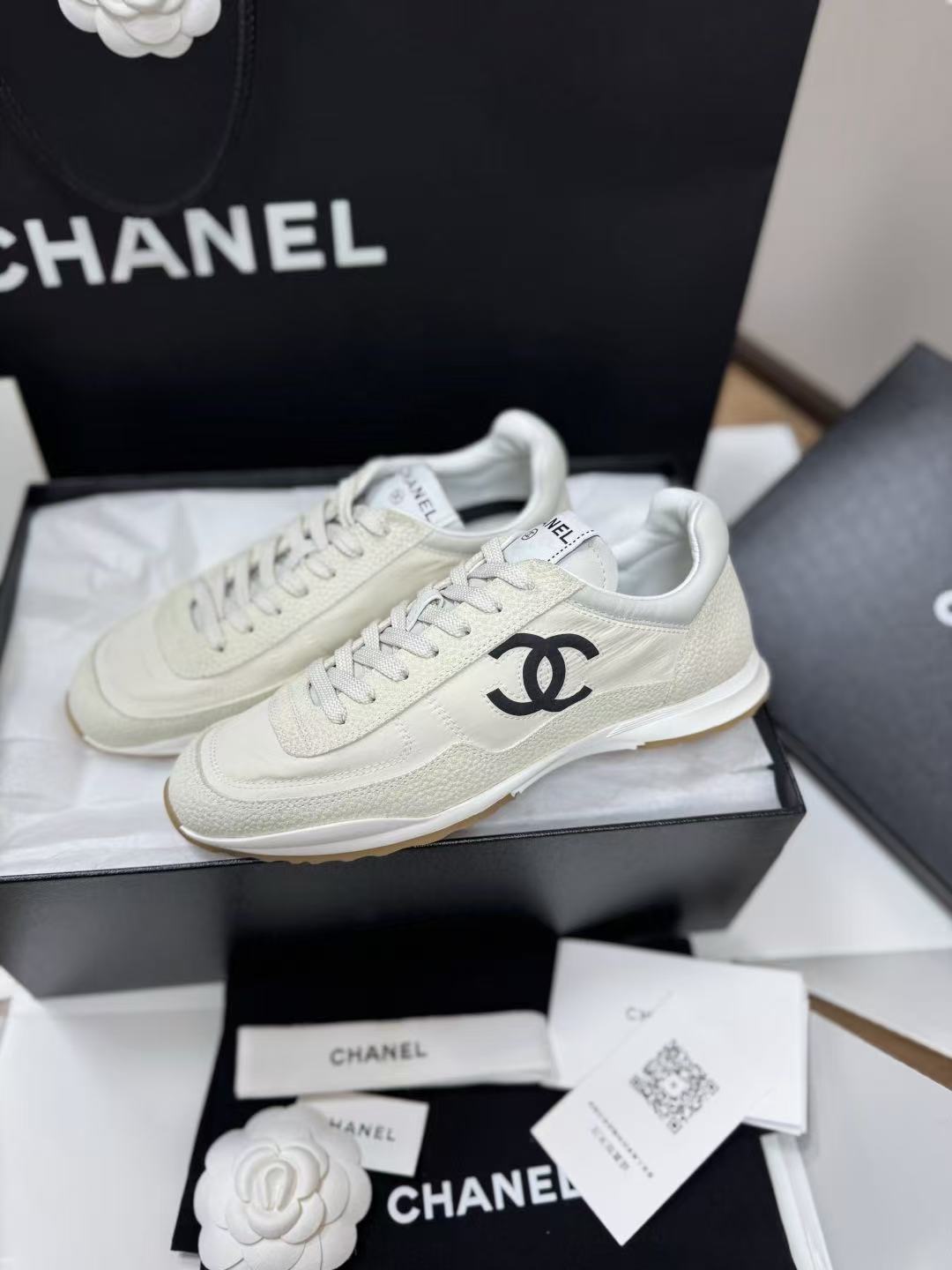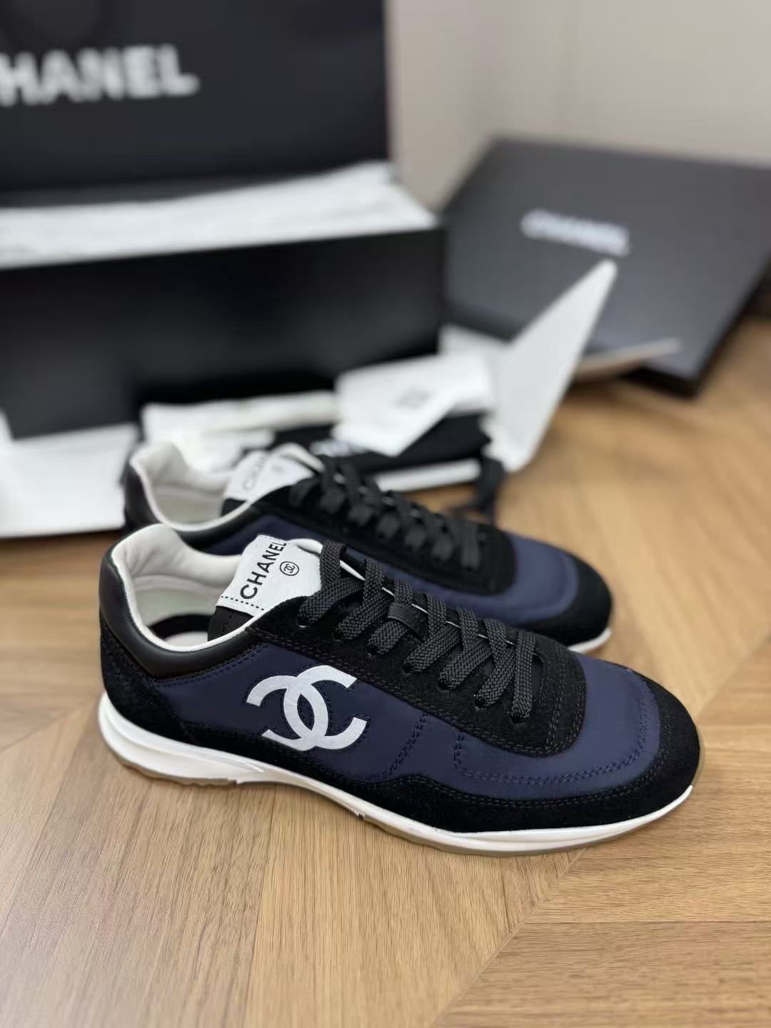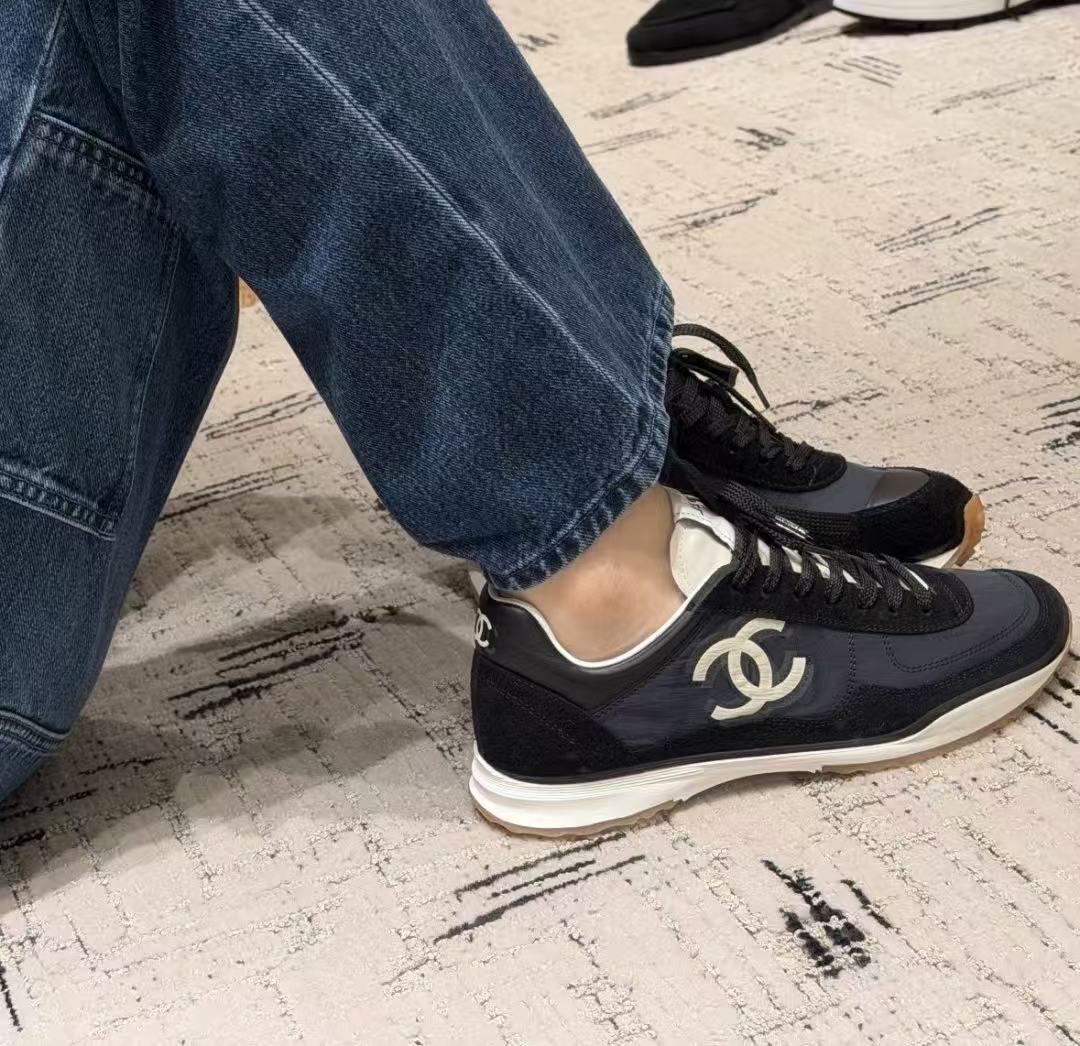 設計核心聚焦於鞋側那枚辨識度極高的經典 雙 C Logo,低調嵌入整體的黑白層次中,散發出一種不經意的法式高級感。這不僅是一雙休閒鞋,更是將運動機能與精品工藝推向平衡的年度力作。