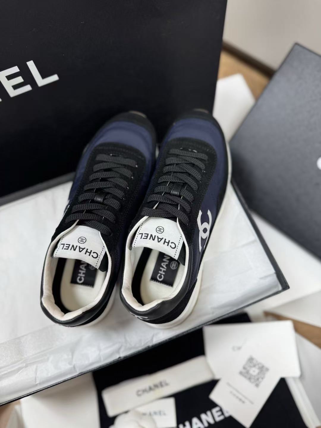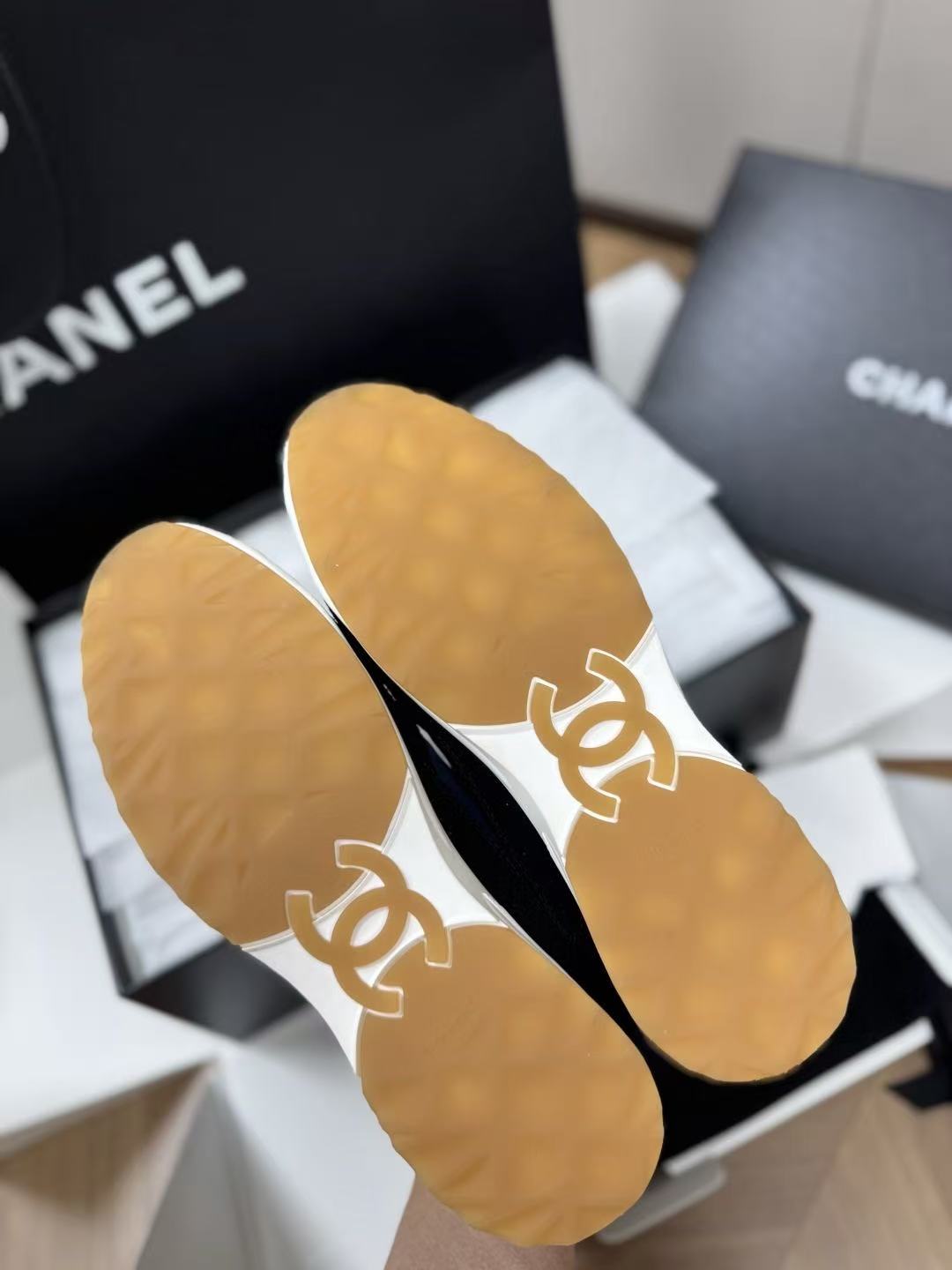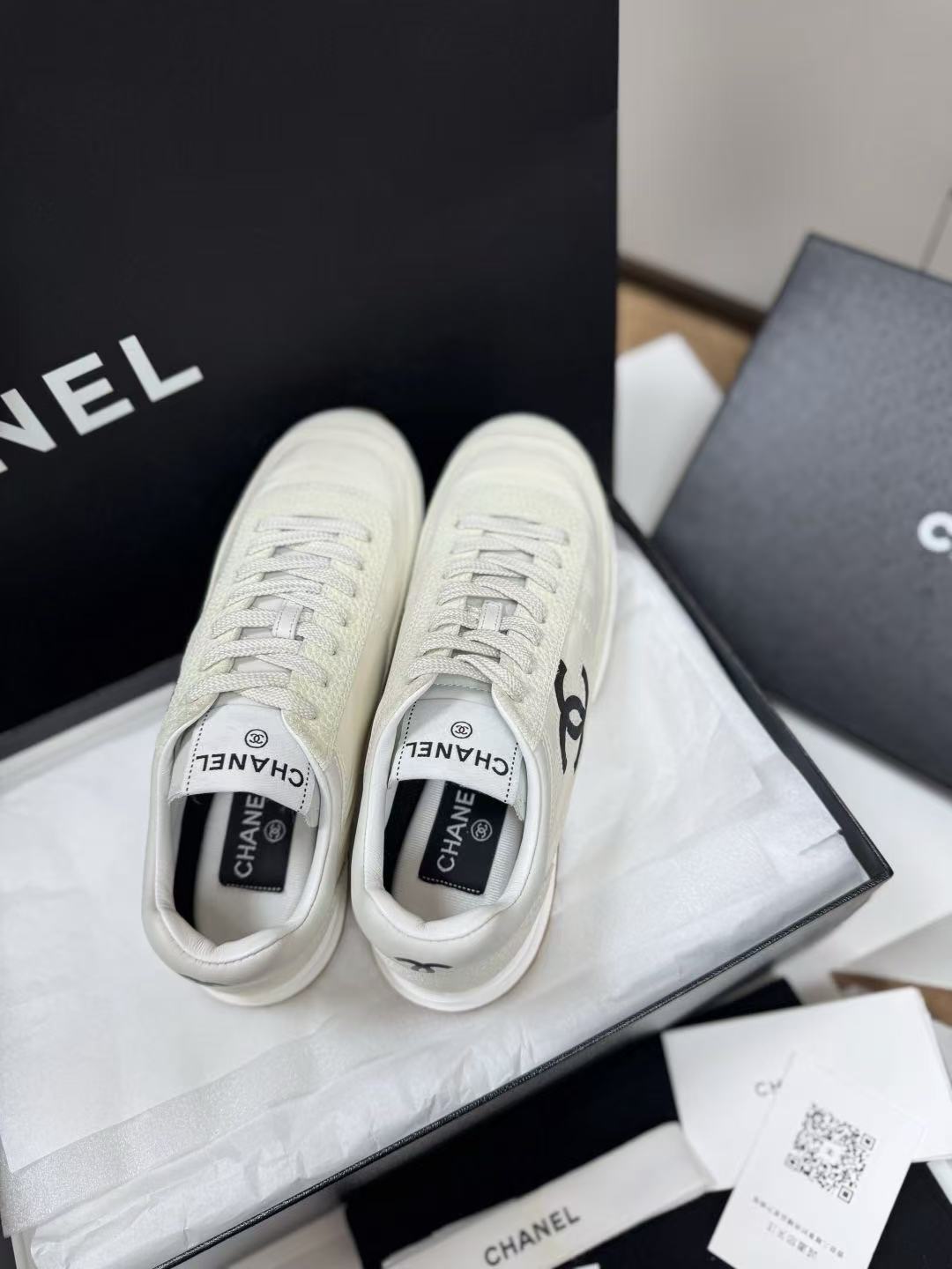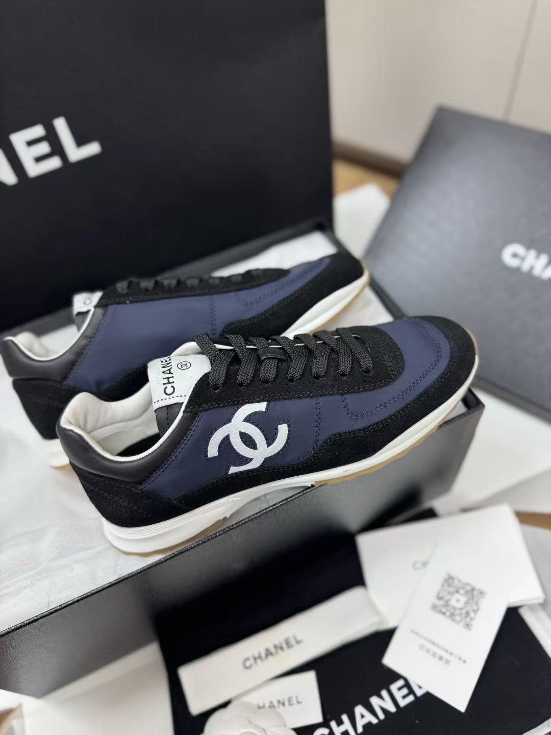 設計核心聚焦於鞋側那枚辨識度極高的經典 雙 C Logo,低調嵌入整體的黑白層次中,散發出一種不經意的法式高級感。這不僅是一雙休閒鞋,更是將運動機能與精品工藝推向平衡的年度力作。