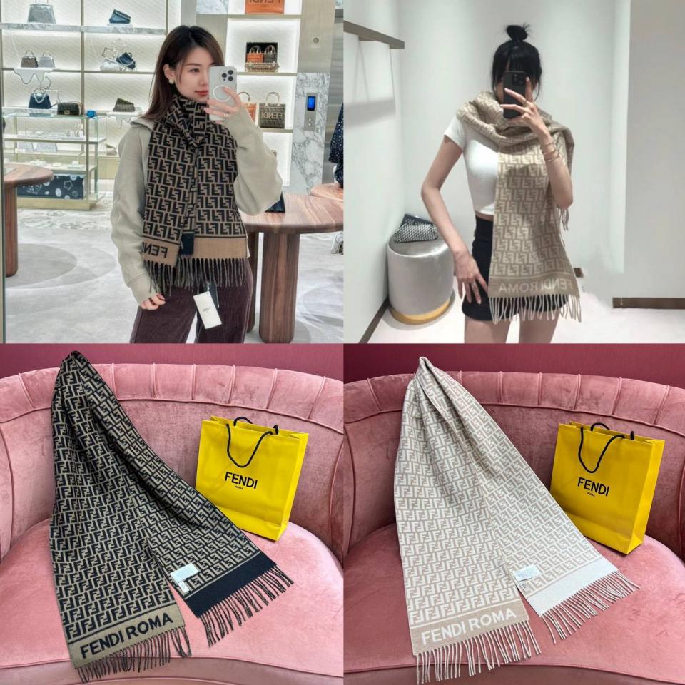 質感款式時尚又柔軟舒適,滿版撞色FF圖案設計提花,羊絨+羊毛的手感柔軟親膚舒適