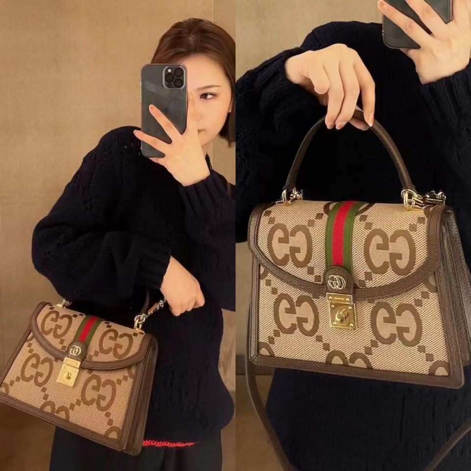 2022春夏新品 ophidia大老花雙G手提包 採用大號GG帆布製成