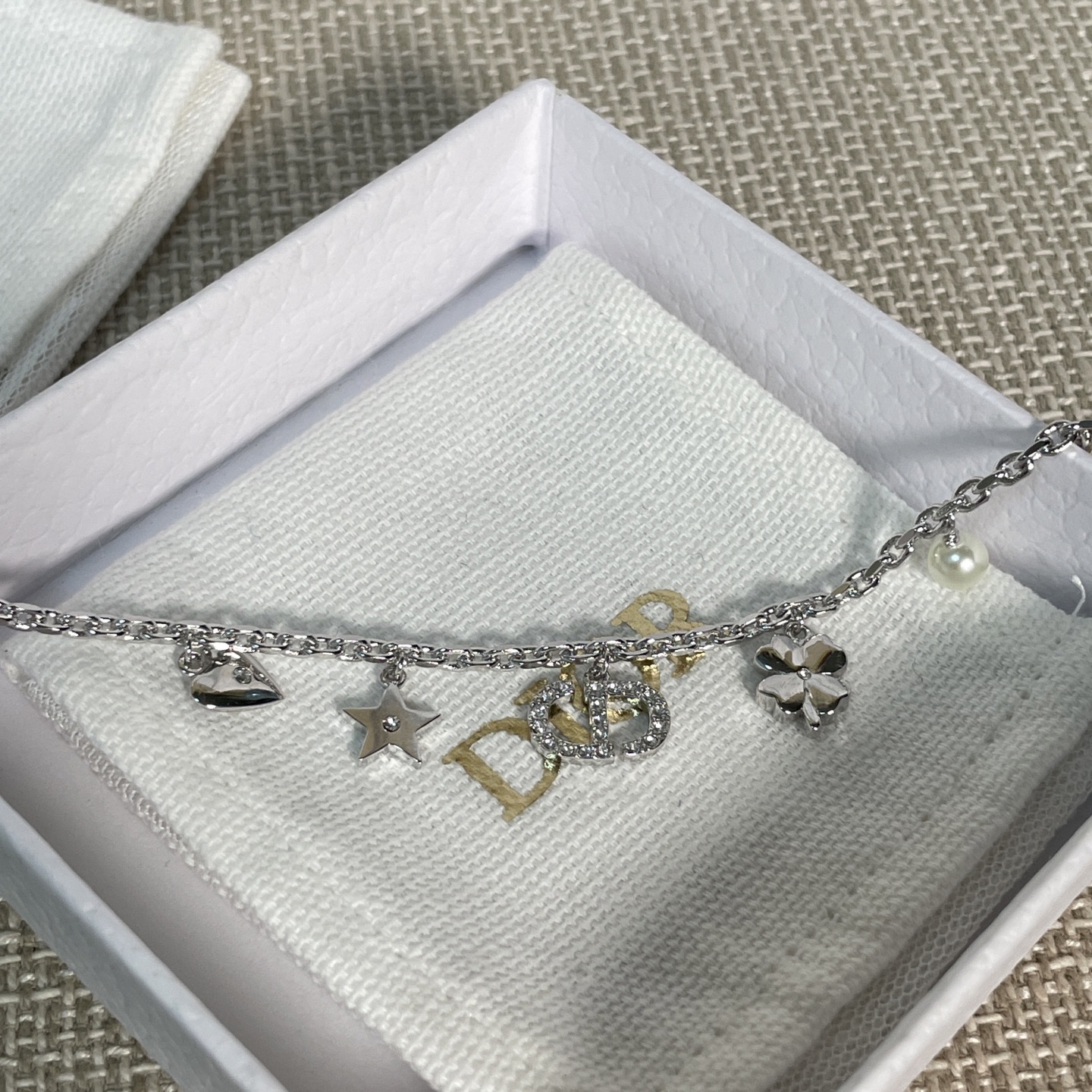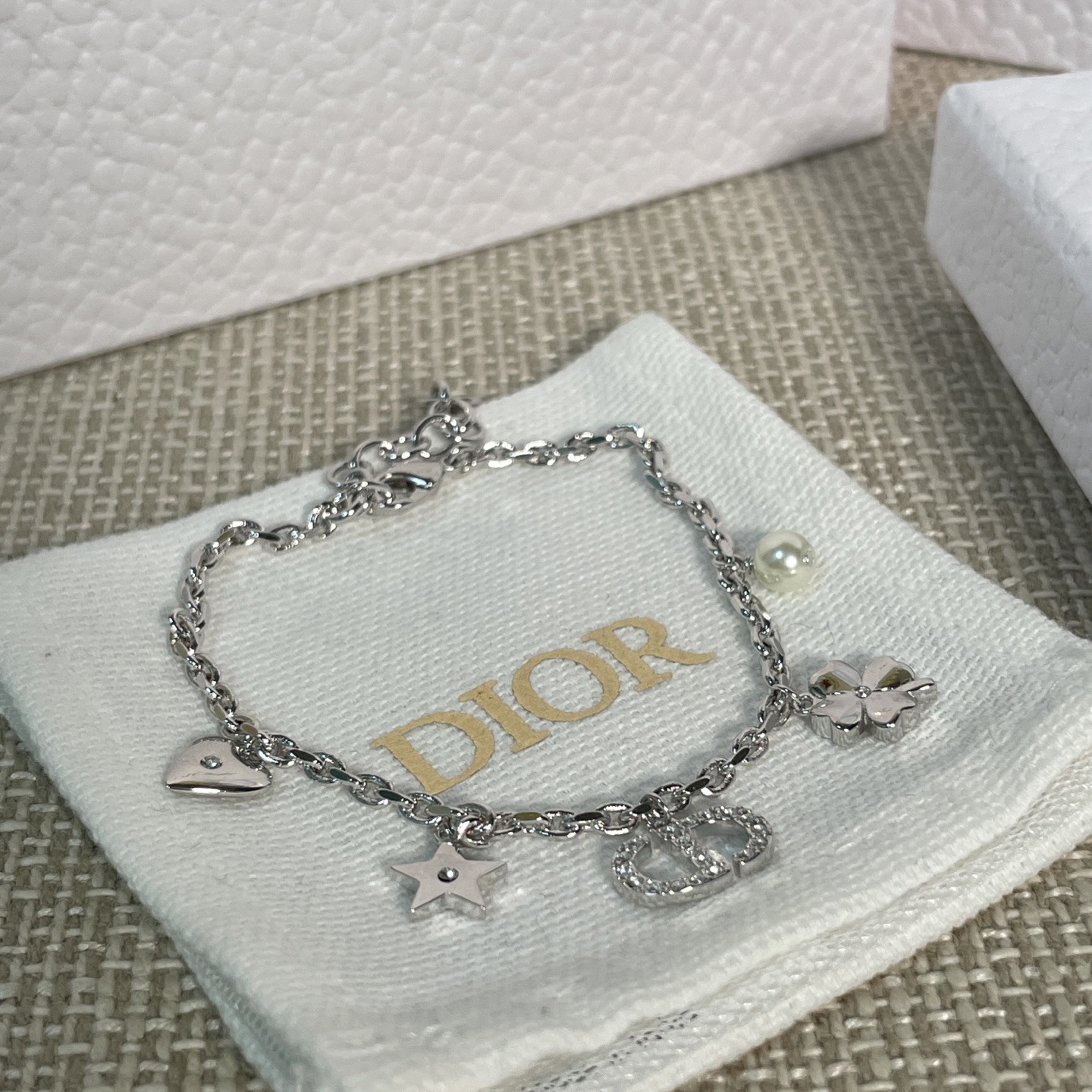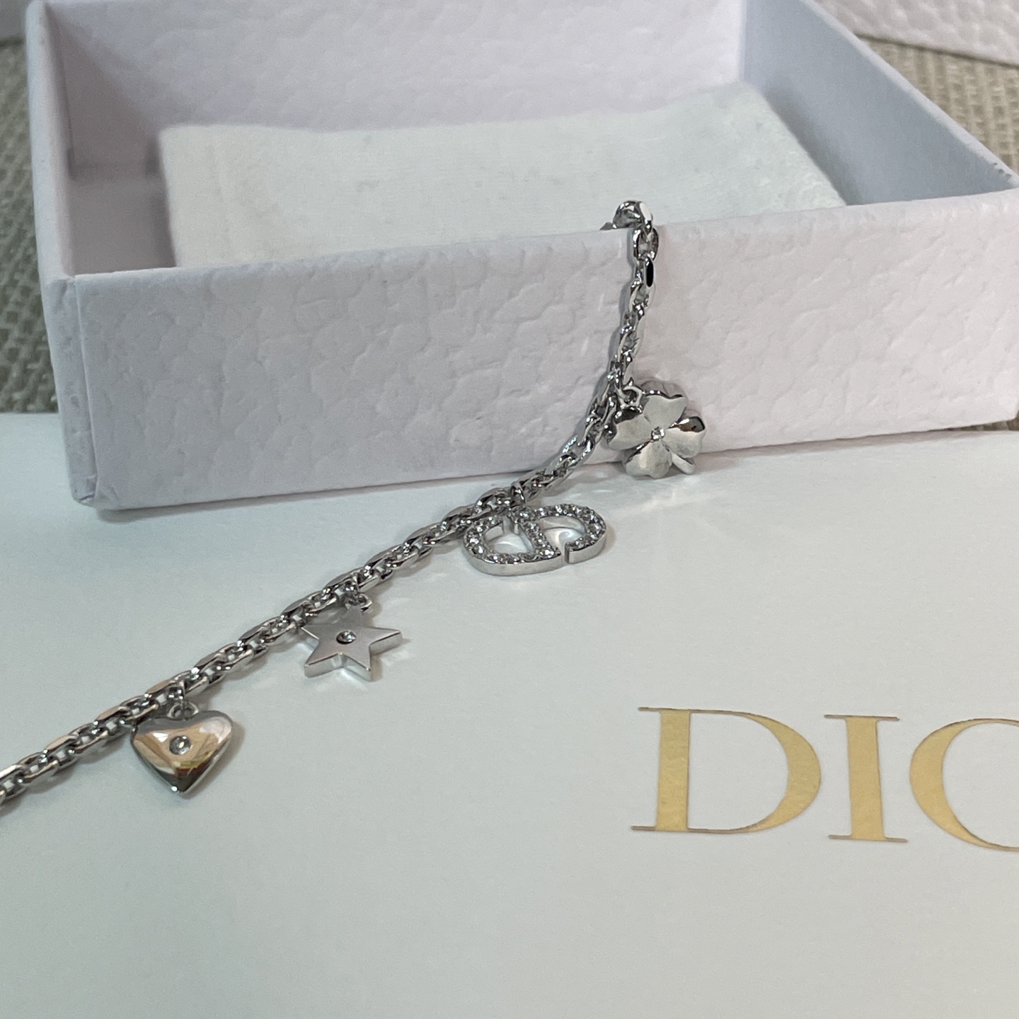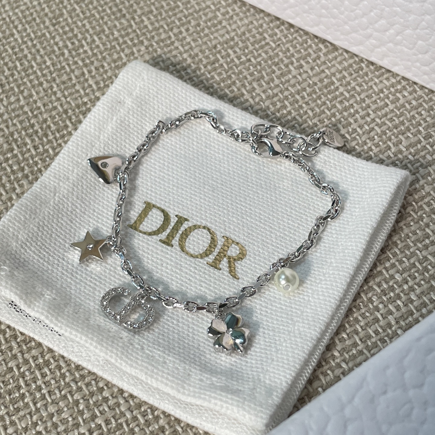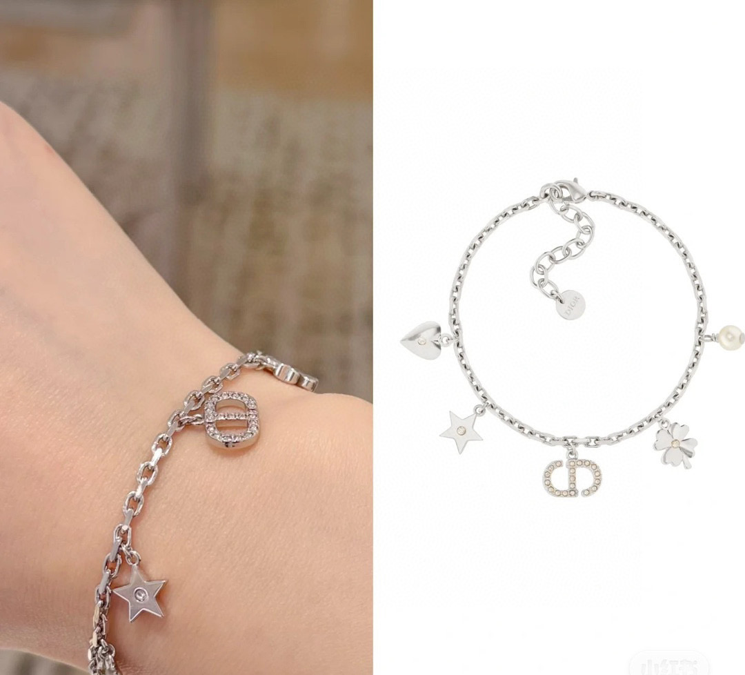 經典的CD標誌結合 星星、愛心、四葉草、水鑽、珍珠等細節,每一個元素都充滿象徵意義,讓手鍊不只是飾品,更是一種「幸運磁場」的傳遞。