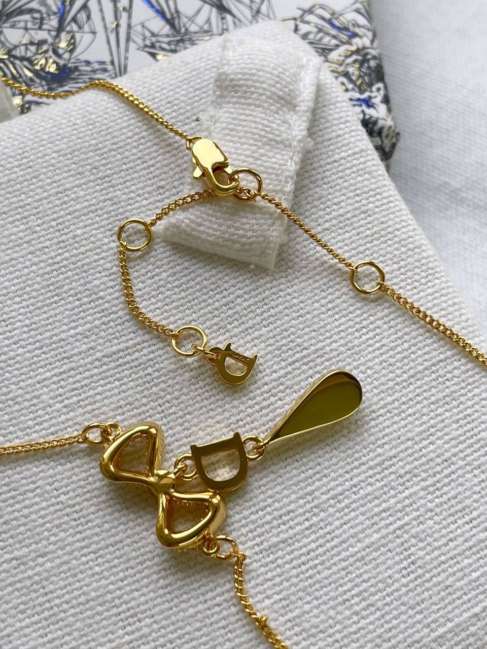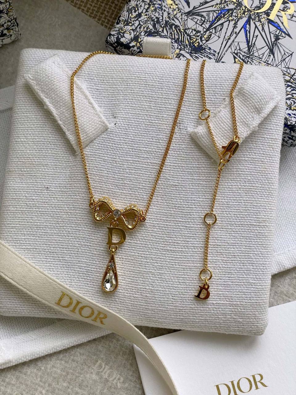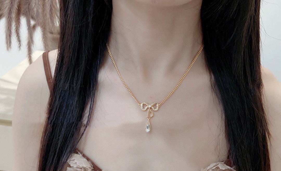 2024早秋 D家蝴蝶結水滴鑽項鍊