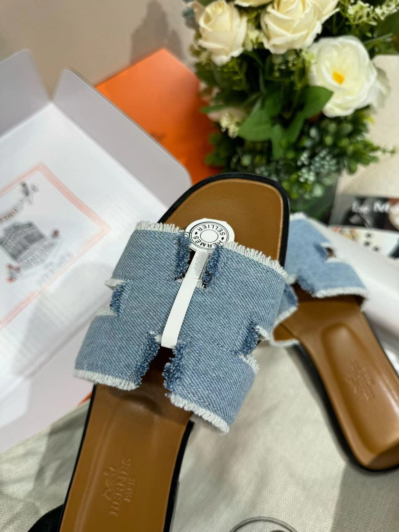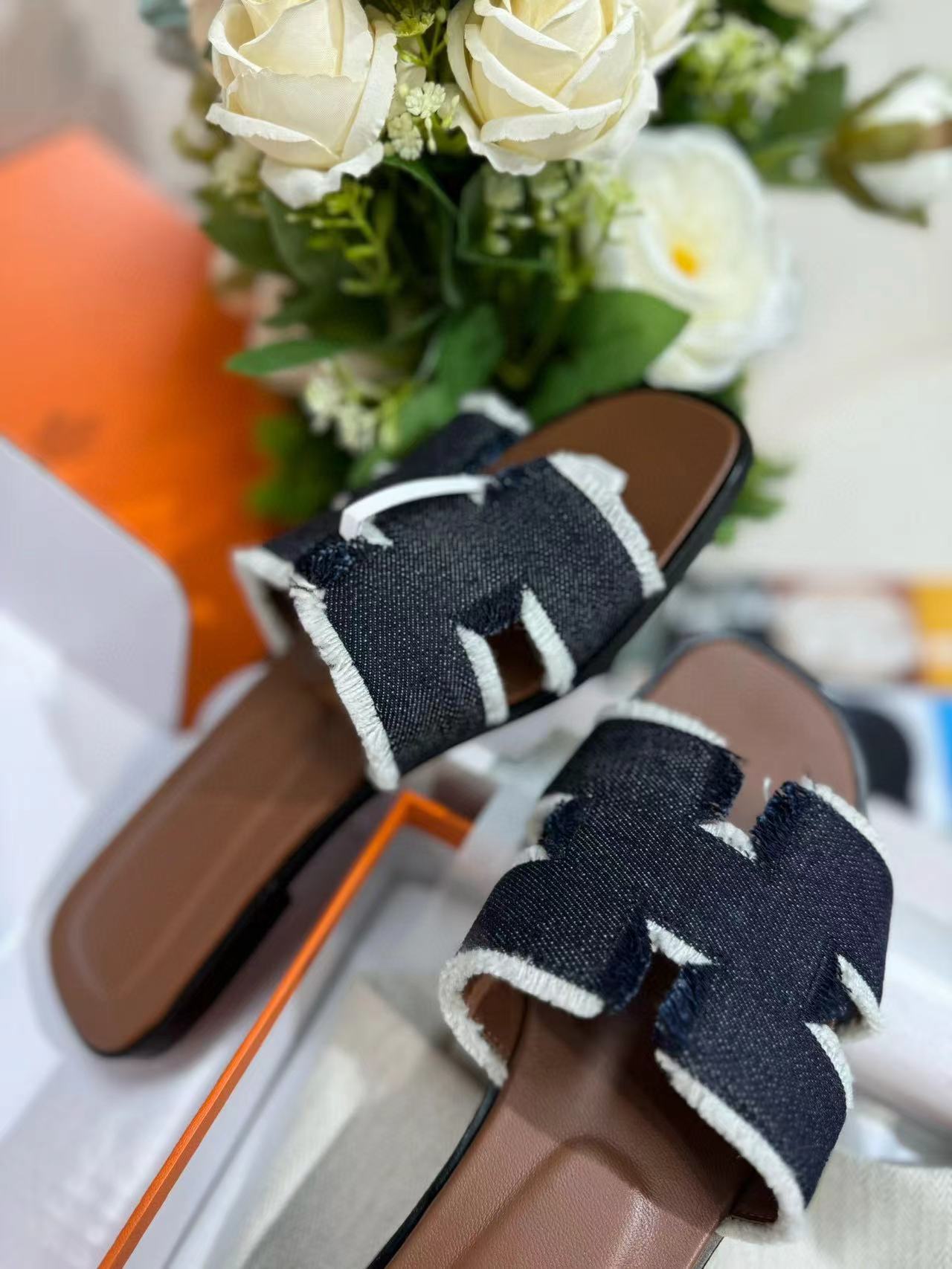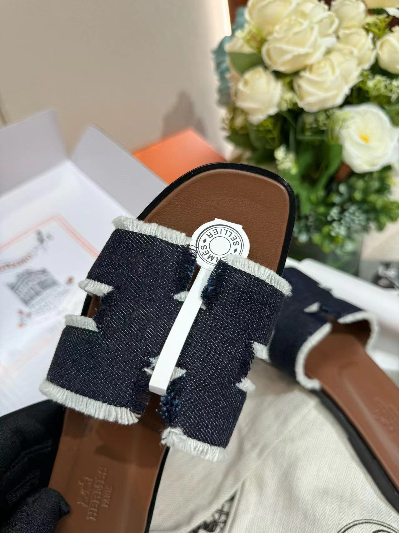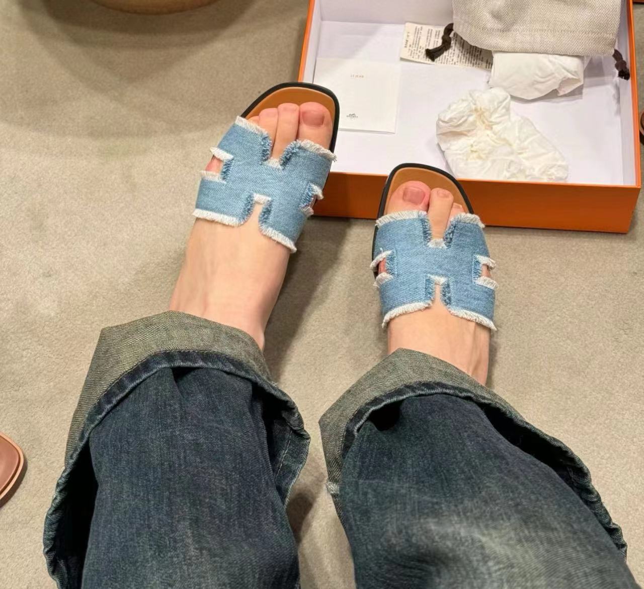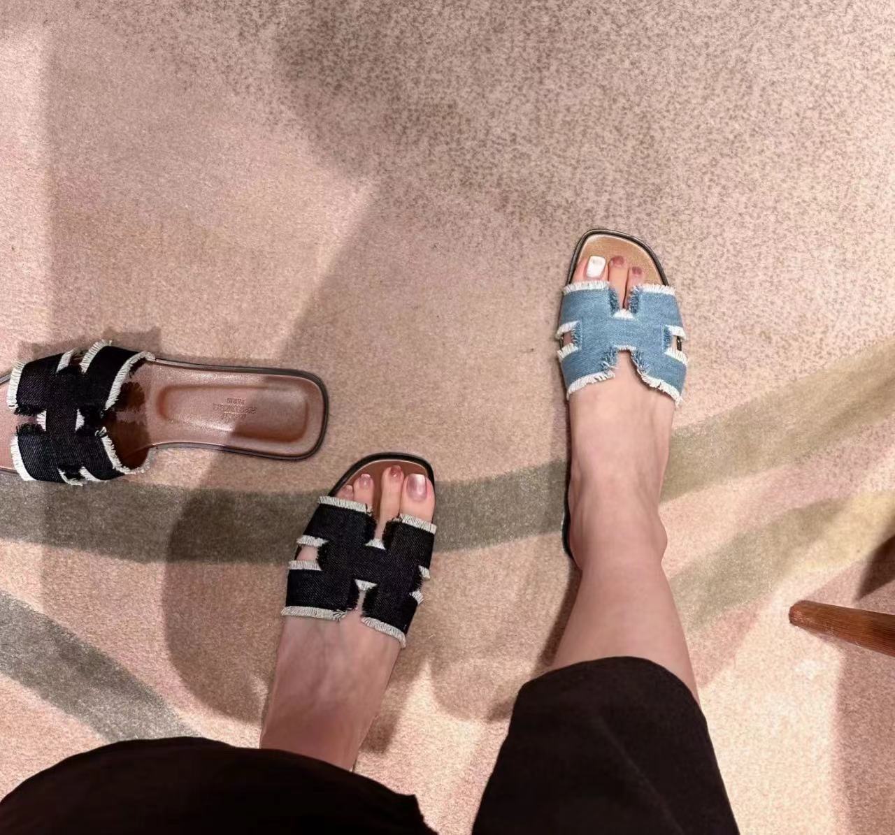 2024夏季新品 H家牛仔系列流蘇H拖鞋 上腳顯白
