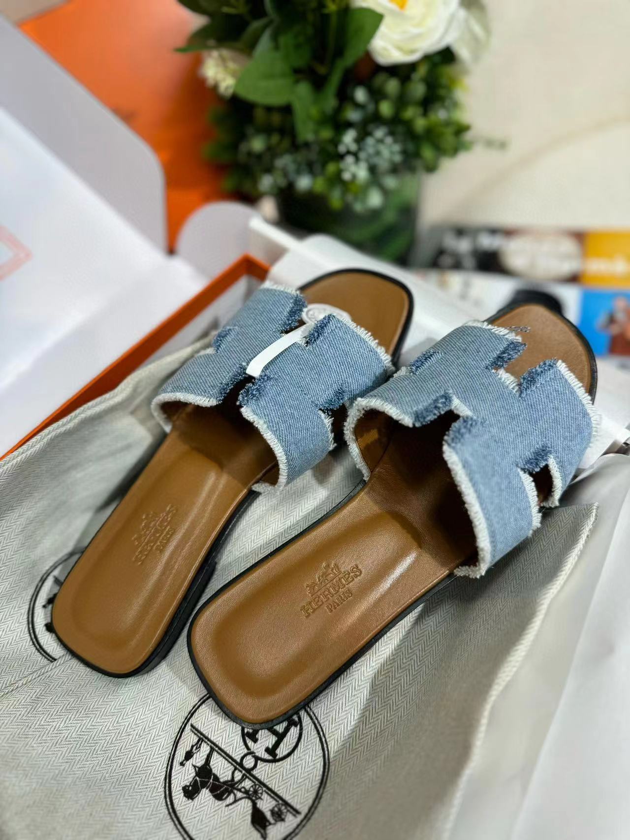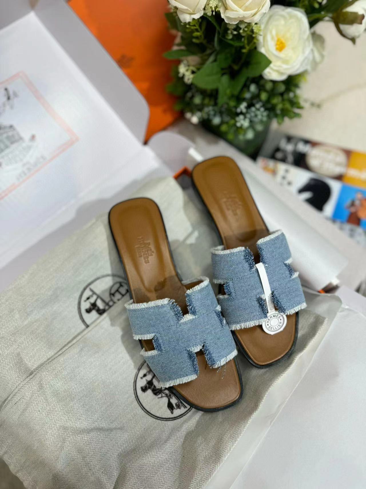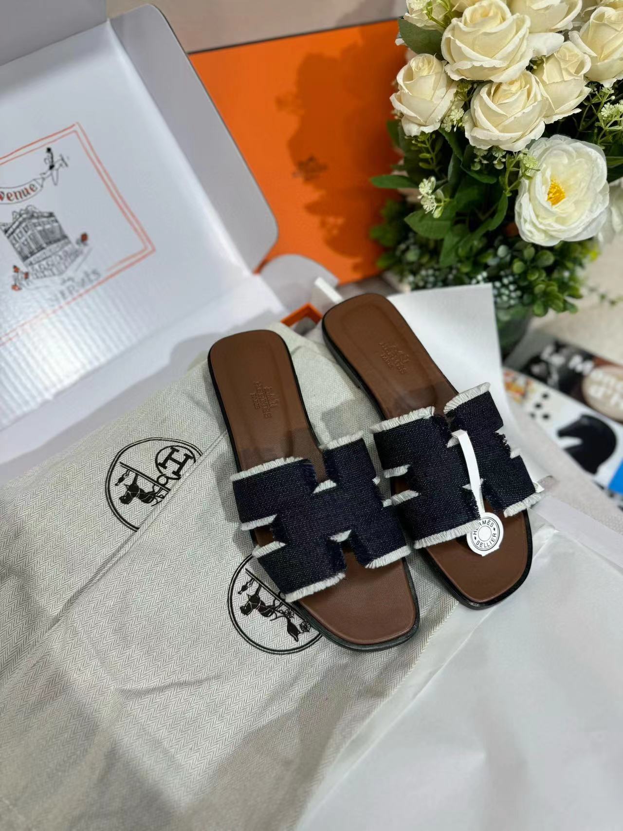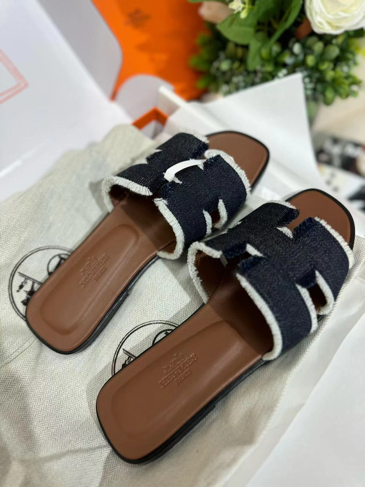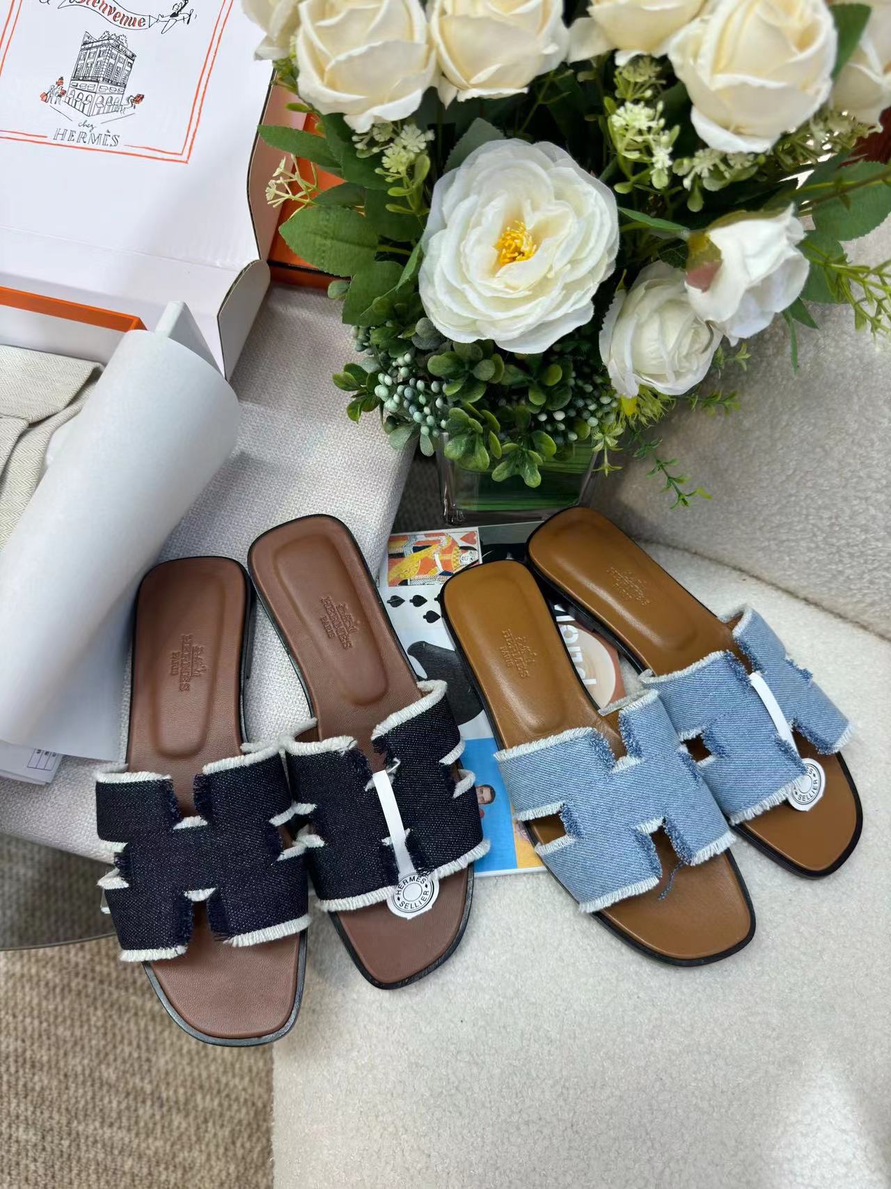 2024夏季新品 H家牛仔系列流蘇H拖鞋 上腳顯白