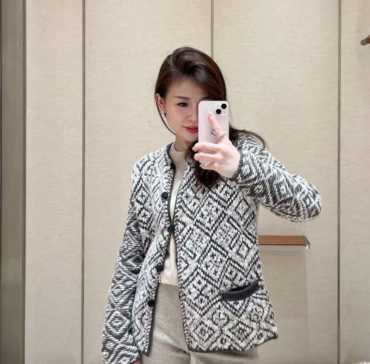這款假日系列外套,將經典的幾何提花圖騰融入設計,靈感來源於傳統工藝,讓整件單品散發出濃厚的復古優雅氣息。