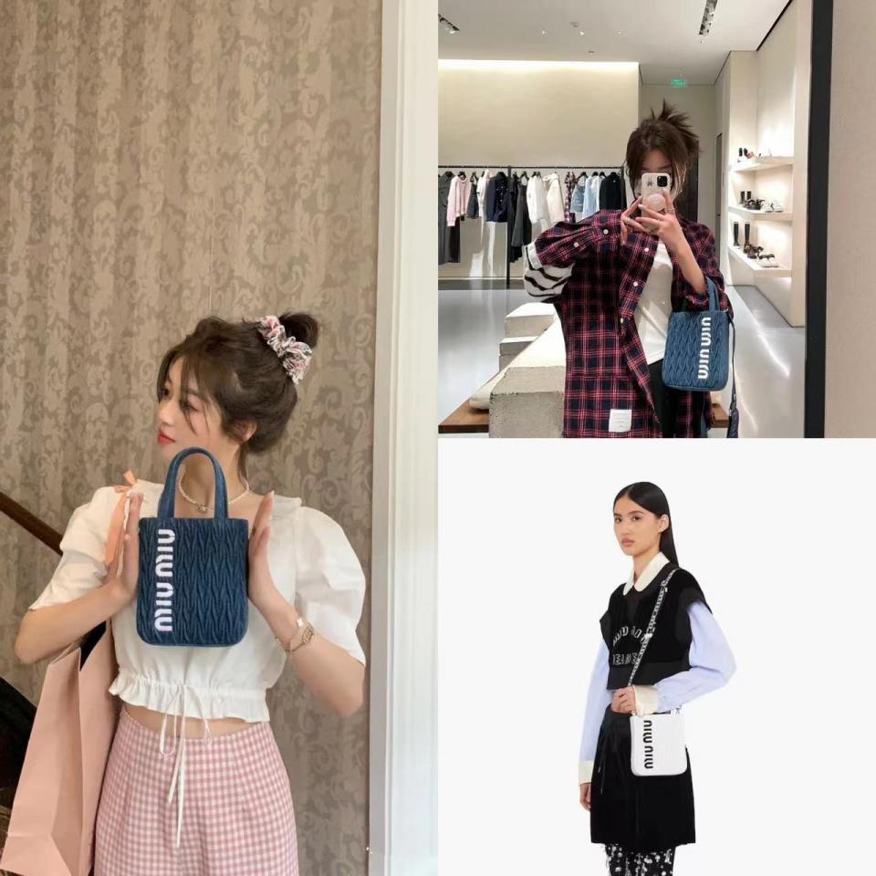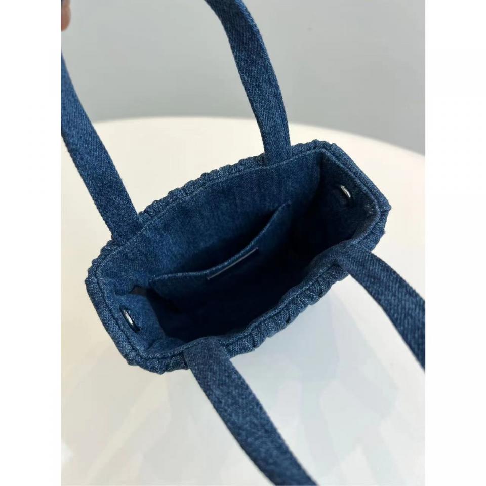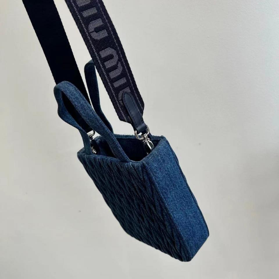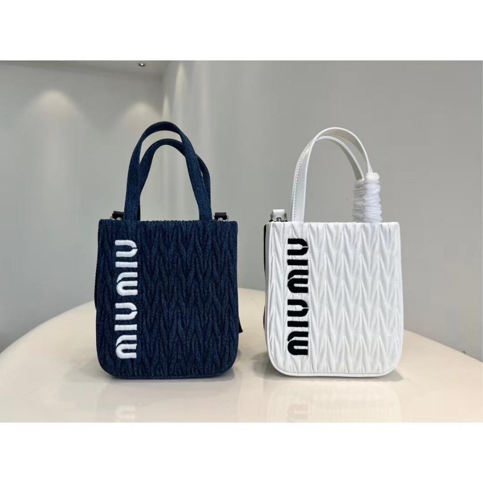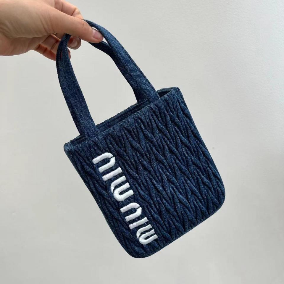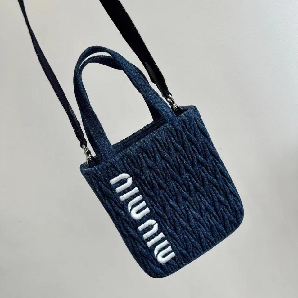 Miu家絎縫刺繡字母丹寧牛仔托特包