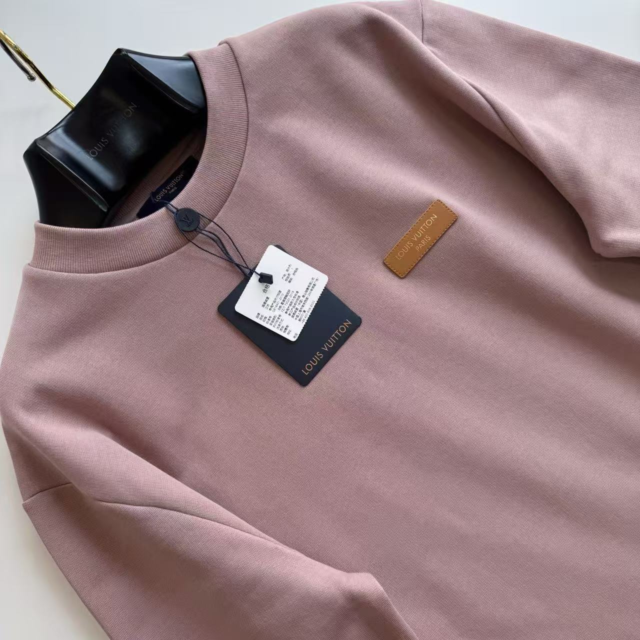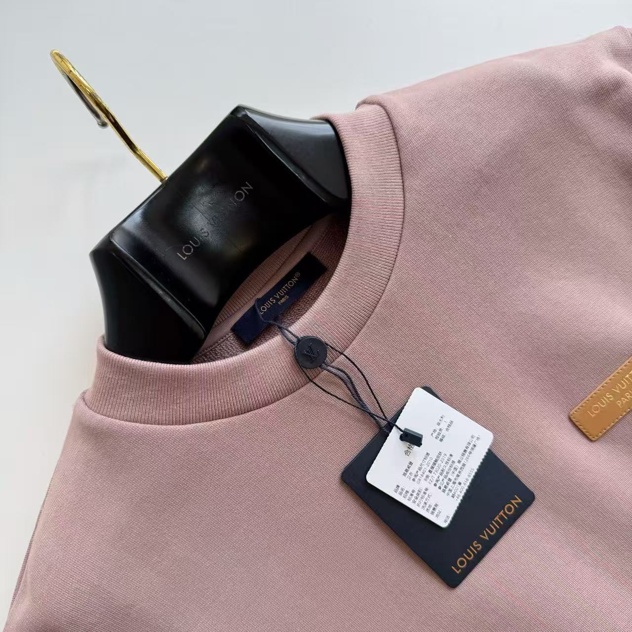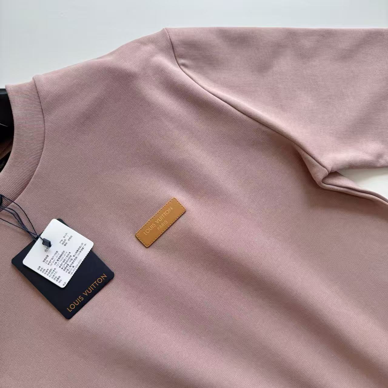 設計核心聚焦於胸前極具質感的皮革貼飾,不同於一般印花,品牌將高級皮革與精密燙金工藝結合,讓標誌在光影下呈現出如珠寶般的金屬色澤。