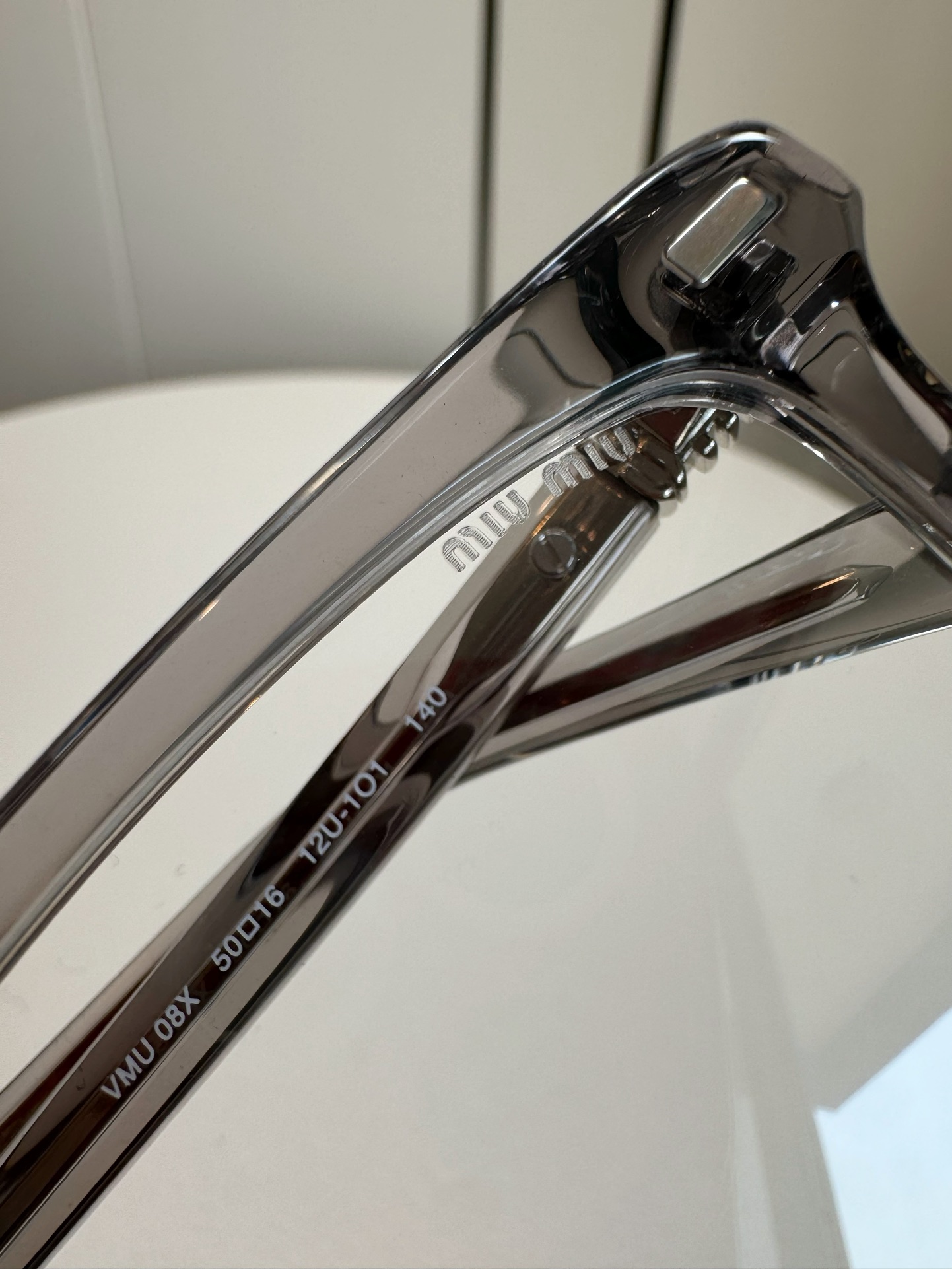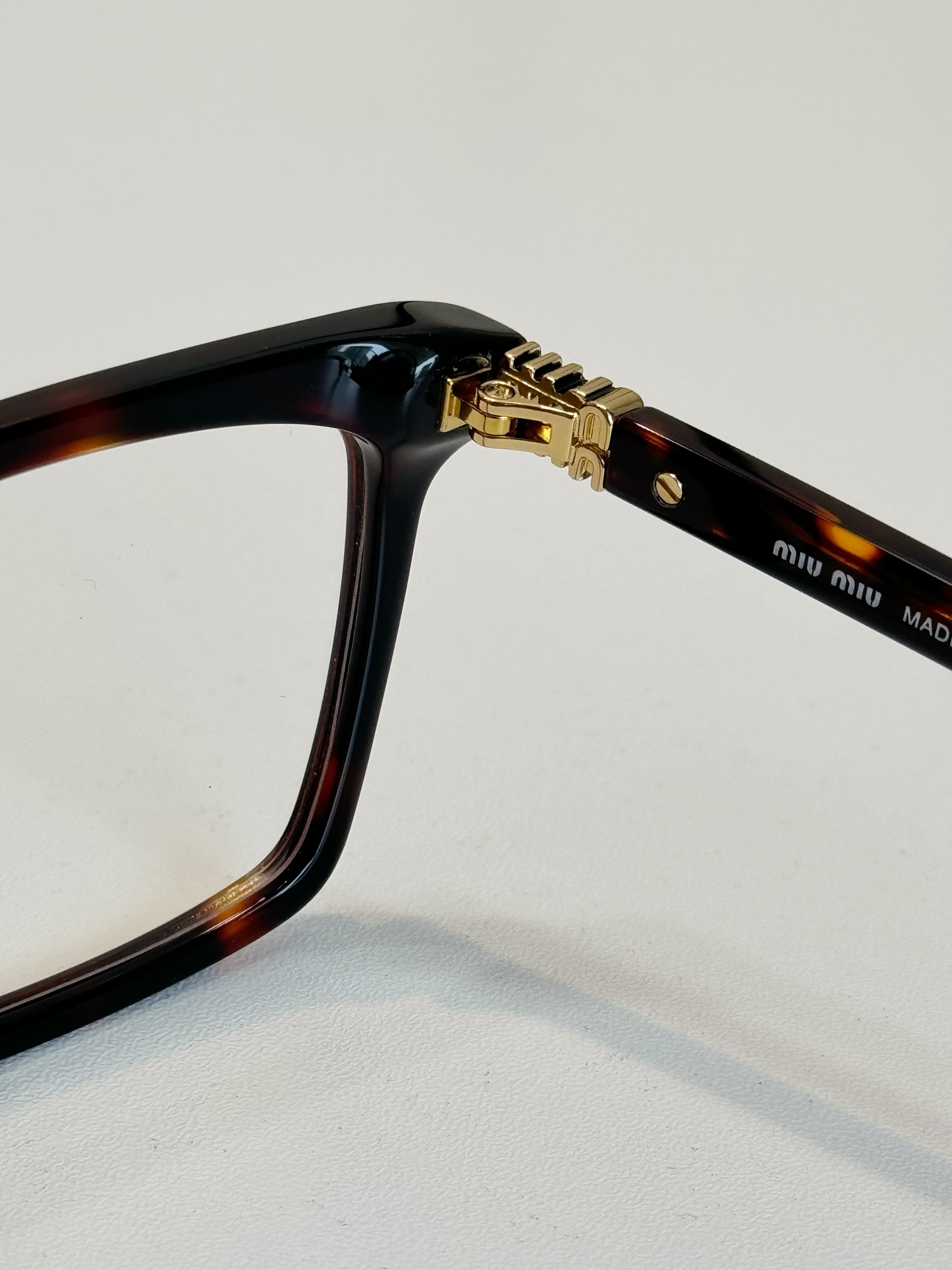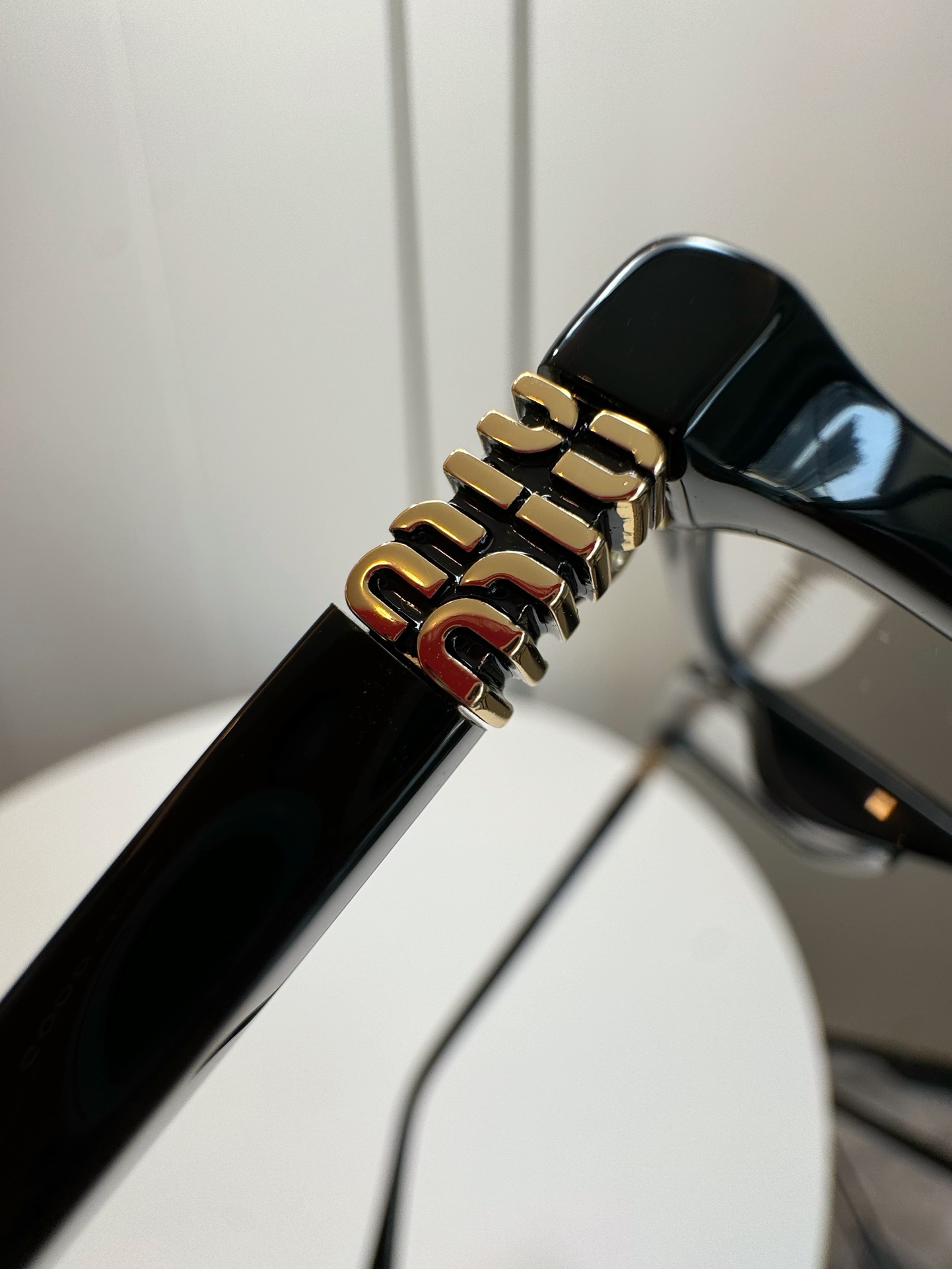 鏡腿為金屬材質,搭配燙印金色Miu字母 Logo,展現品牌高級質感。