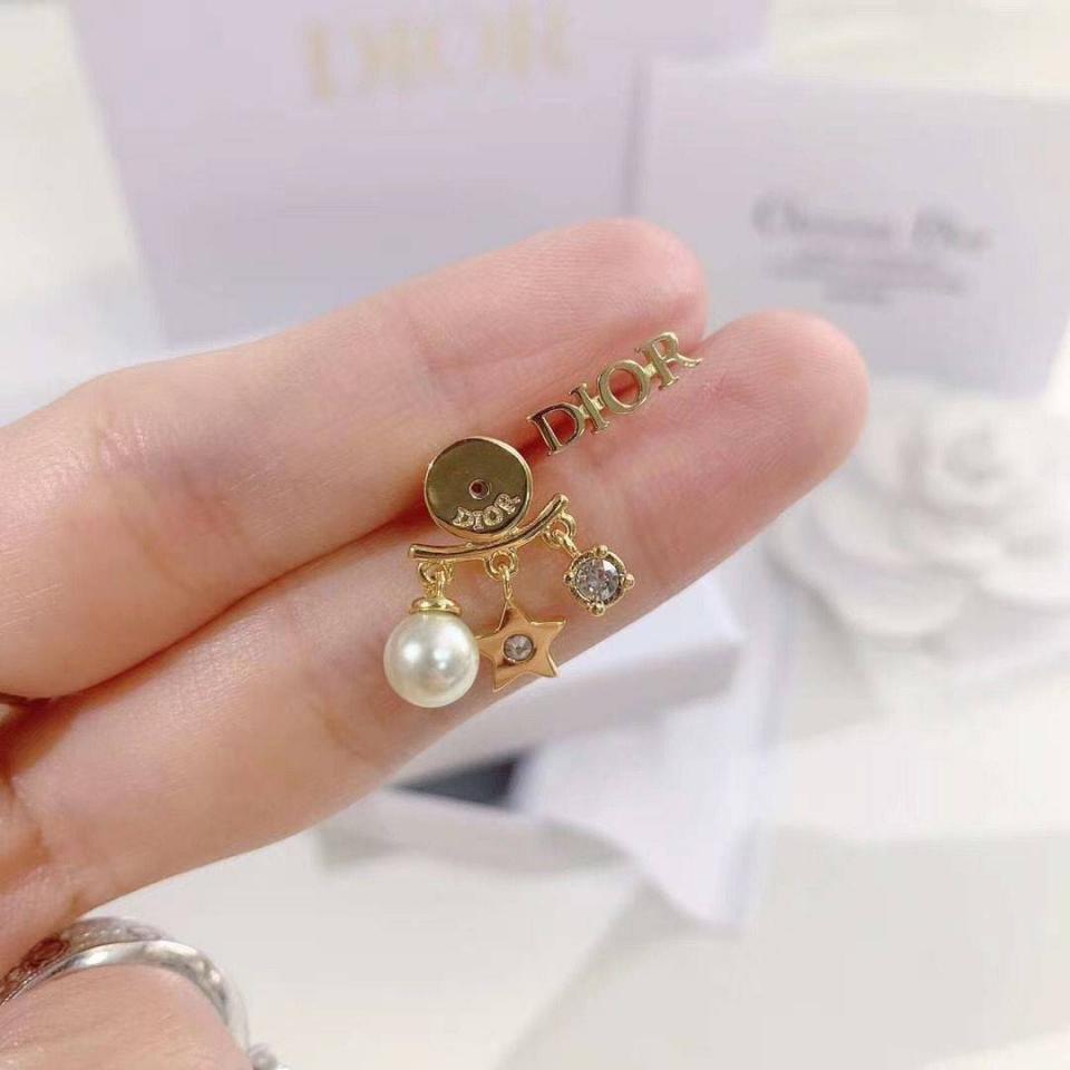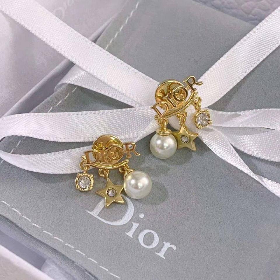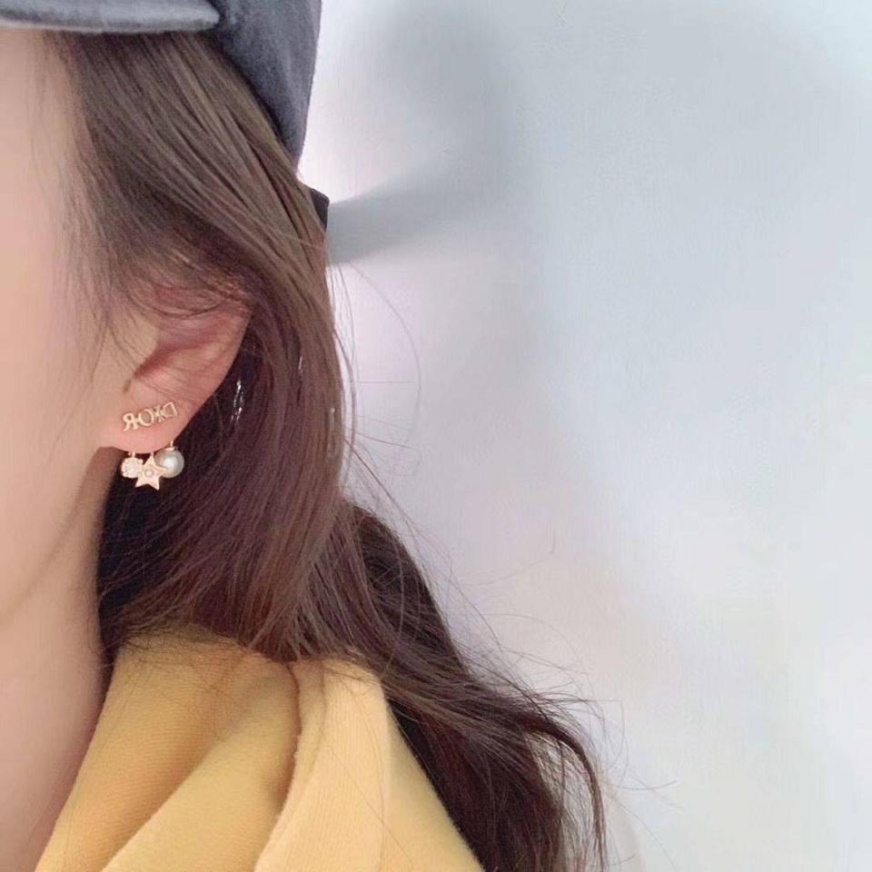 D家字母星星珍珠水鑽耳環