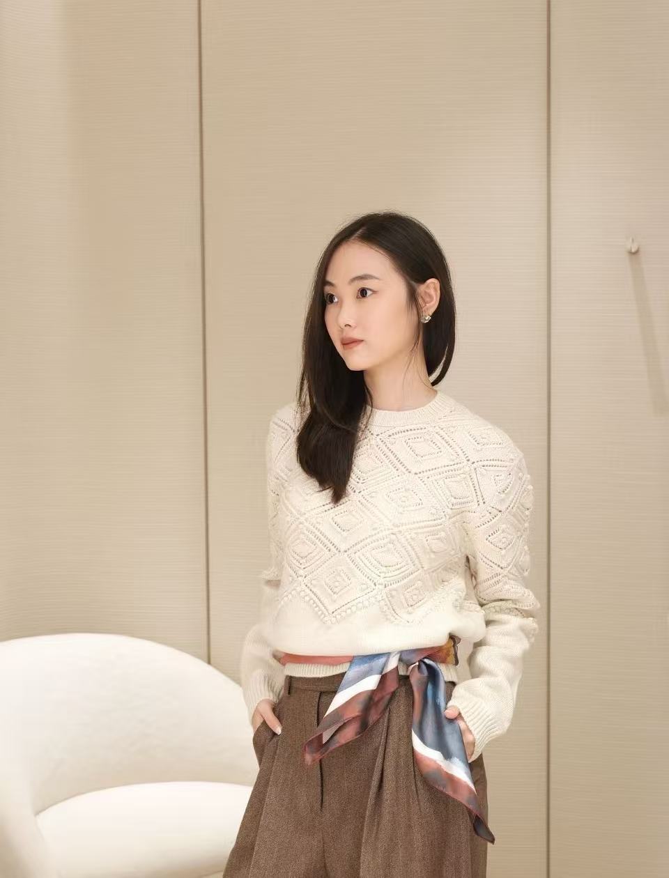 上衣走寬鬆版型,肩線自然落肩,細節處理很到位,既保暖又顯手臂線條俐落;想再加層次也可以外搭大衣或風衣,輕鬆切換優雅與休閒兩種風格。