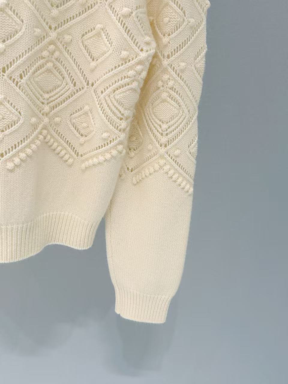 菱形與菱格紋理交織,設計感滿分卻不過度張揚,低調中透著滿滿的高級質感,一上身就散發慵懶優雅的秋冬氛圍,米白調超顯氣色,穿出門整個人看起來都柔軟又精緻。
