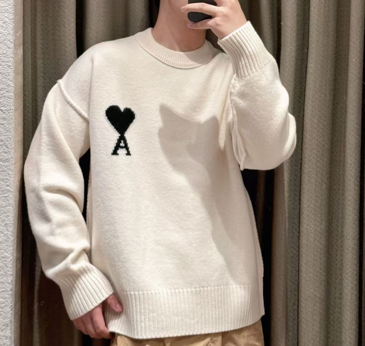 oversize寬鬆版型+肩部外翻拼接,胸前編織愛心黑色A鏈刺繡,從居家懶洋到街頭約會,一件搞定男女同款的溫暖時髦!快來一起探索這件毛衣的無限魅力吧!