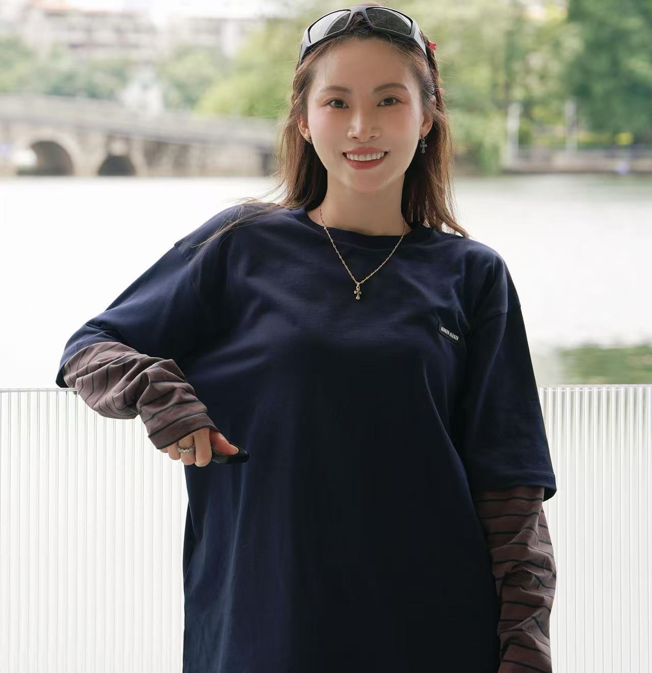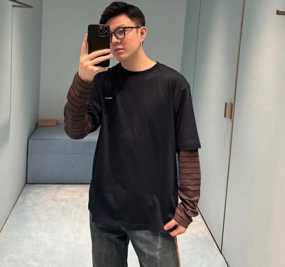 整體版型做得很剛好,穿起來不會太貼身,也不會太寬鬆,加上袖子和領口的拼接設計,不會讓人一眼看穿是「一件式」,反而真的有「裡面還有搭一件」的錯覺,整體層次自然又精緻。