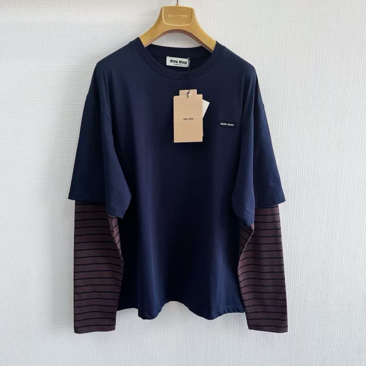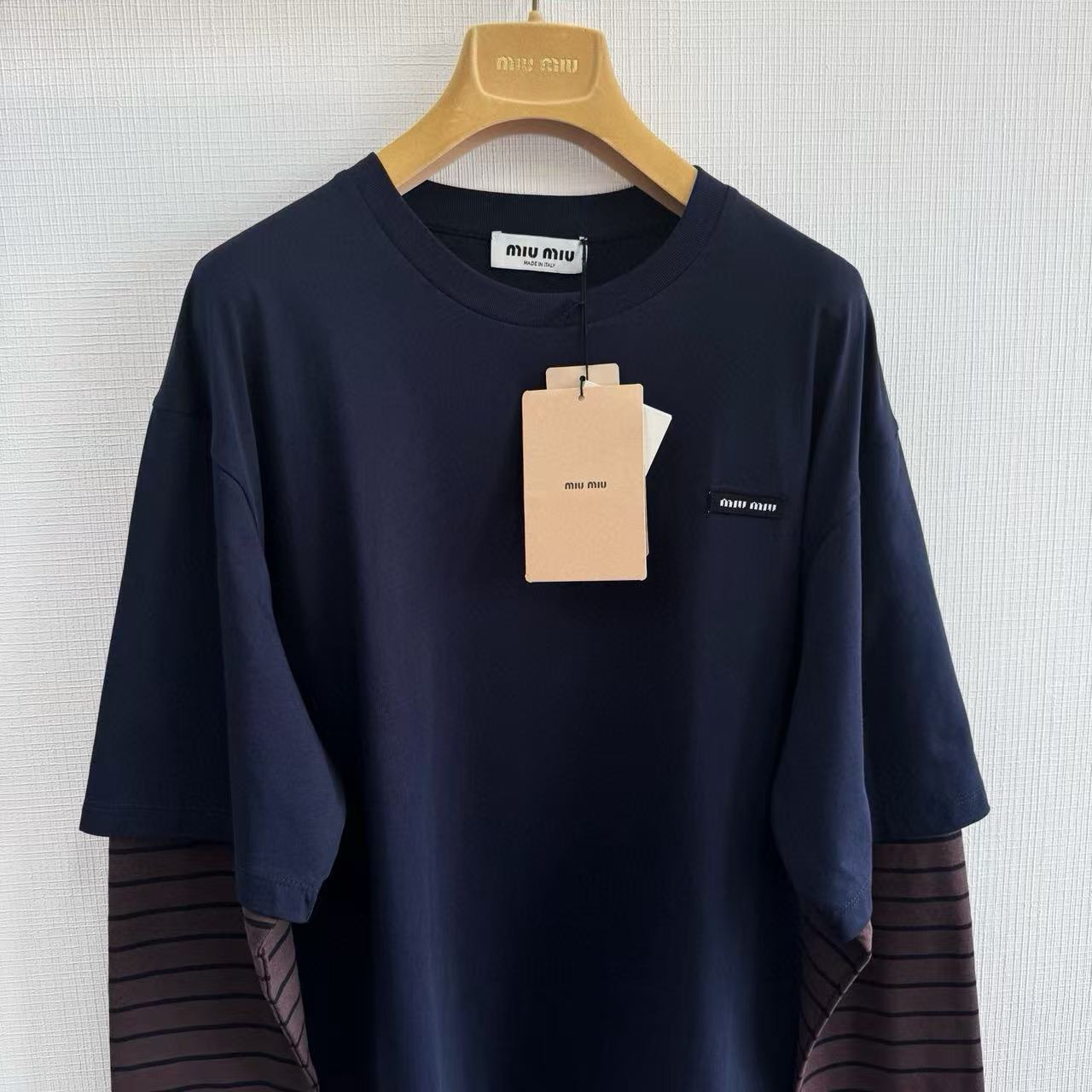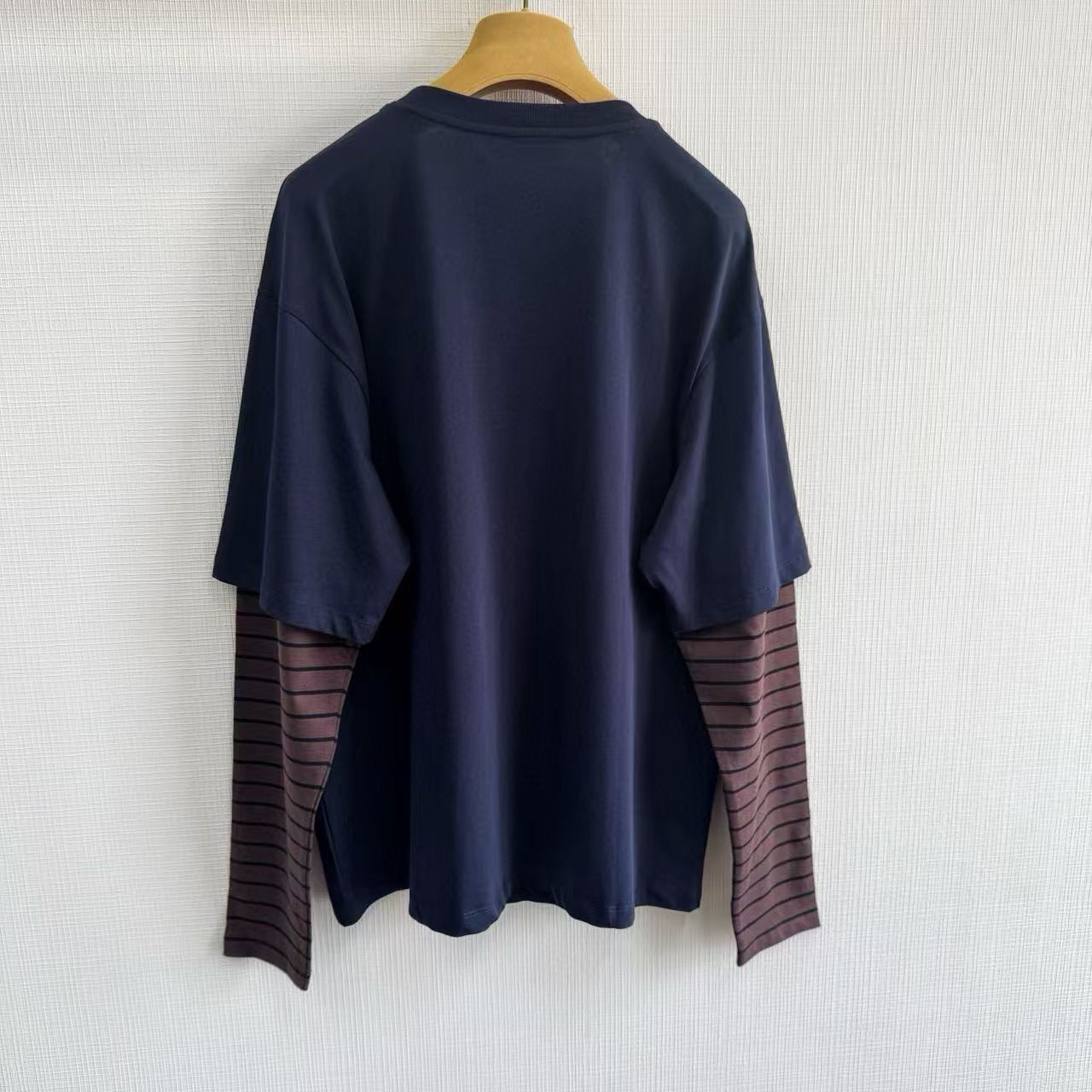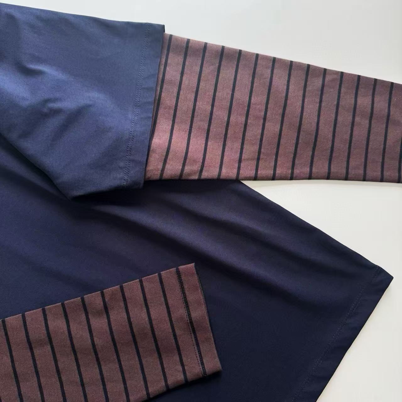 2025夏季新品 Miu家 男士條紋假兩件長袖