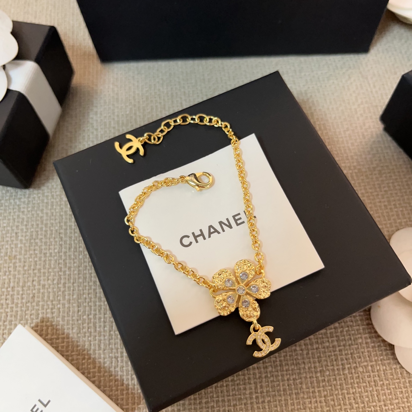 整體設計帶有濃厚的復古氣息,細節卻依然精緻到位。標誌性的C字吊飾搭配金花元素,優雅中多了一點層次與辨識度。