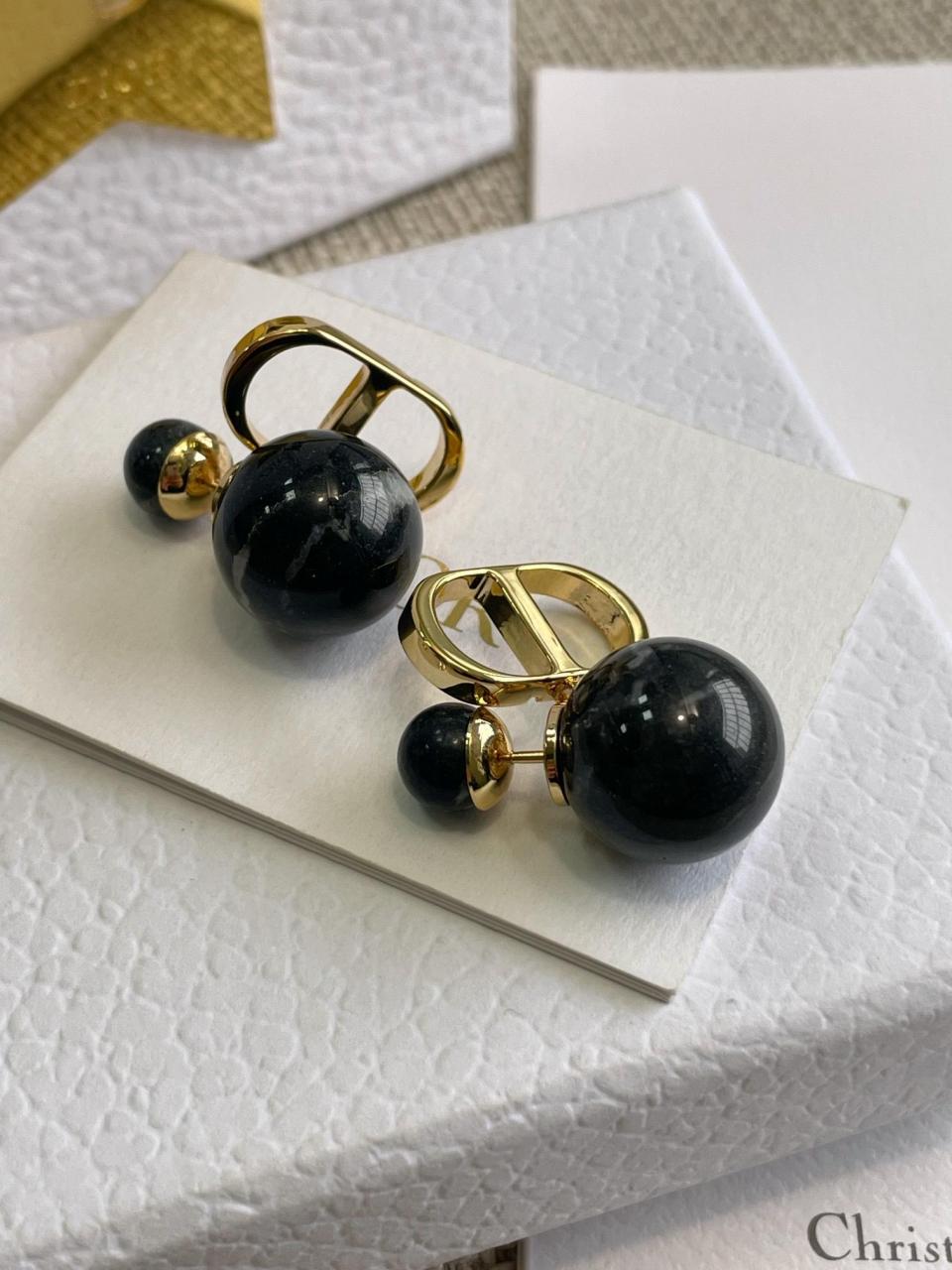 D家黑白珠耳釘