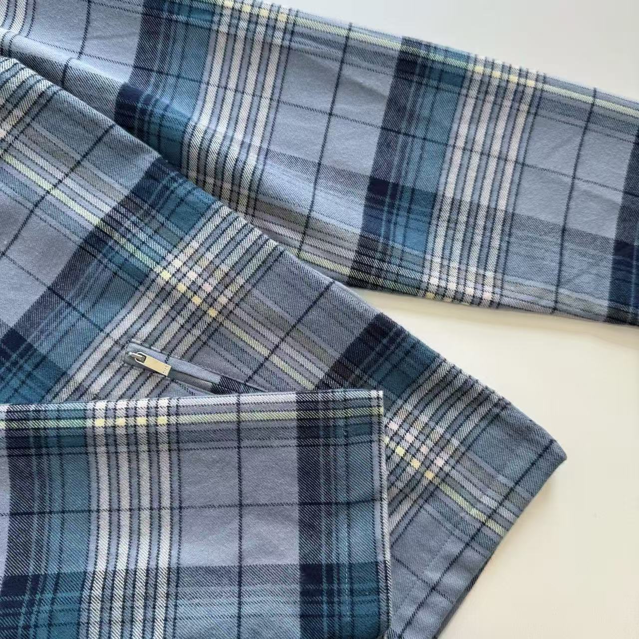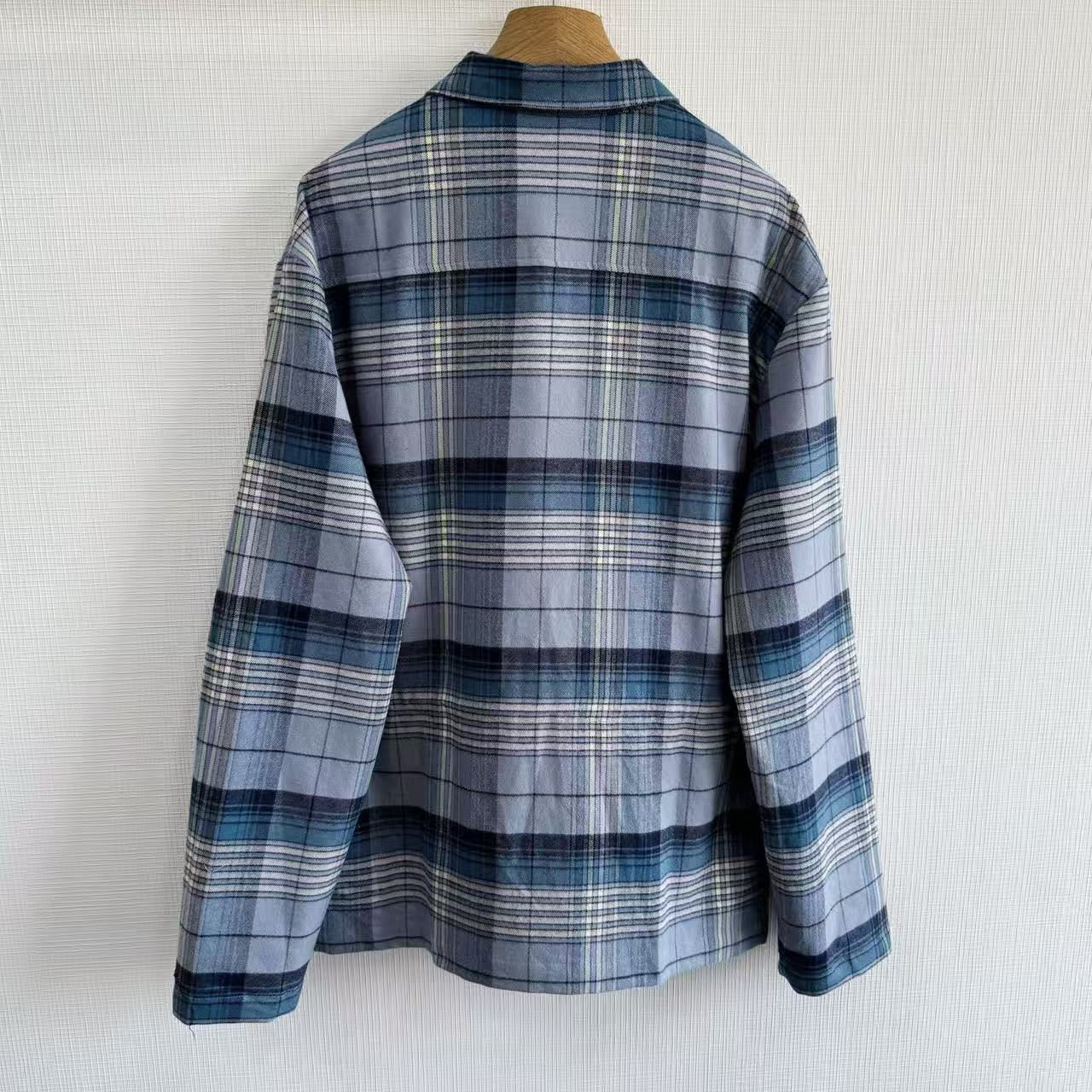 這件襯衫外套的材質真的非常講究!它使用了獨家訂製的羊毛混紡格紋布料,從紗線到布料都是定織定染,不僅質感好,而且穿起來非常舒服。為了完美還原專櫃效果,製作時還採用了定點裁位拼接,讓整件衣服從正面、背面到後拼縫、翻領領後、甚至口袋,全身多處的格紋都完美對齊!這種對細節的執著,完美展現了品牌的工匠精神。