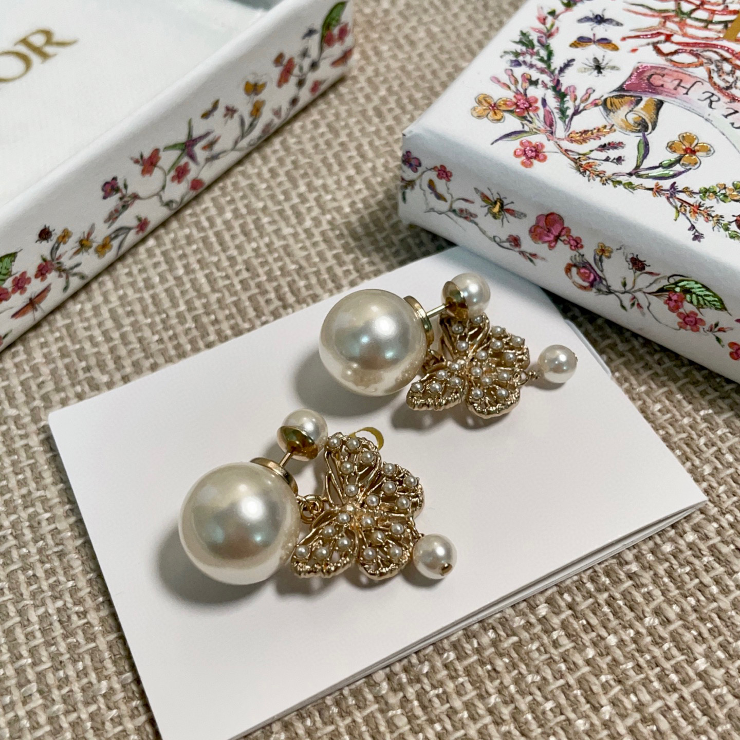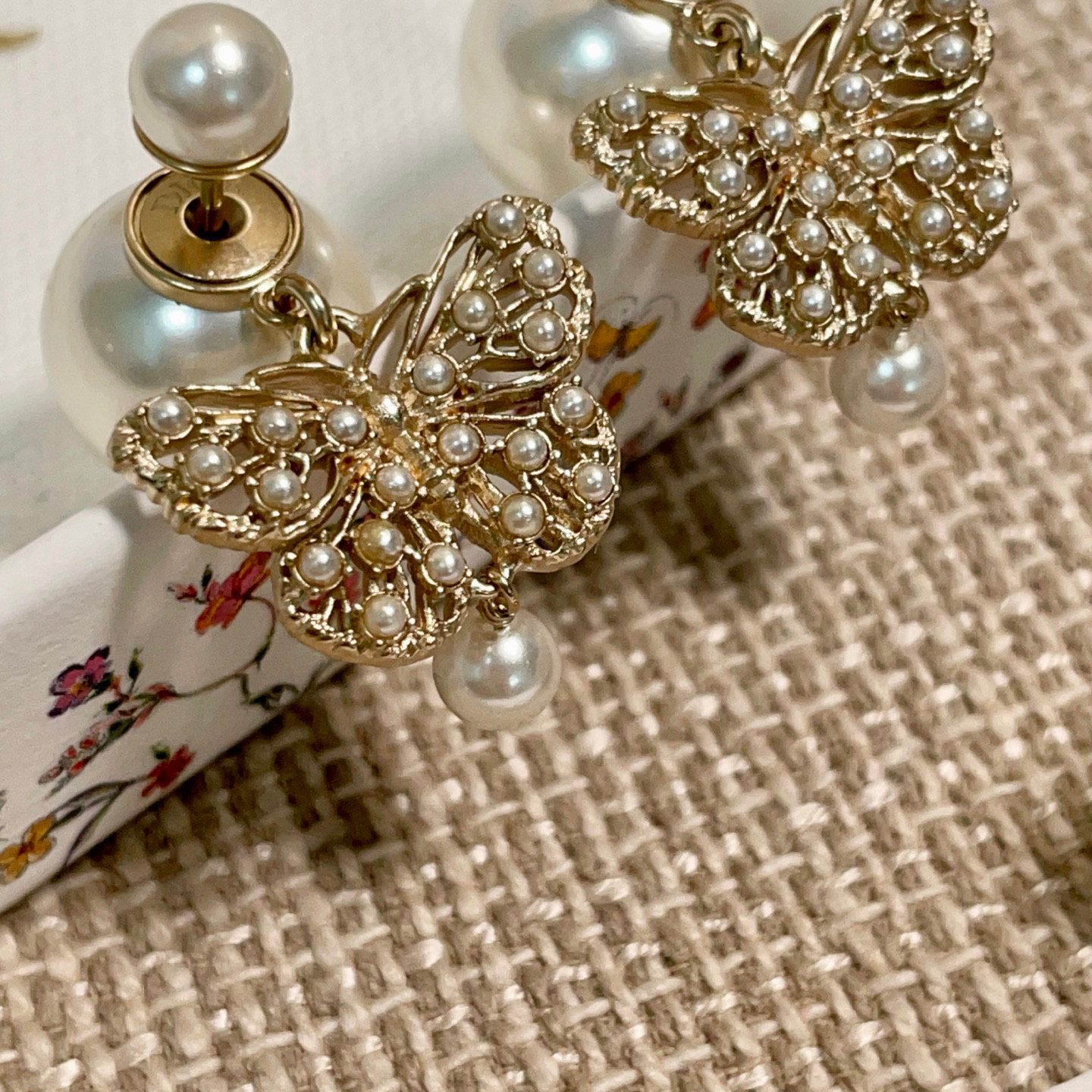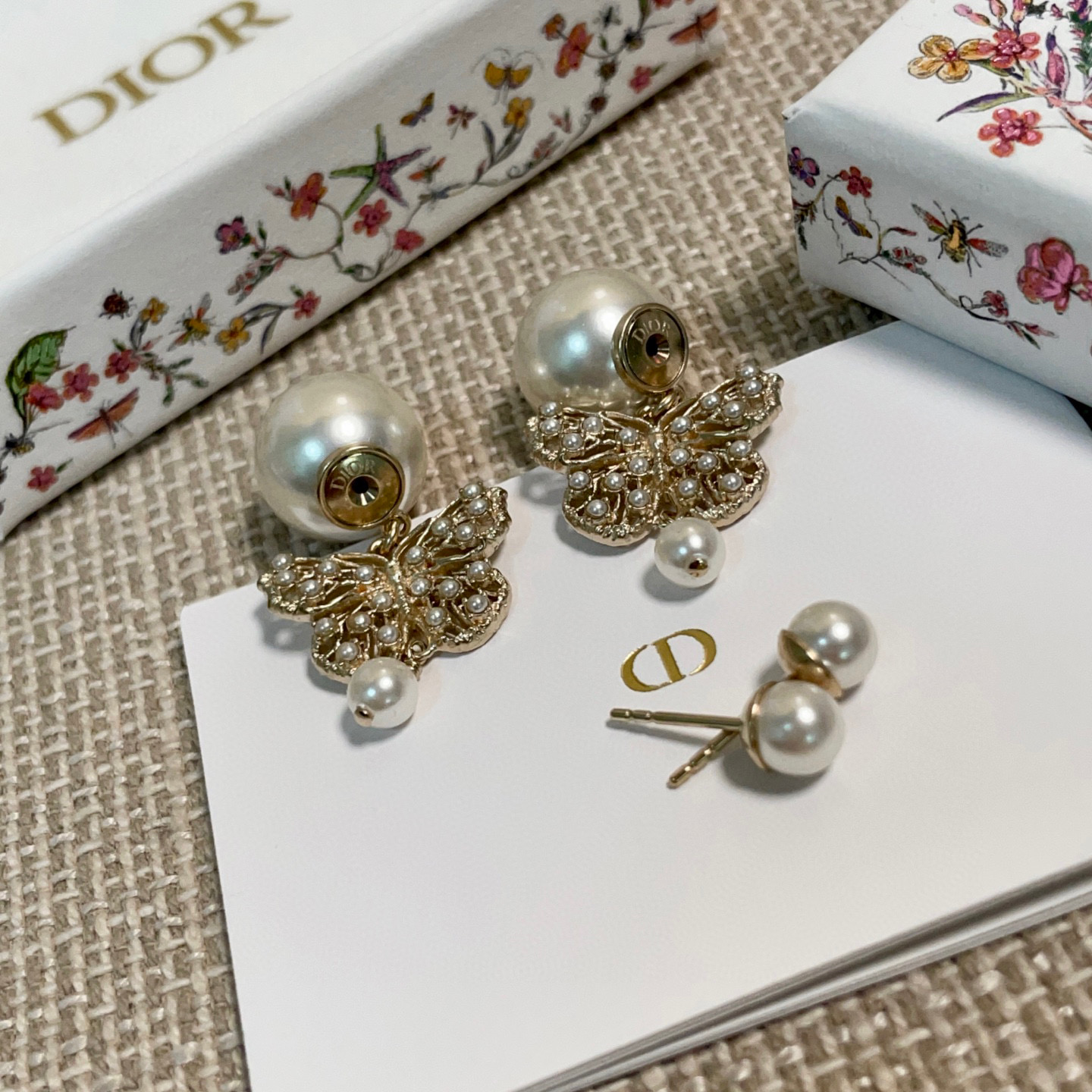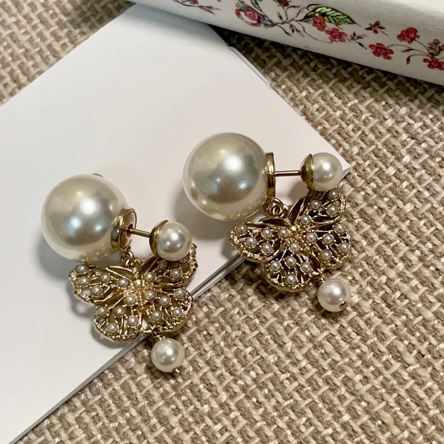 2025早春新品 D家 鏤空珠蝶雙珠耳釘
