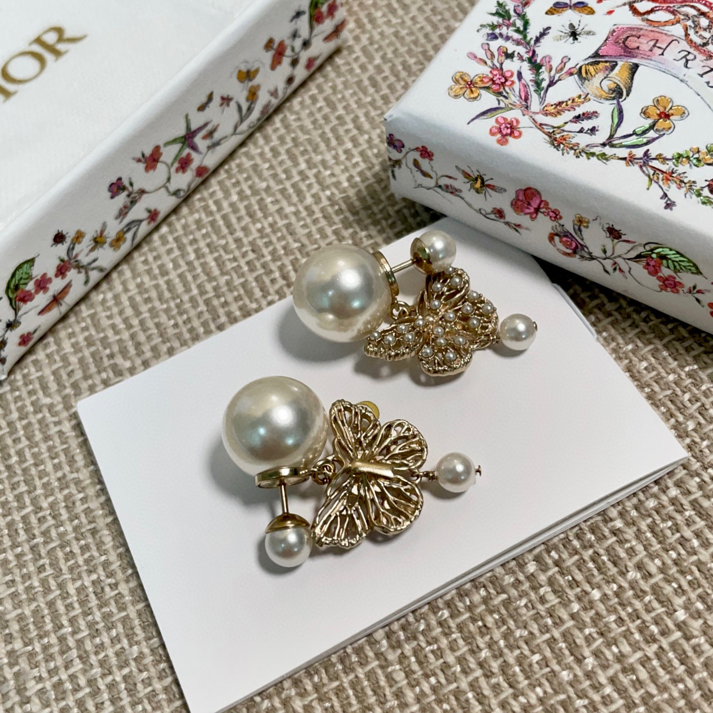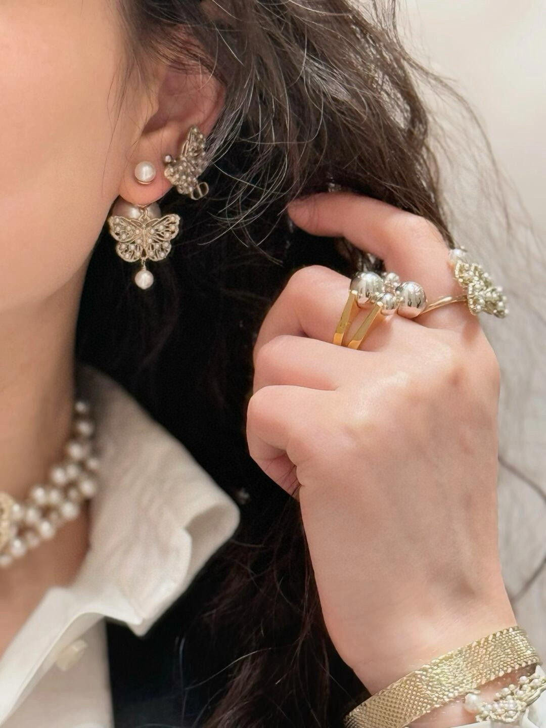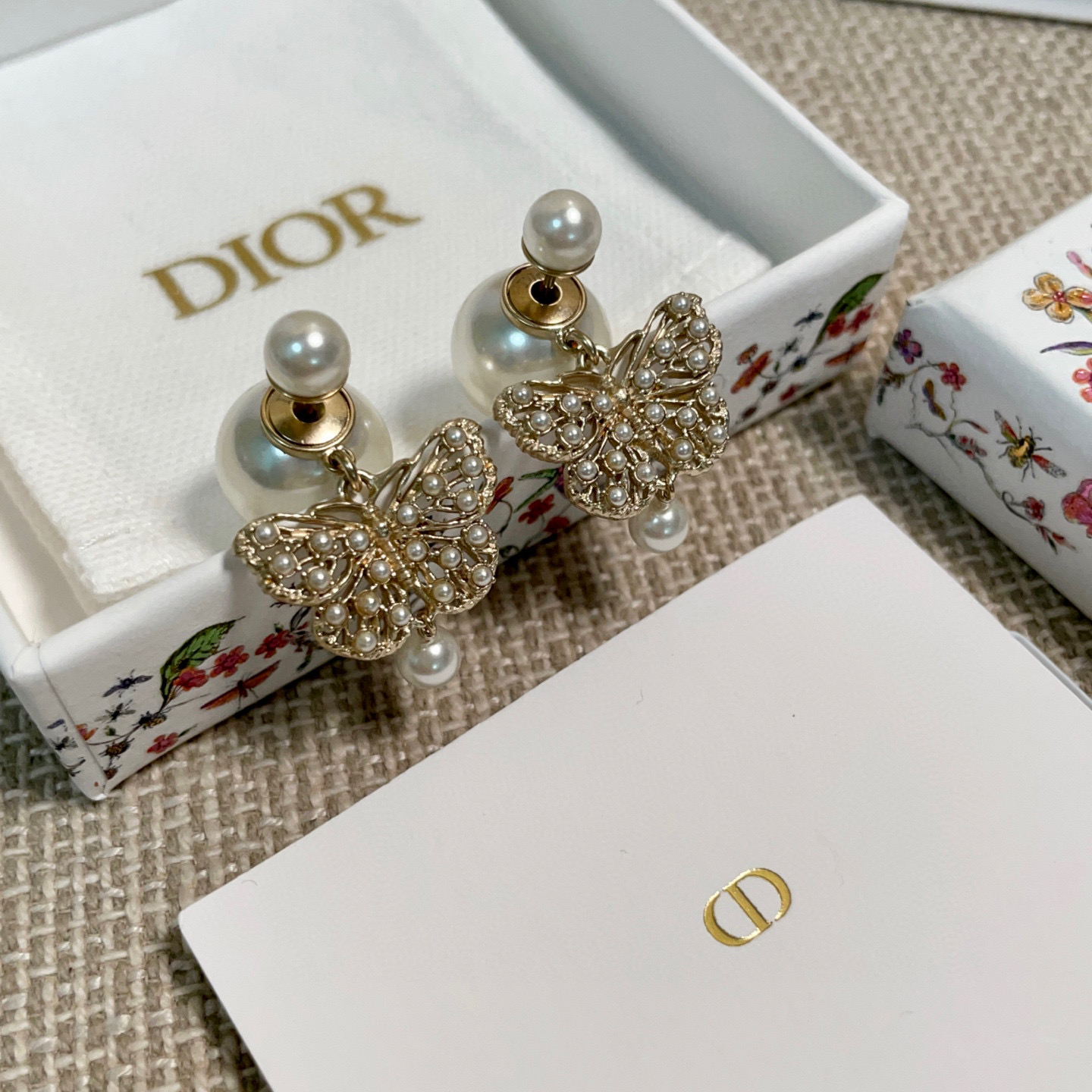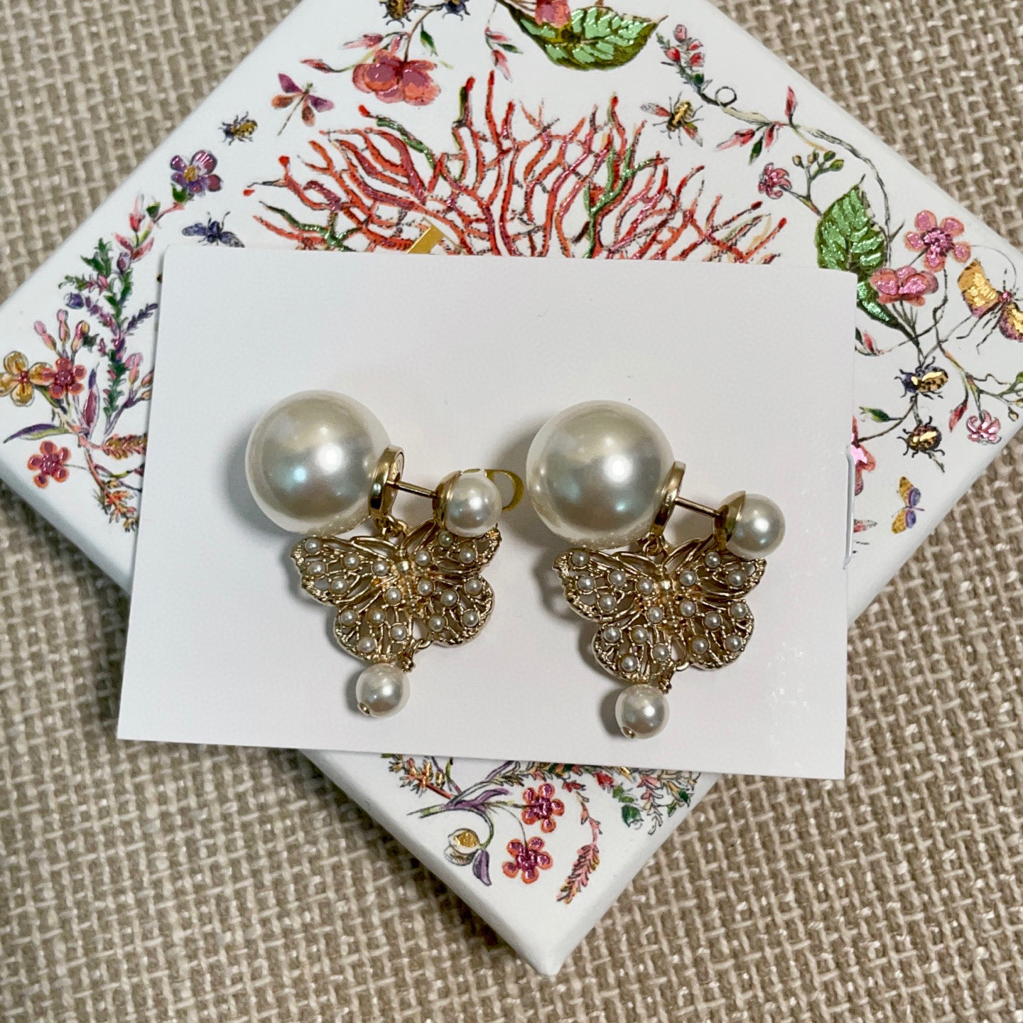 2025早春新品 D家 鏤空珠蝶雙珠耳釘