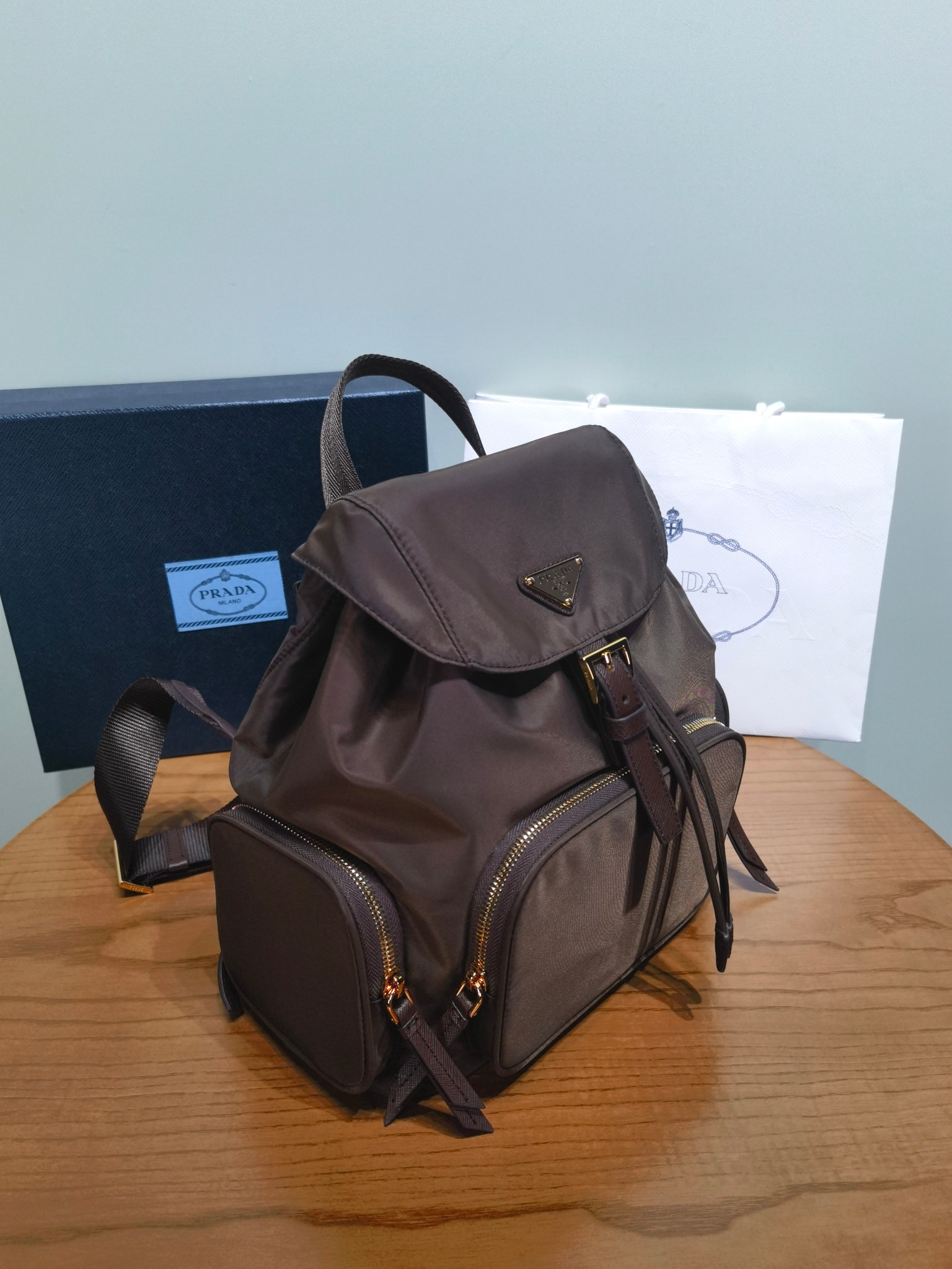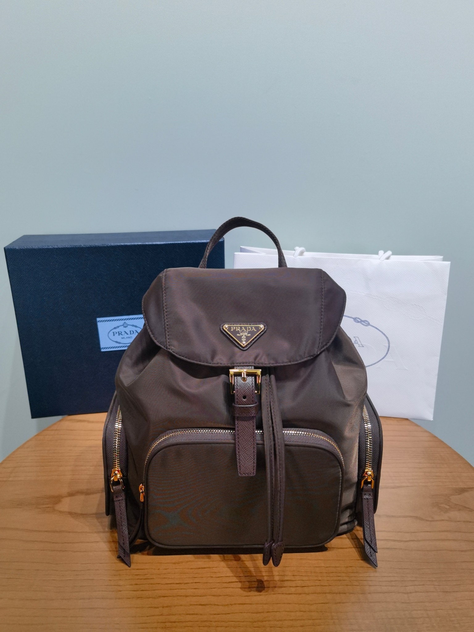 2025秋冬新品 P家 翻蓋抽繩雙肩包