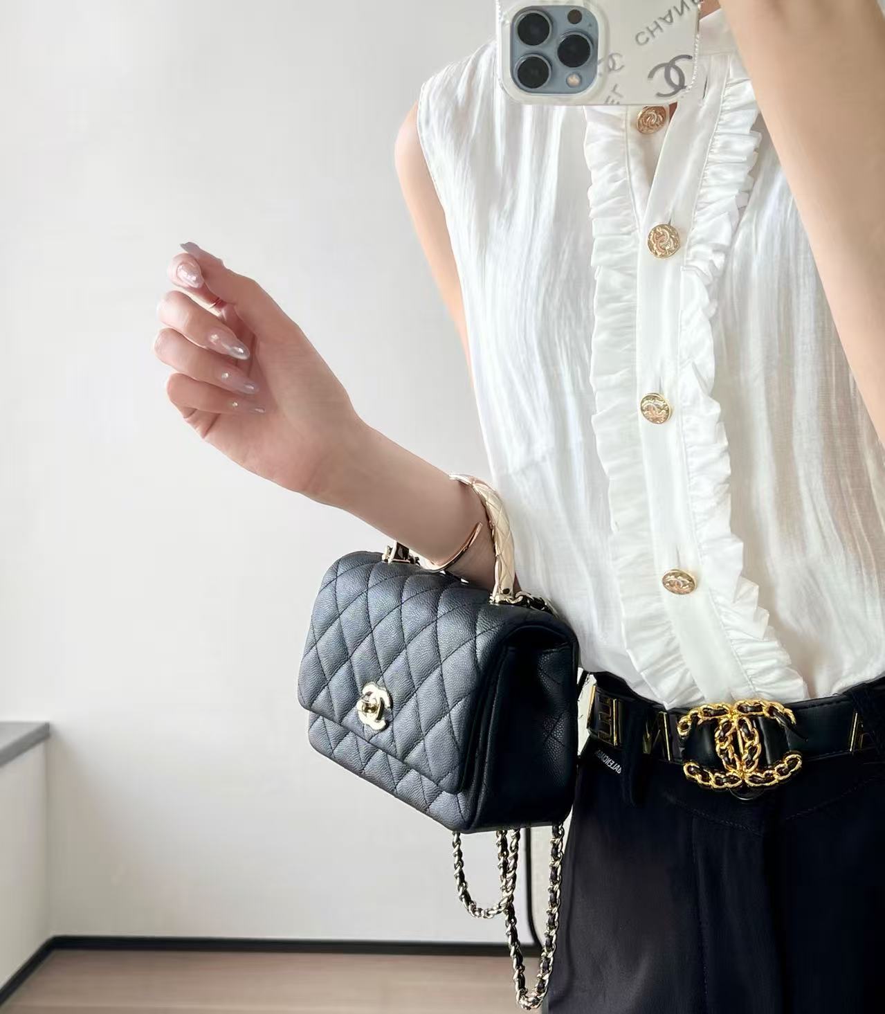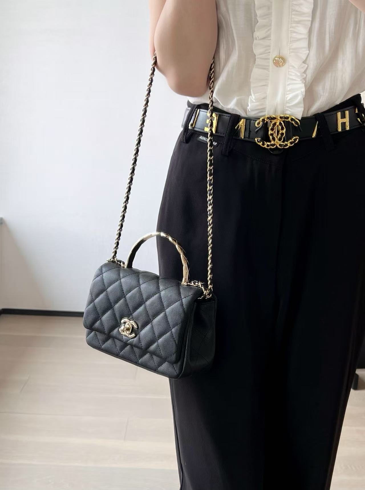 Coco Crush 棱格線金屬手柄口蓋包,時尚感爆棚!