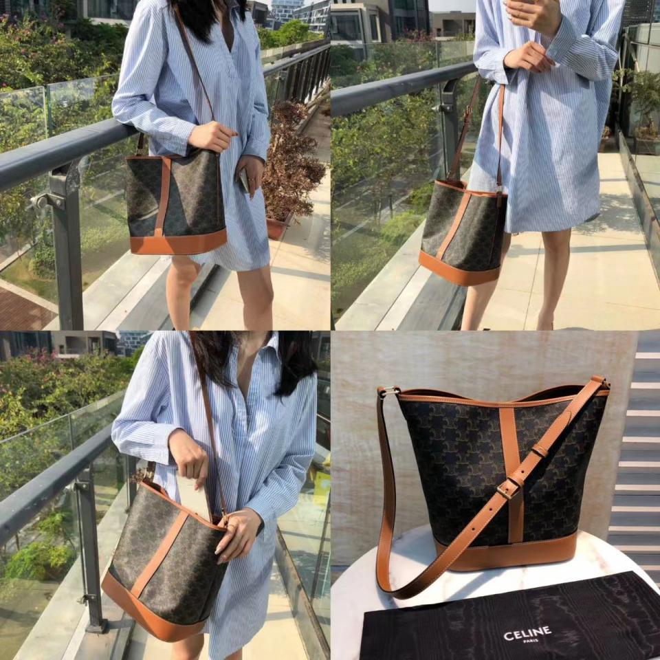 2023早秋經典款 CE家老花系列Triomphe帆布水桶包(中號)