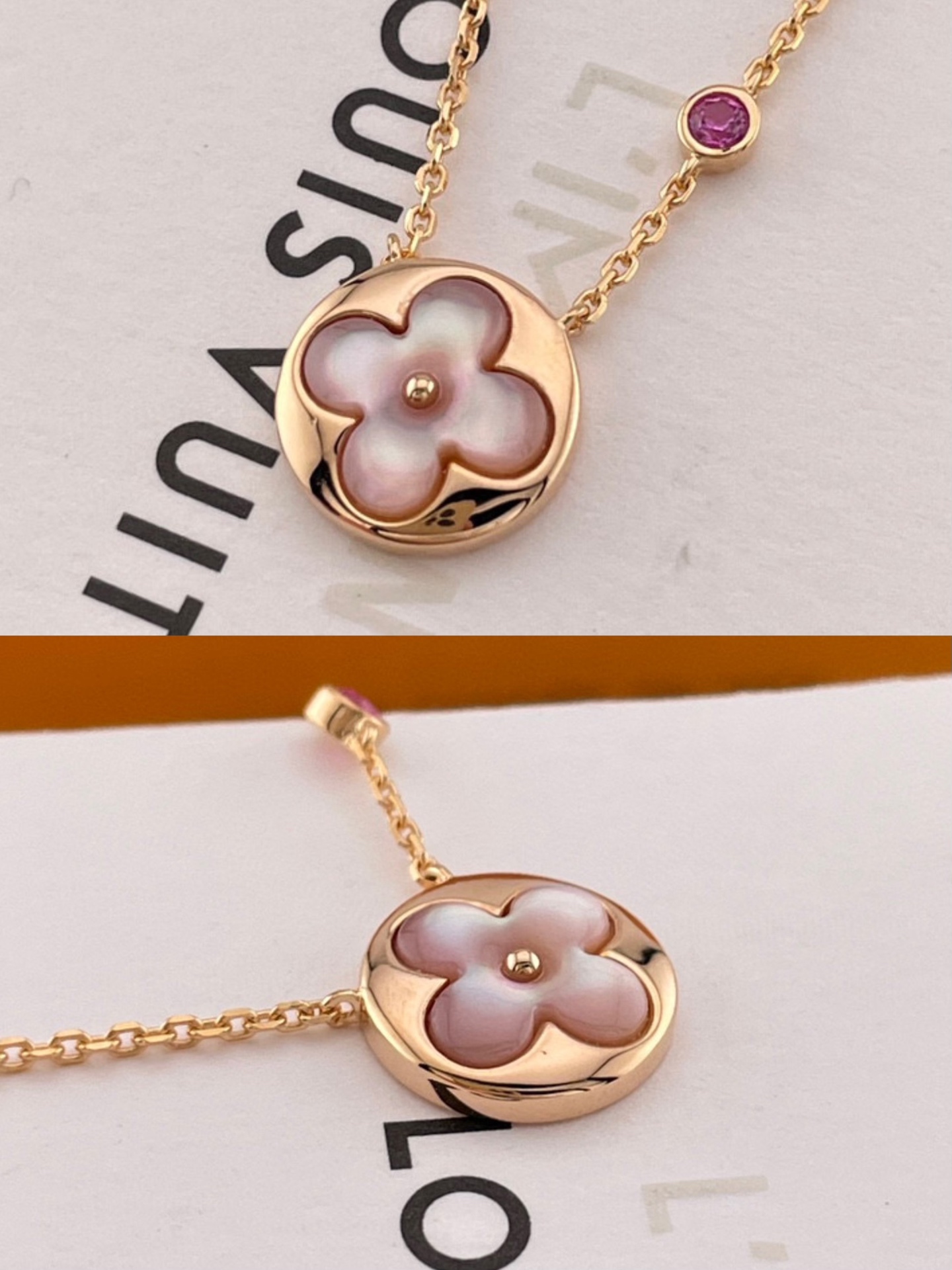 將象徵幸運的四葉草設計融入日常配飾,以天然粉貝與粉色藍寶石組合而成的圓形吊墜,不僅有氣質,更添一份柔和與甜美。