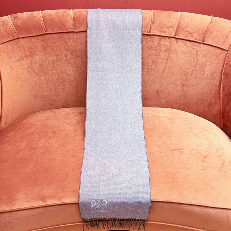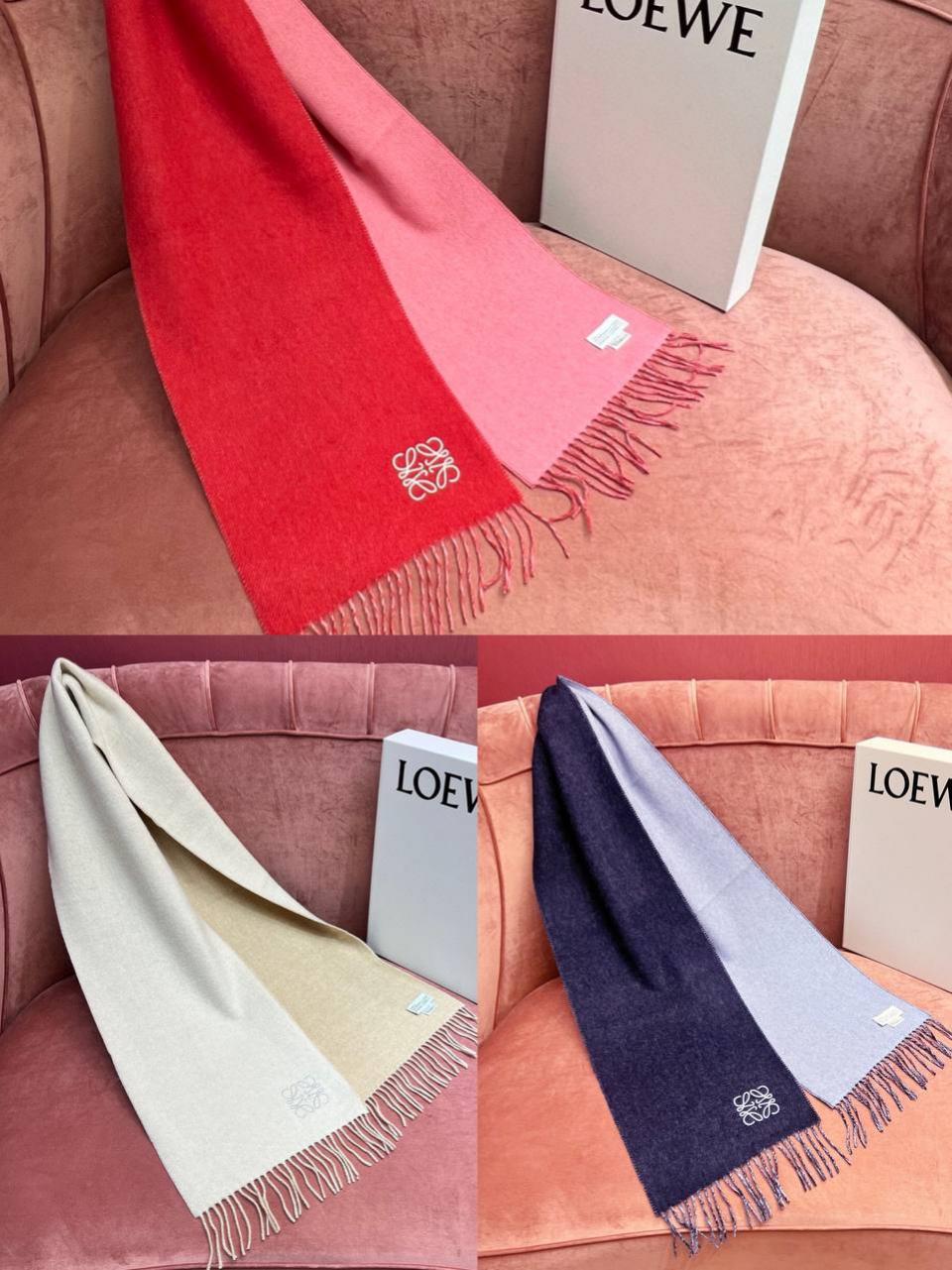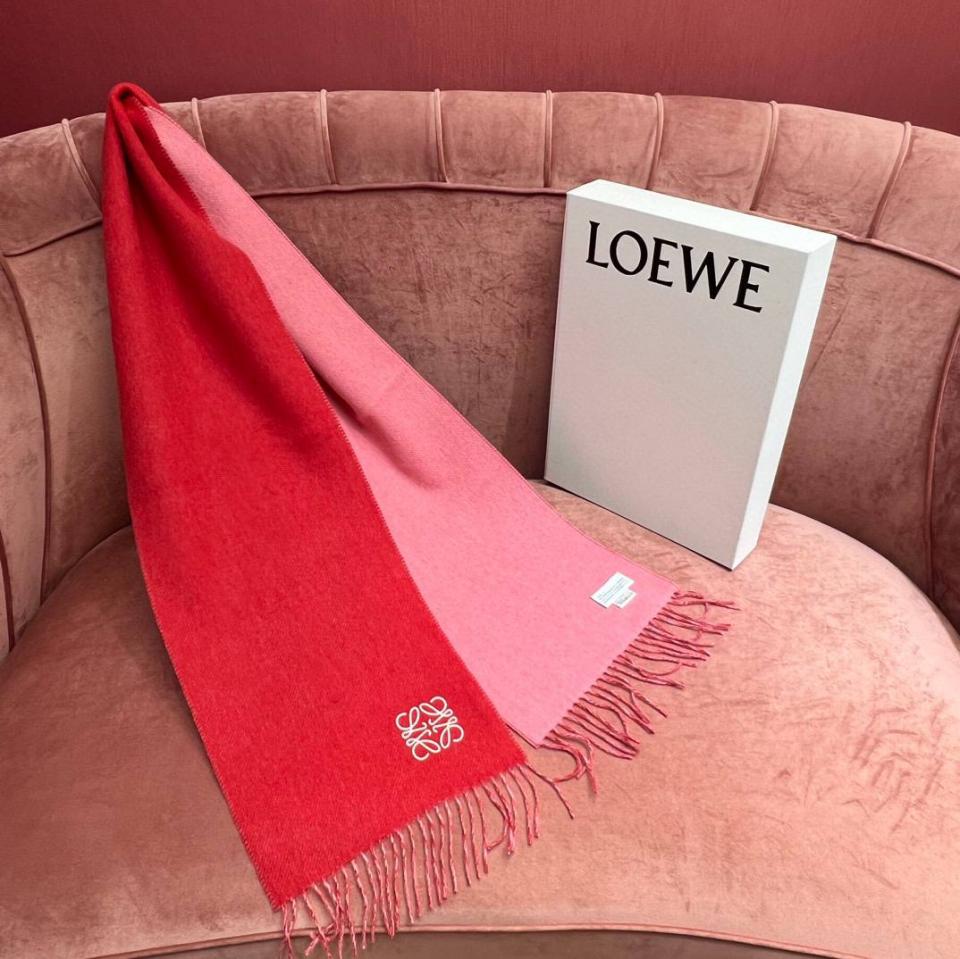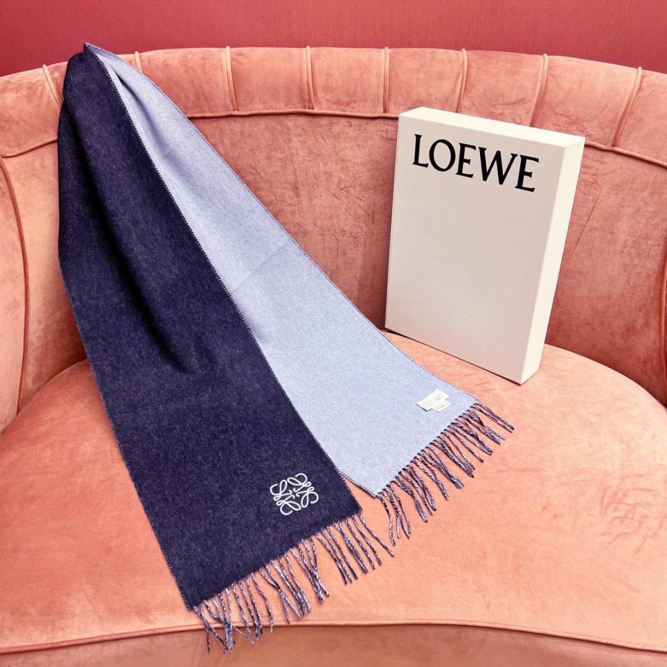 2024早春 LEW素面拼色LOGO羊毛羊絨圍巾