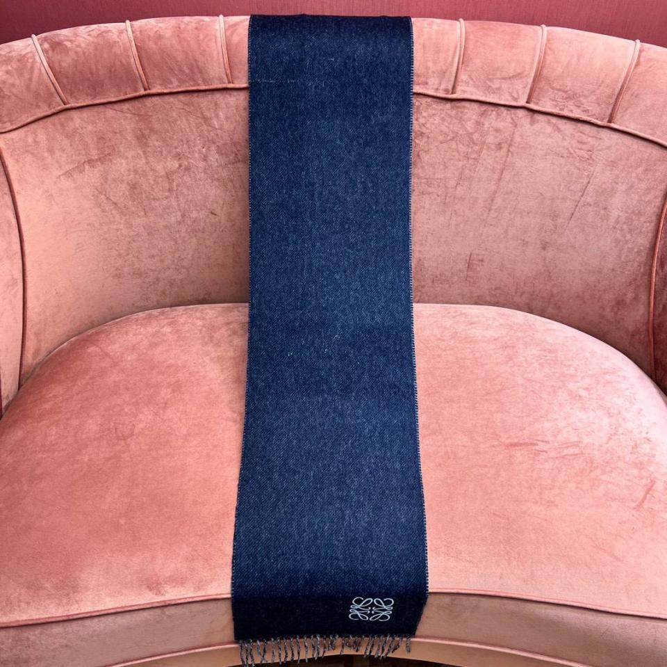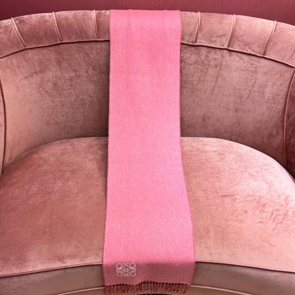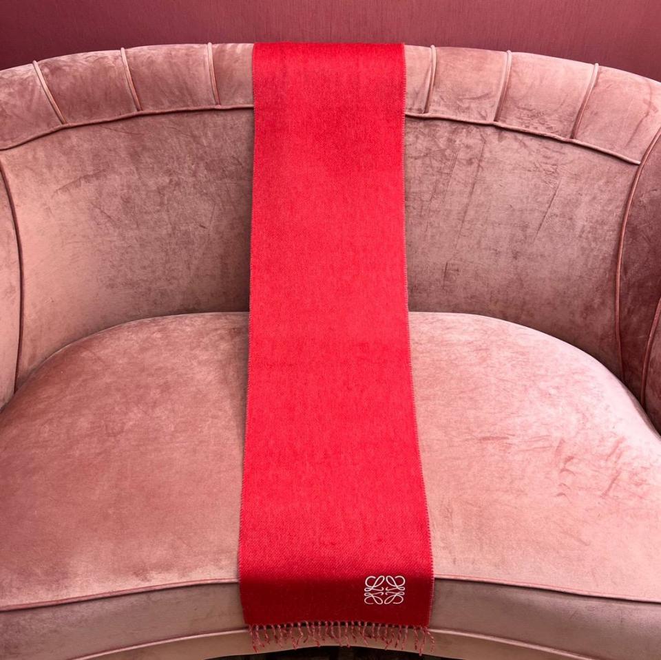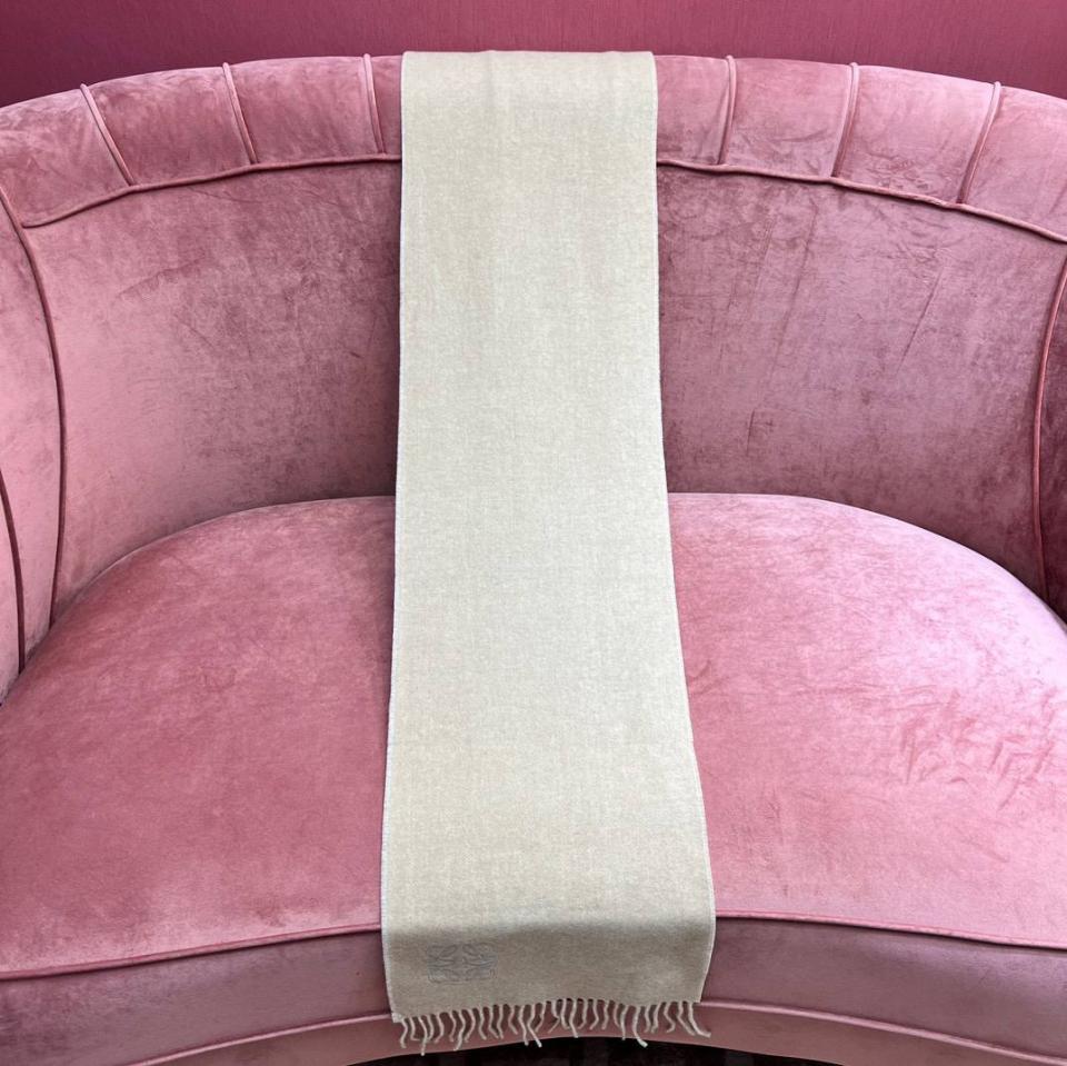 2024早春 LEW素面拼色LOGO羊毛羊絨圍巾