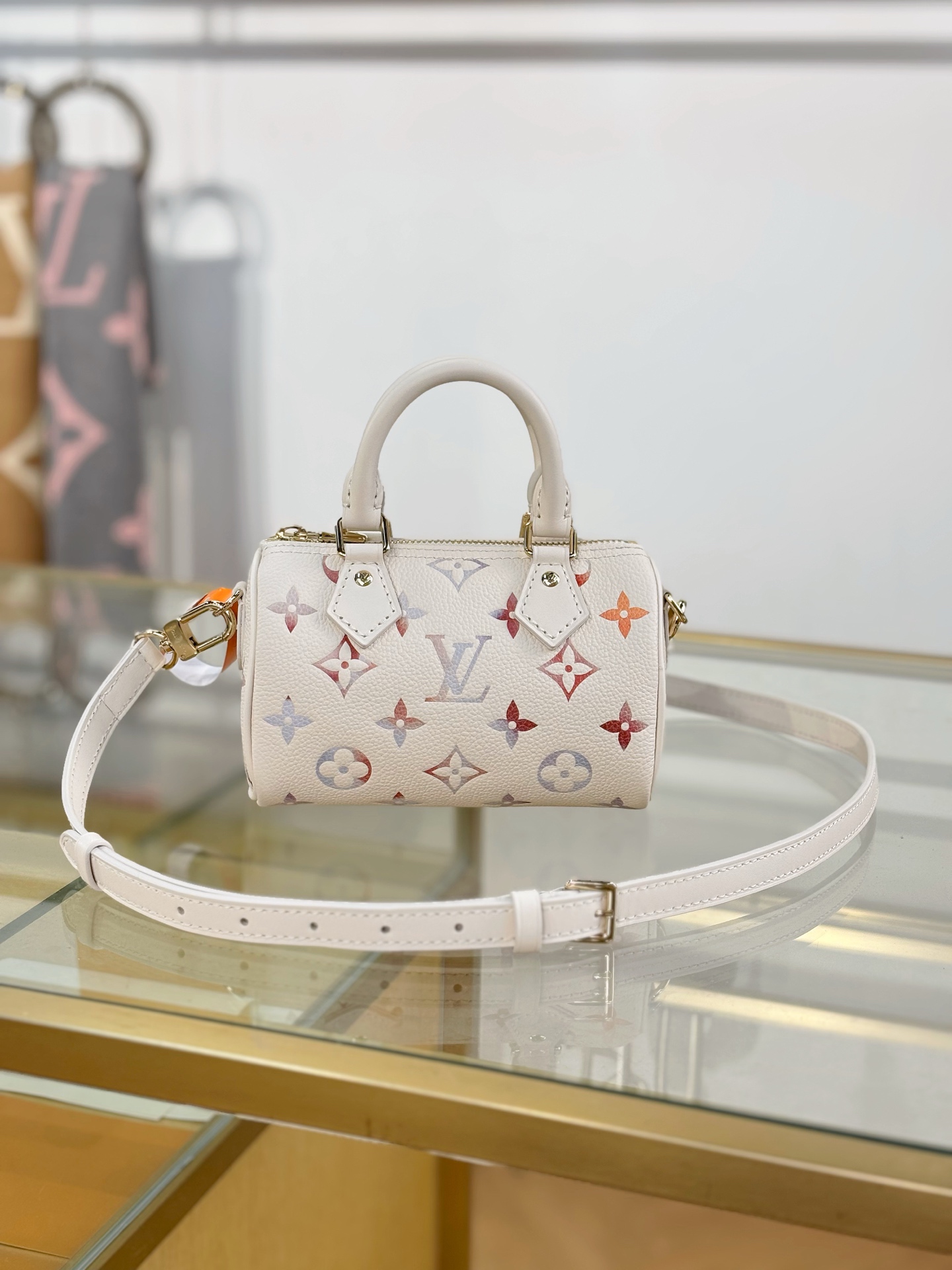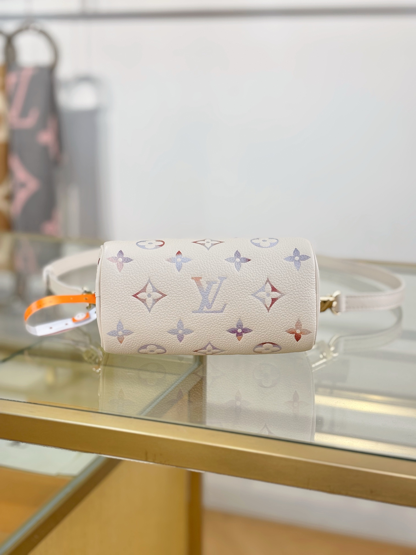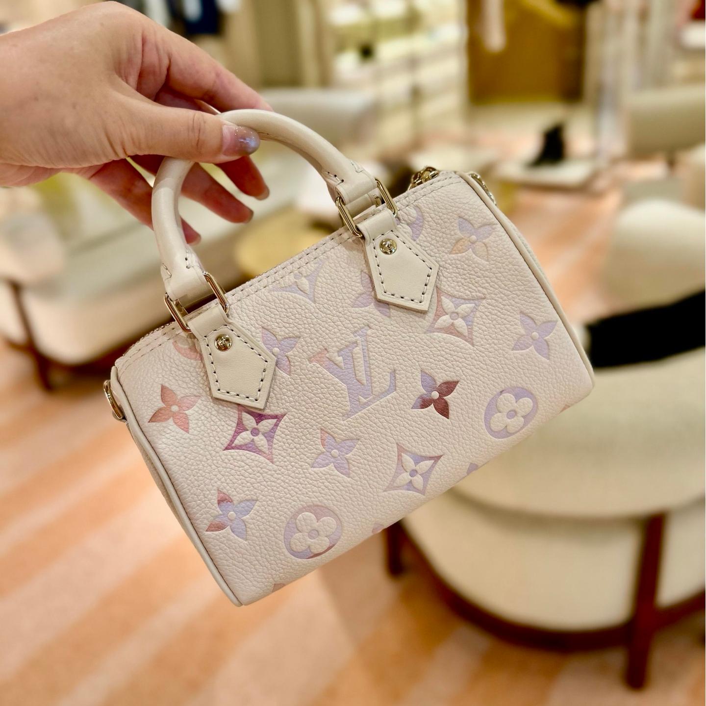 這款Nano Speedy 手袋是七夕限定款,真的是讓人一眼就愛上的夢幻逸品!整體logo採用漸層色設計,色彩交融得細膩又浪漫,彷彿把夏末傍晚的天空收進了手袋裡。