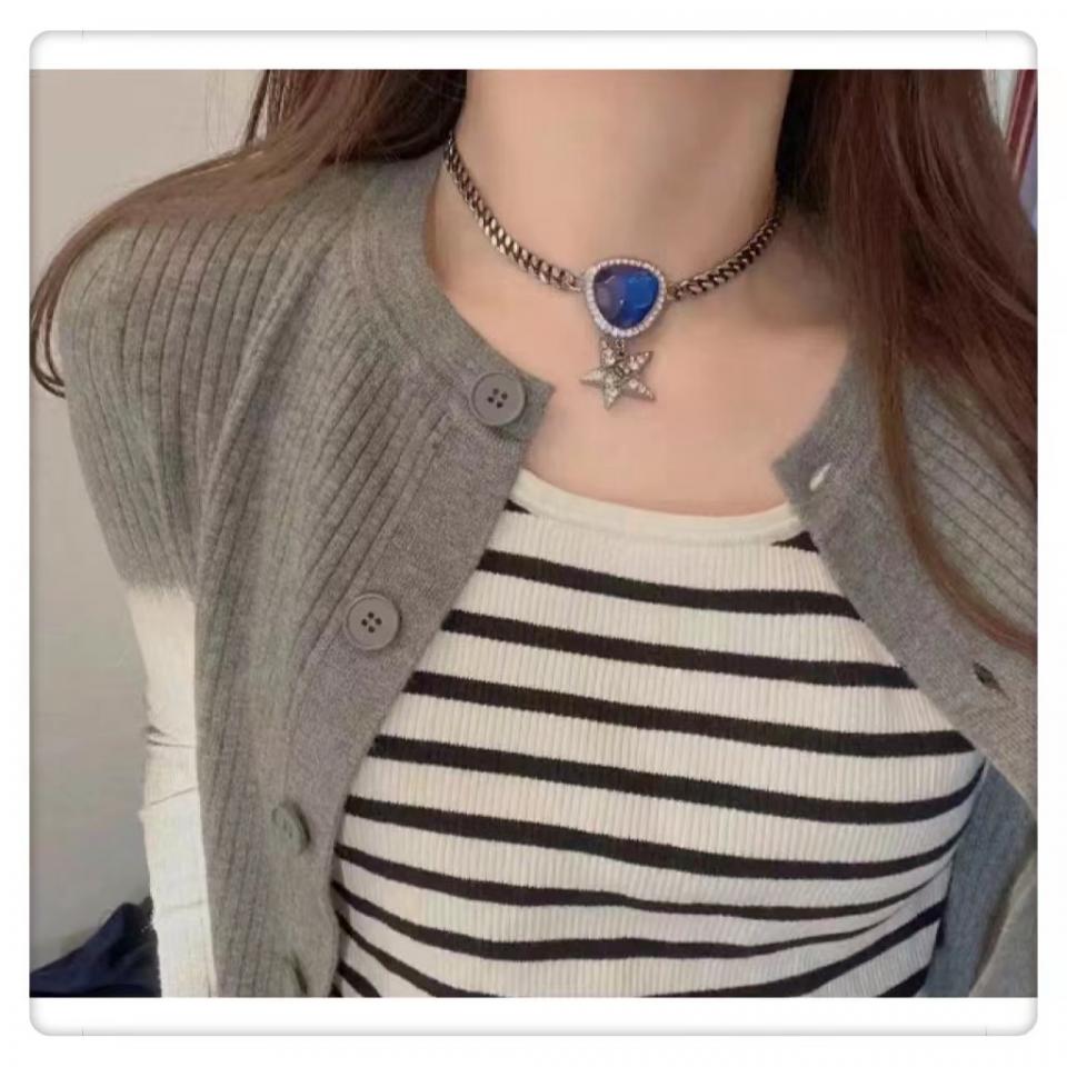 人手必入一套!一顆切割面的藍寶石,特別顯白。邊邊以及星星,尾鏈雙C雙面都是帶鑽的哦,上邊的鑽全部採用施華洛水晶,背面師傅手工拉絲工藝效果,分分鐘讓你戴出高級感!