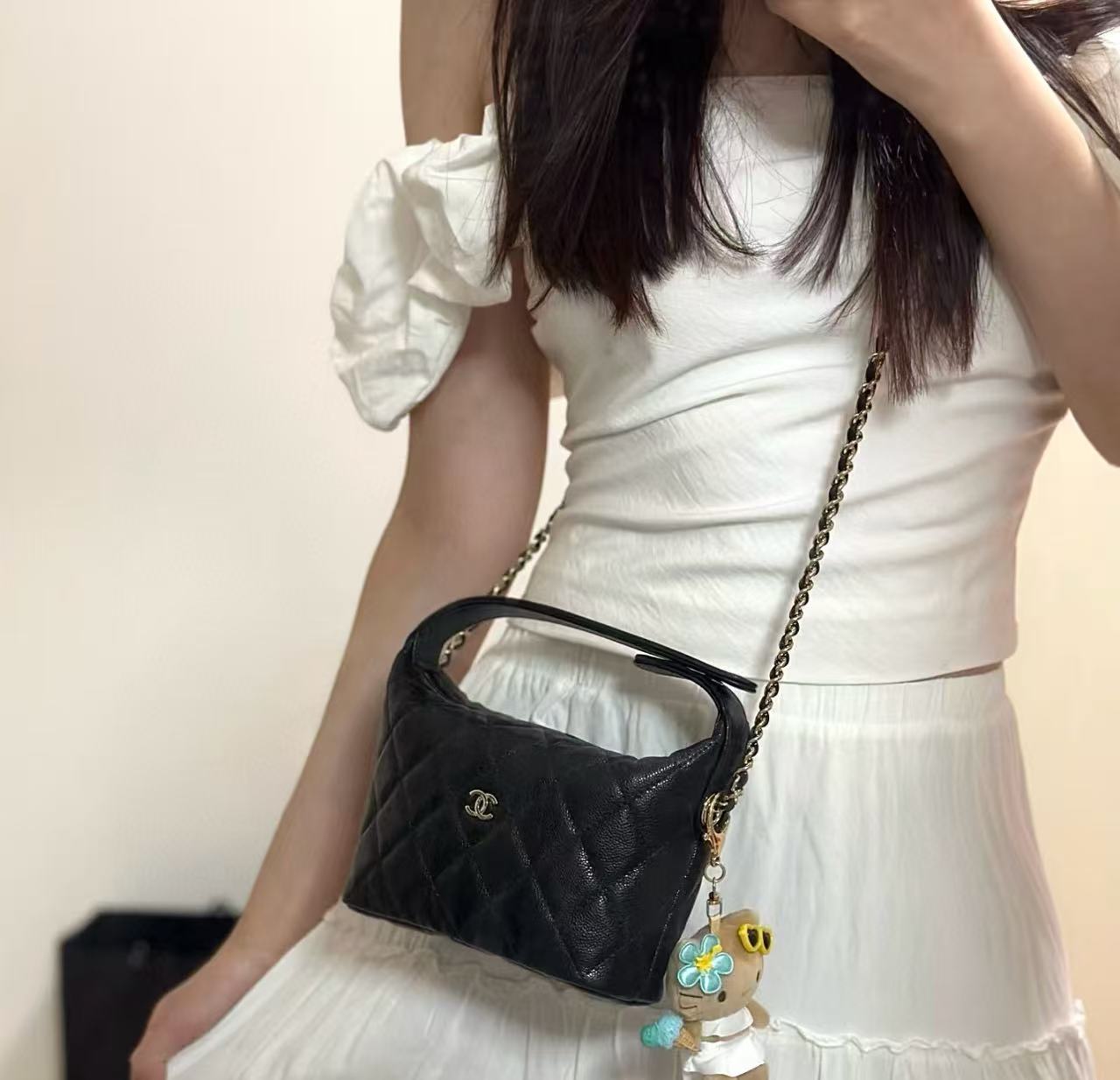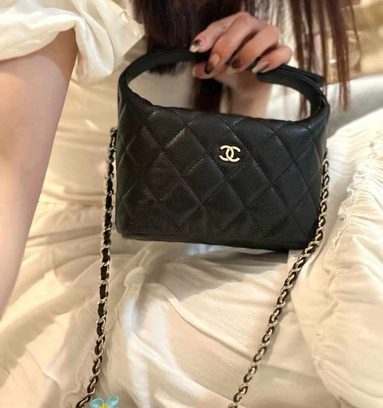 這咖包包真的是太太太太好看了!當初是透過專櫃加價才買到,真的是一包難求。它沿用了小香最經典的黑金配色,搭配上非常耐看的餃子包造型,完全是那種可以背一輩子都不會過時的款式,每個細節都充滿了高級感。