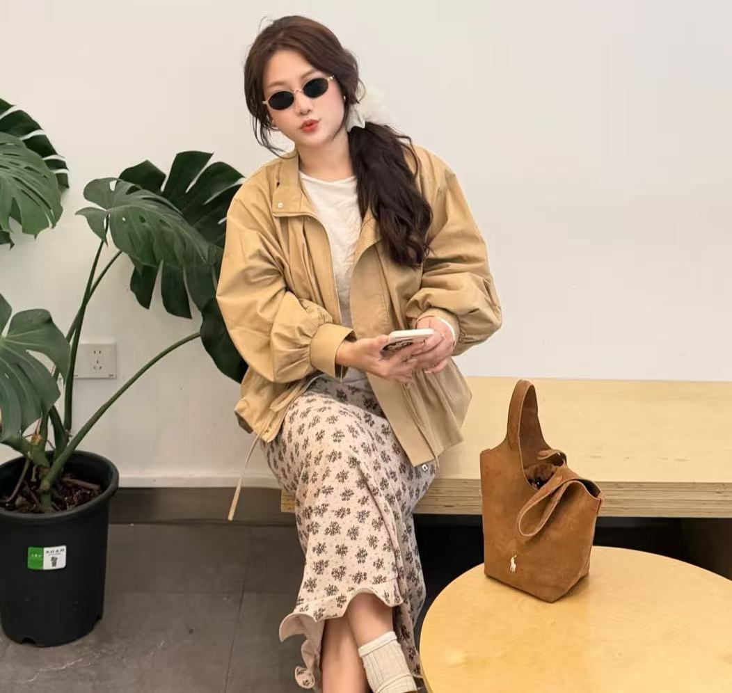 這款麂皮菜籃子包,以精巧的尺寸定義了「行走的高級感」。捨棄了繁瑣的裝飾,轉而透過高級的面料色澤與流暢的線條,營造出一種不經意的貴氣感。