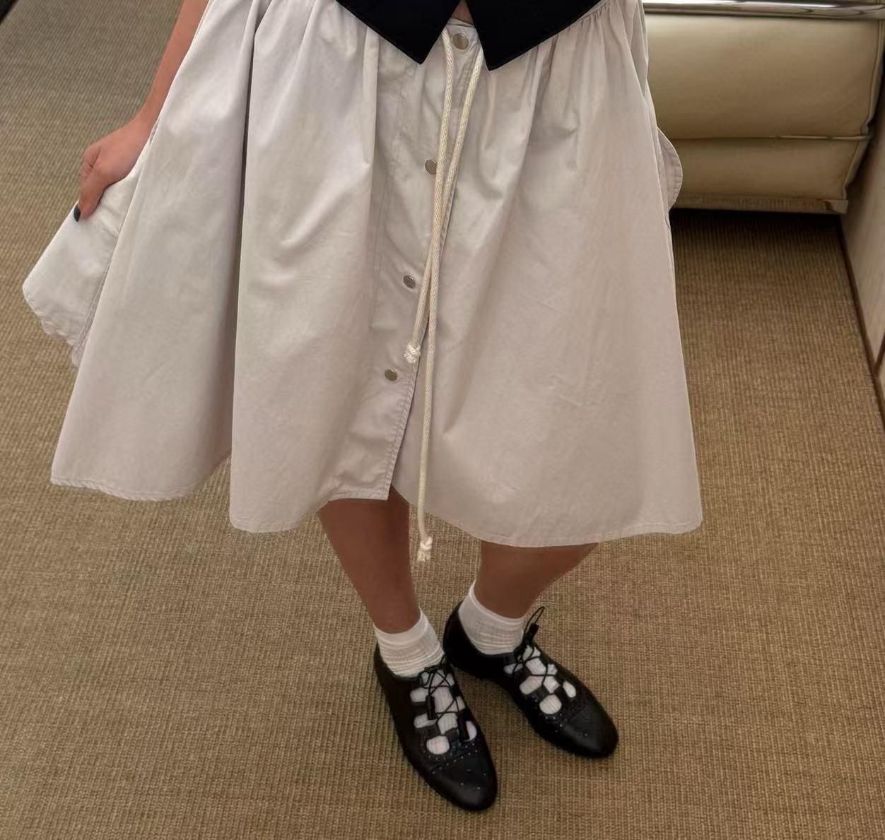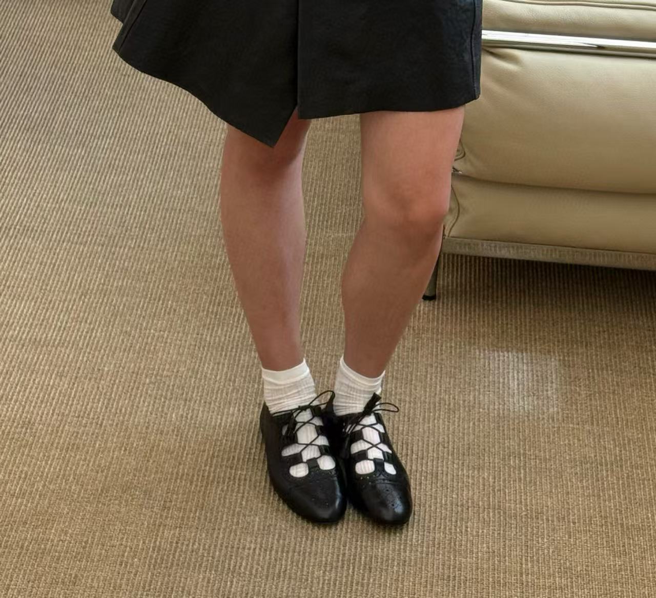 是那種一眼看上去就知道「不簡單」的款,設計線條乾淨俐落,鞋面鏤空雕花搭配細緻綁帶,不論光腳穿或搭中筒襪,氣質與潮流兼具,完全穿出自我風格。