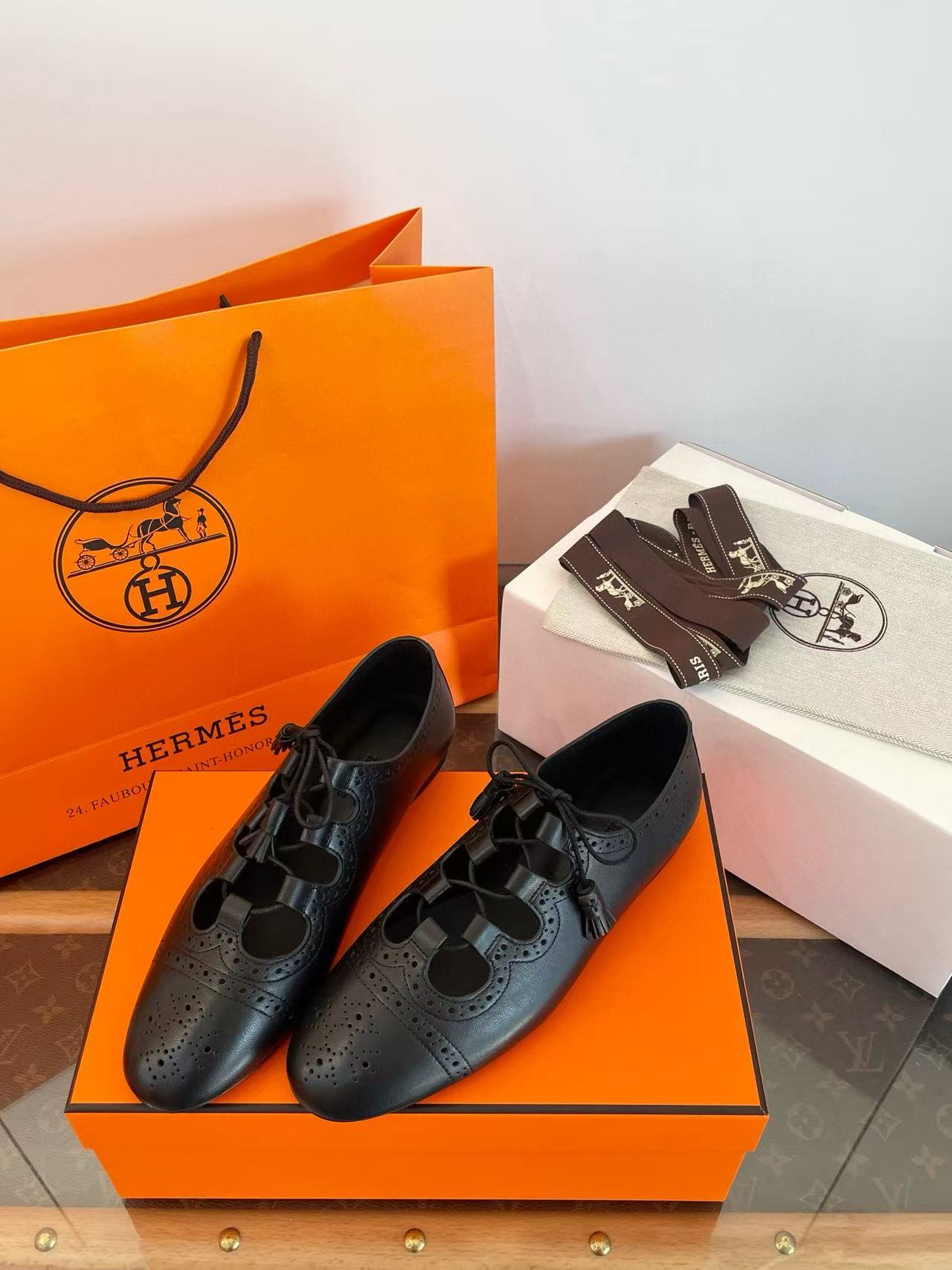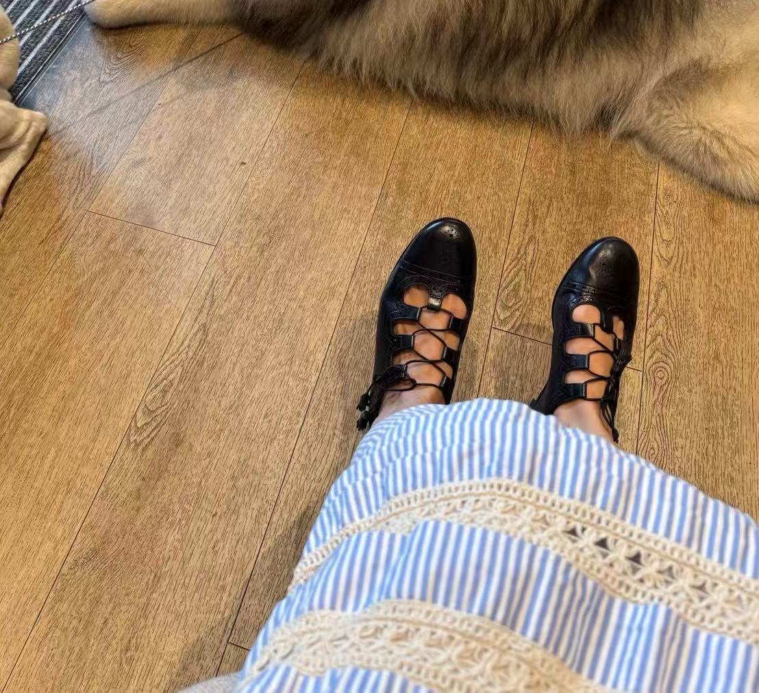 2025夏季新品 H家 鏤空系帶樂福鞋