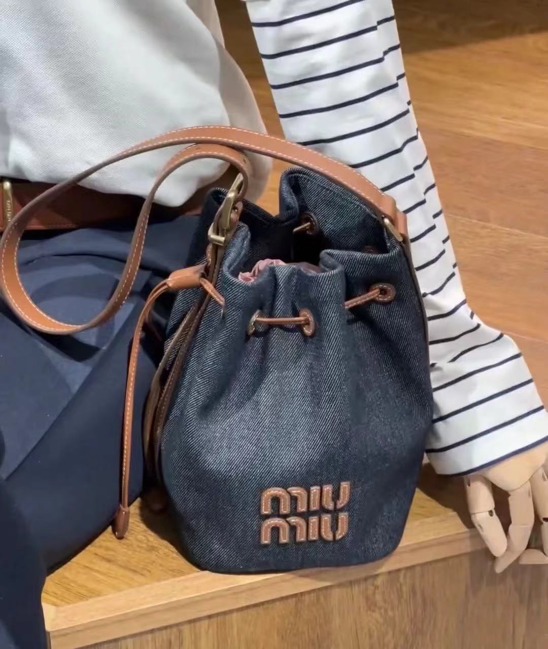 2024春夏 MIU家字母牛仔水桶包