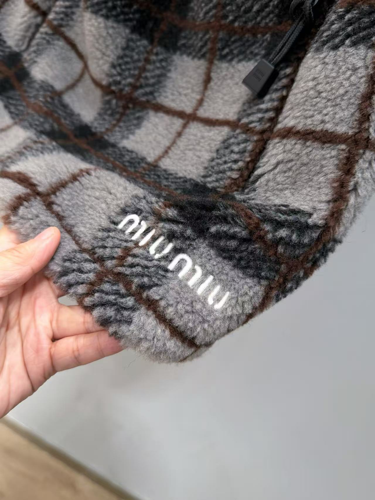 高密度羊毛粒絨材質,自帶雲朵般的蓬鬆柔軟感,棕灰調復古格紋,滿滿英倫學院氛圍。
