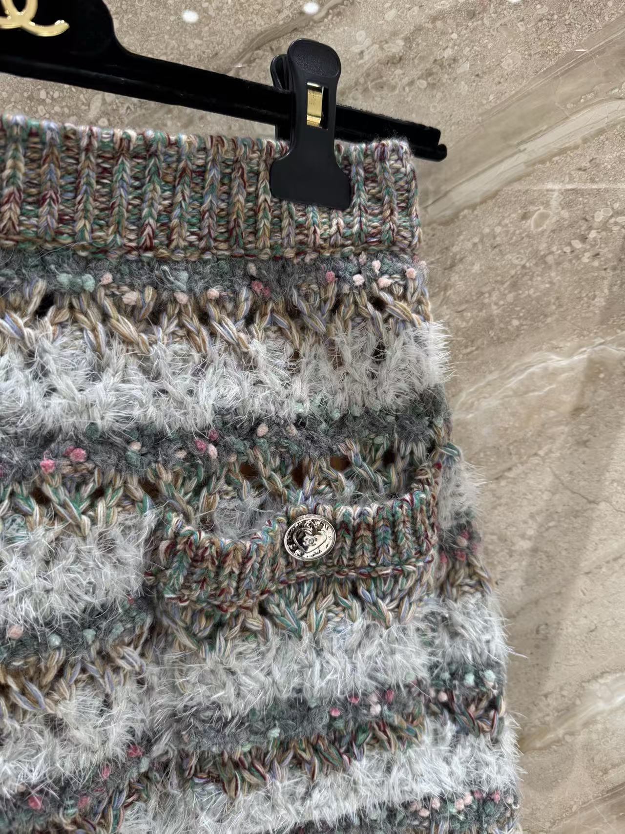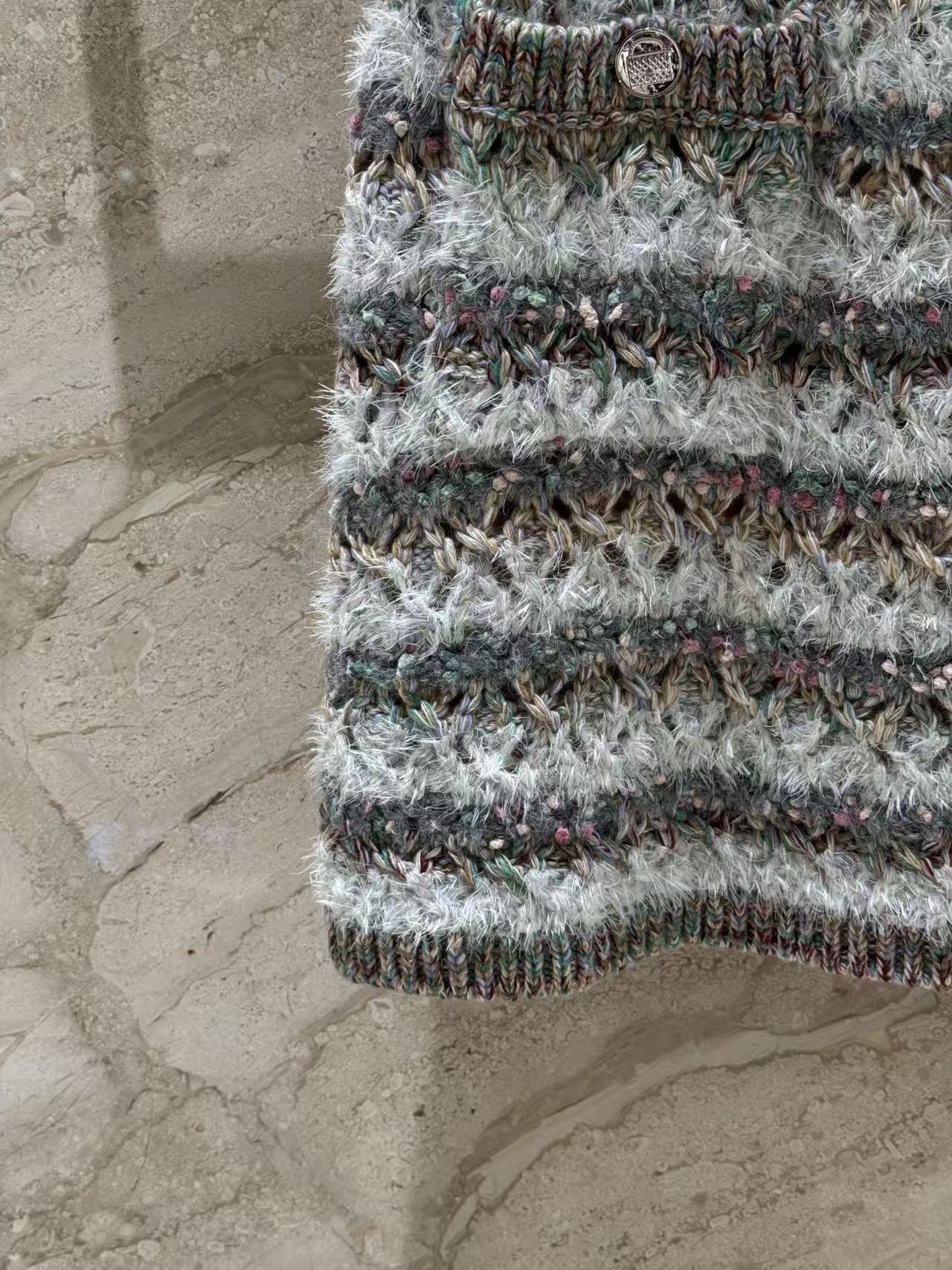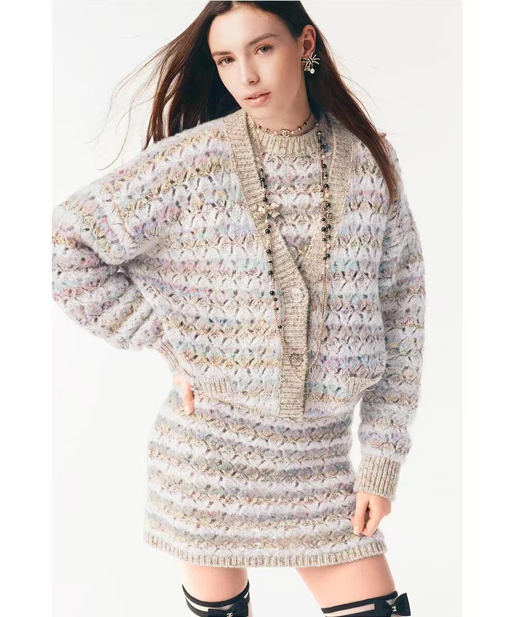 混色條紋加上大面積鏤空編織,層次感爆棚,遠看低調,近看細節滿滿,走路的時候輕飄飄超級有女人味~