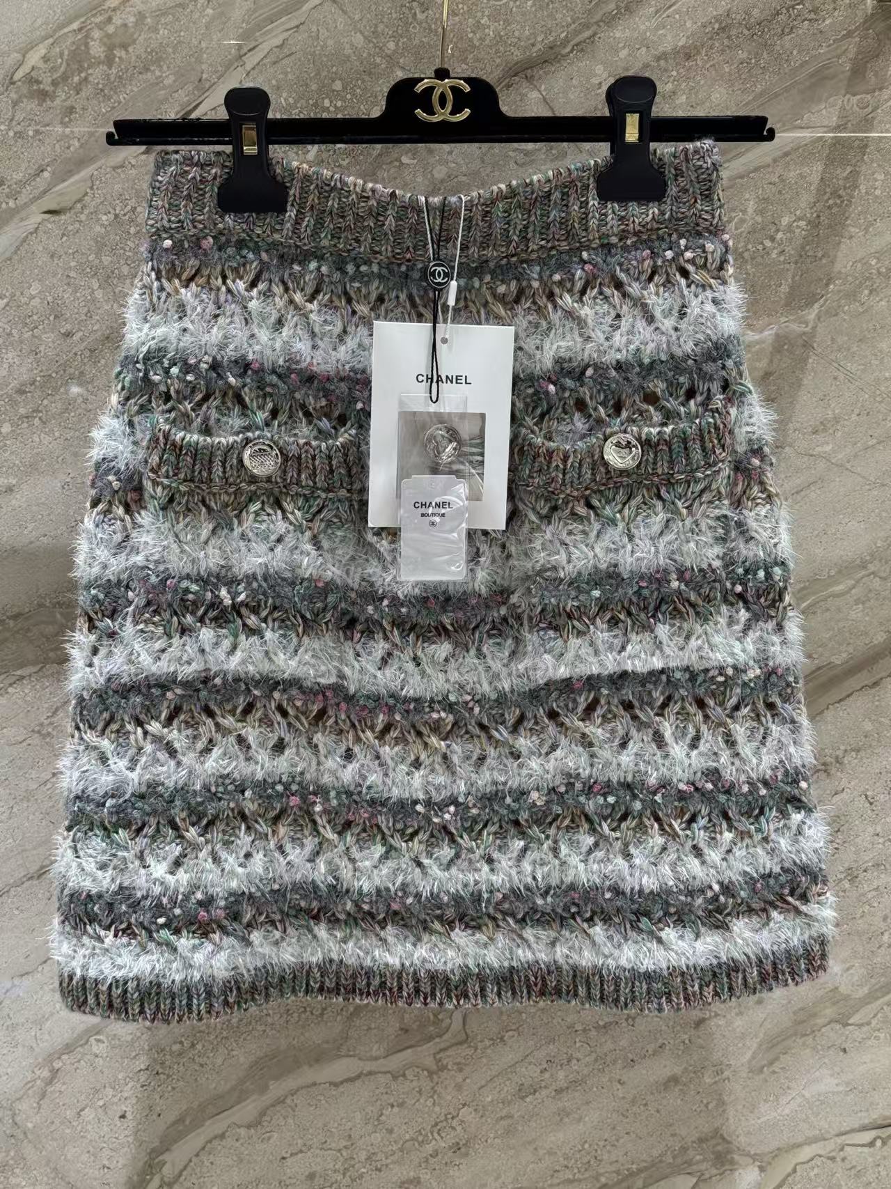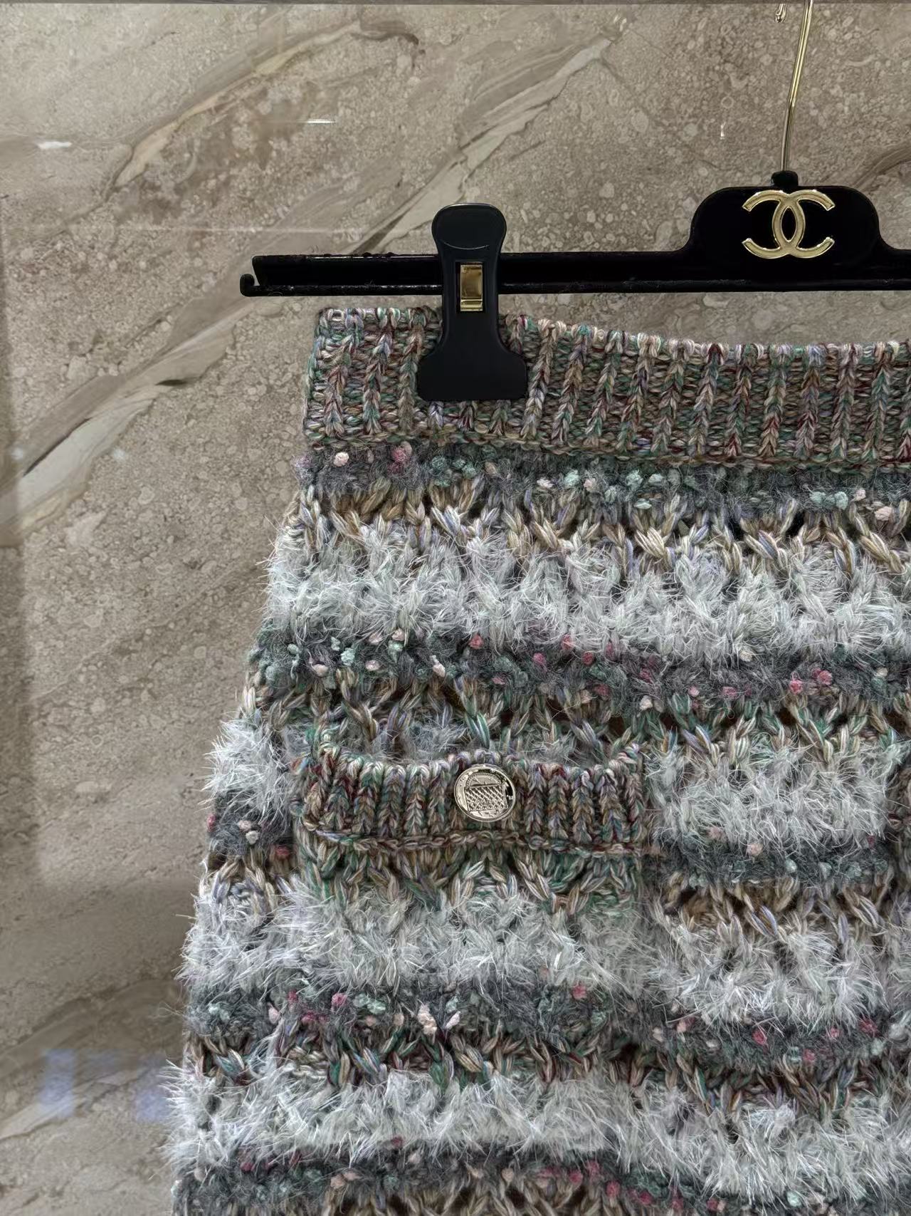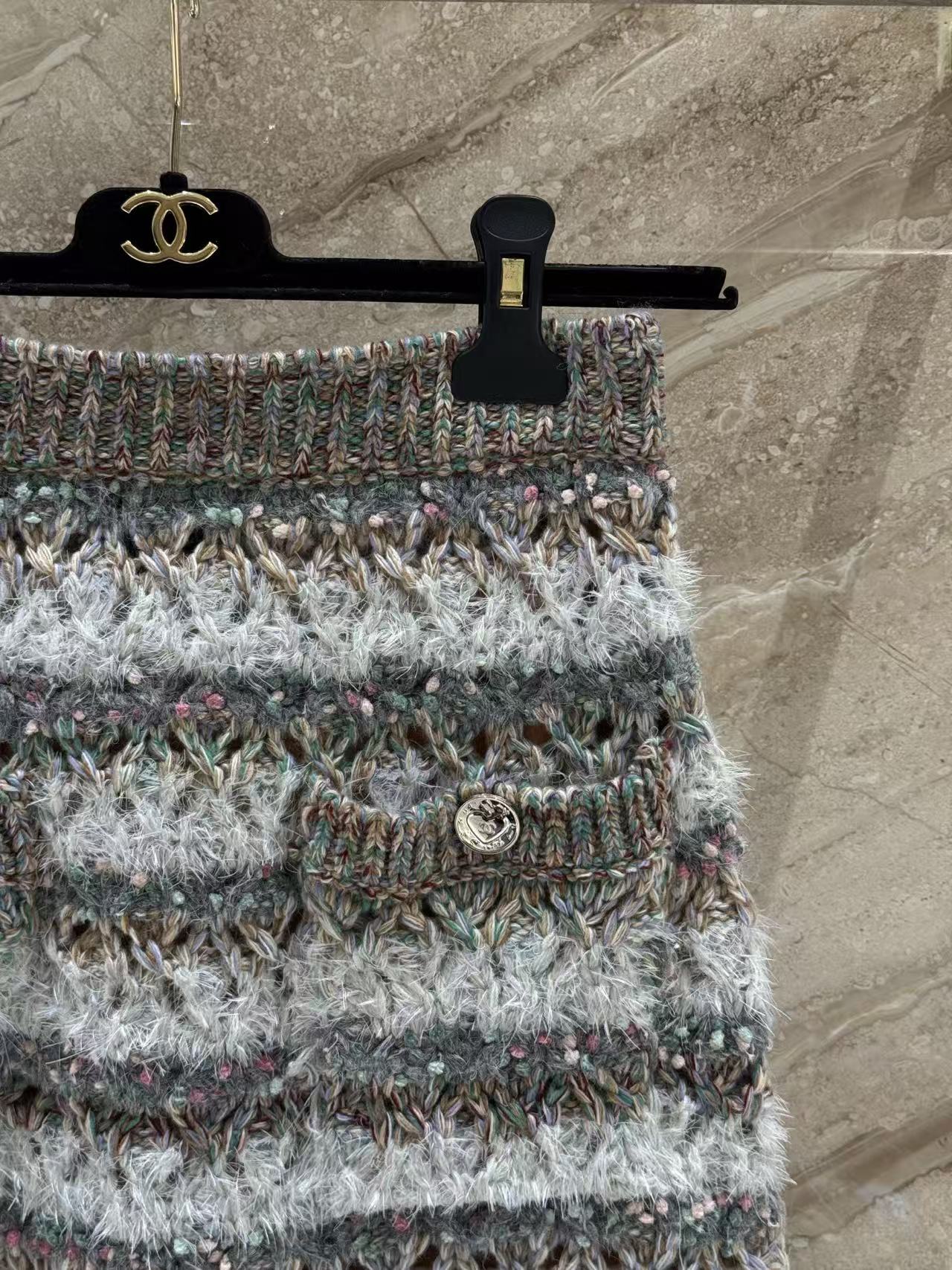 混色條紋加上大面積鏤空編織,層次感爆棚,遠看低調,近看細節滿滿,走路的時候輕飄飄超級有女人味~