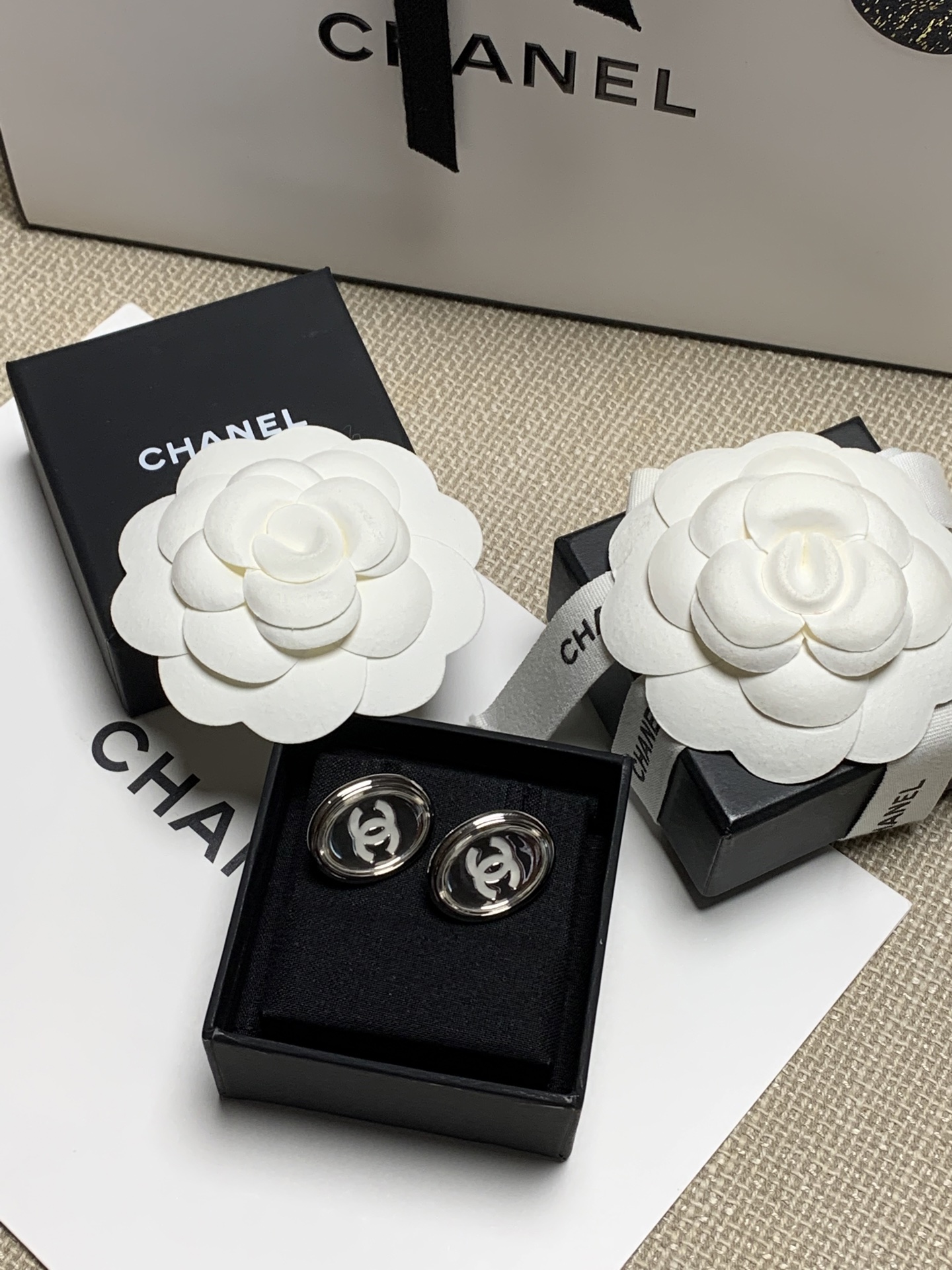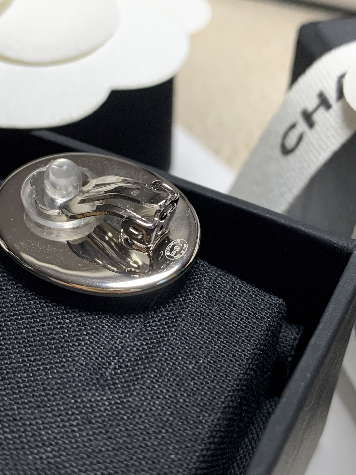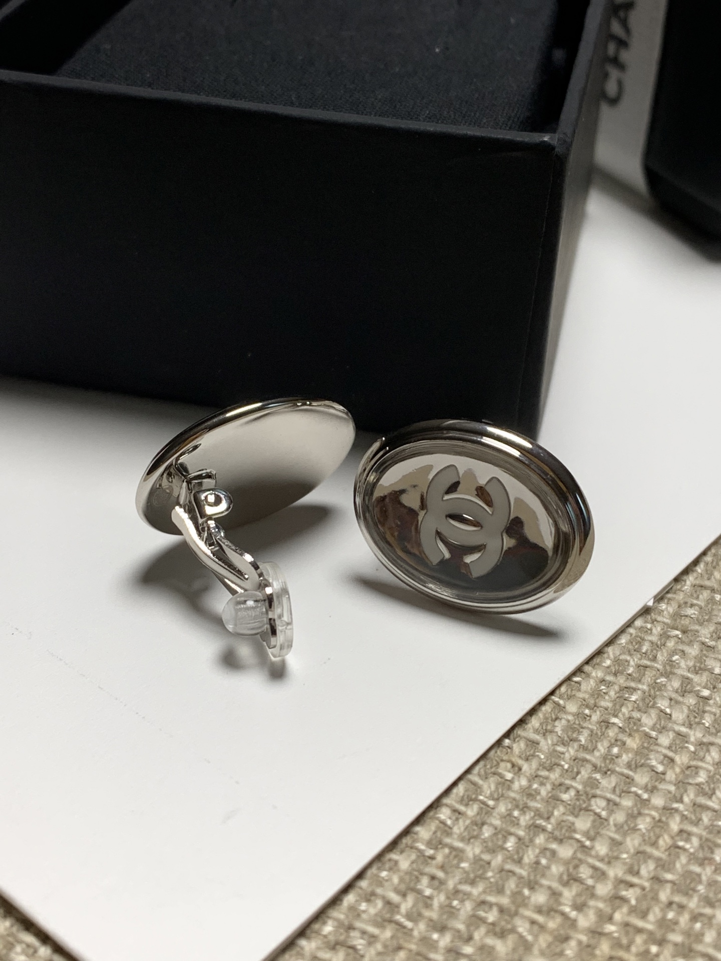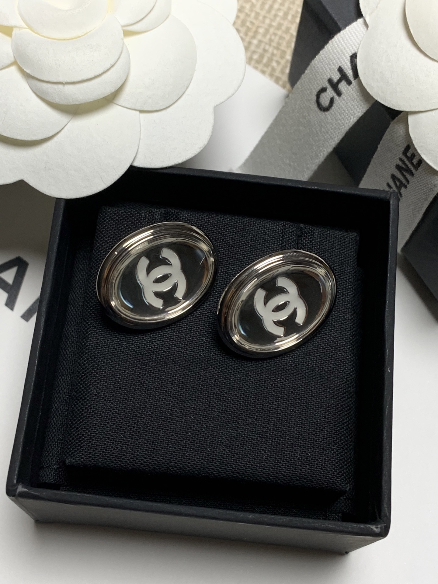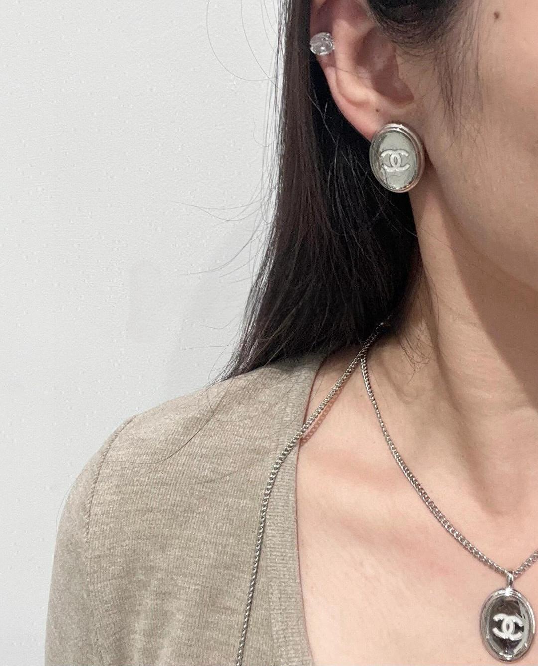 耳夾採用椭圓鏡面設計,搭配經典白色琺瑯雙C Logo,質感瞬間拉滿。鏡面結構打造出獨特的凹凸光影效果,無論從哪個角度看都閃耀動人,低調中又帶點俐落與前衛,非常耐看不膩。