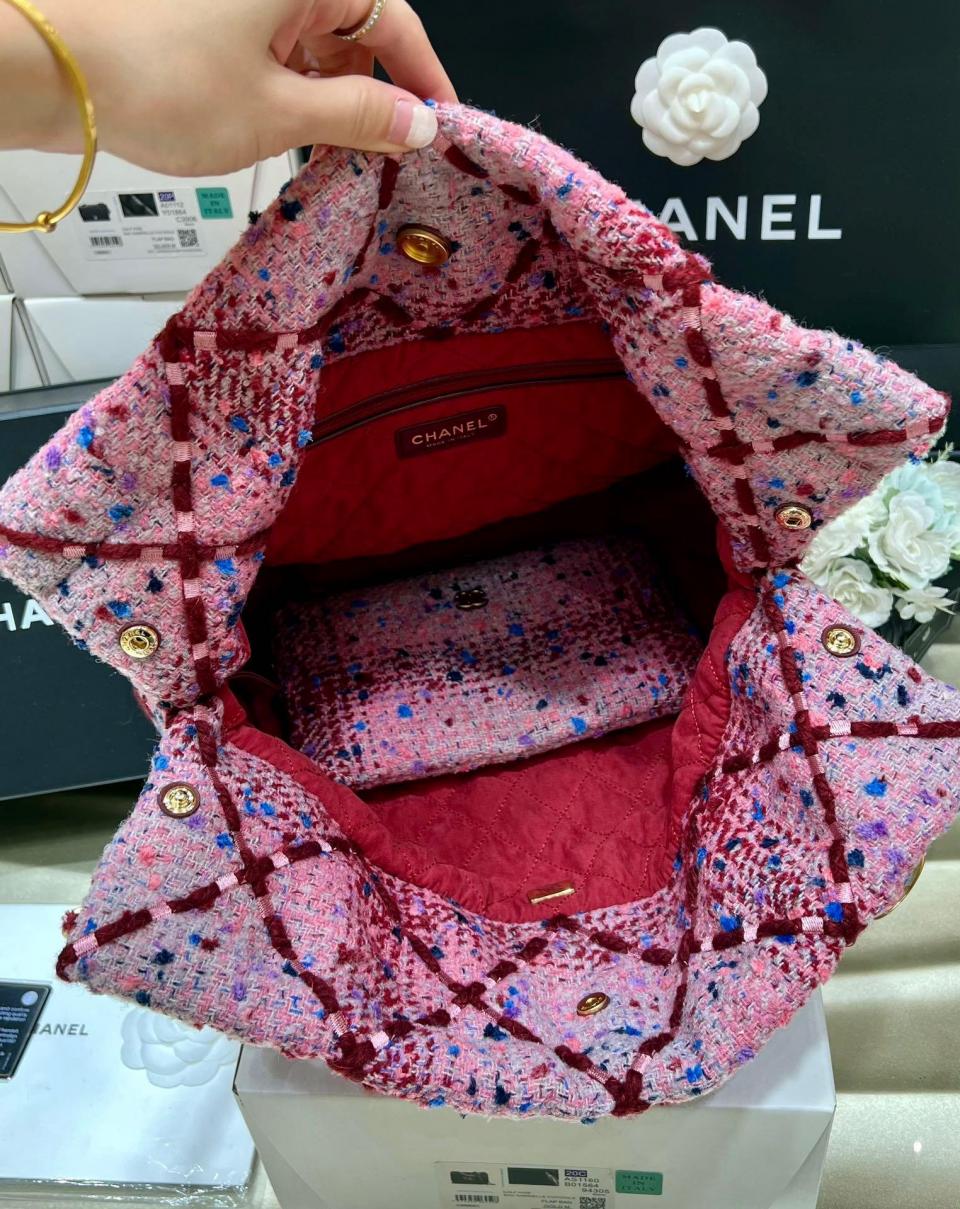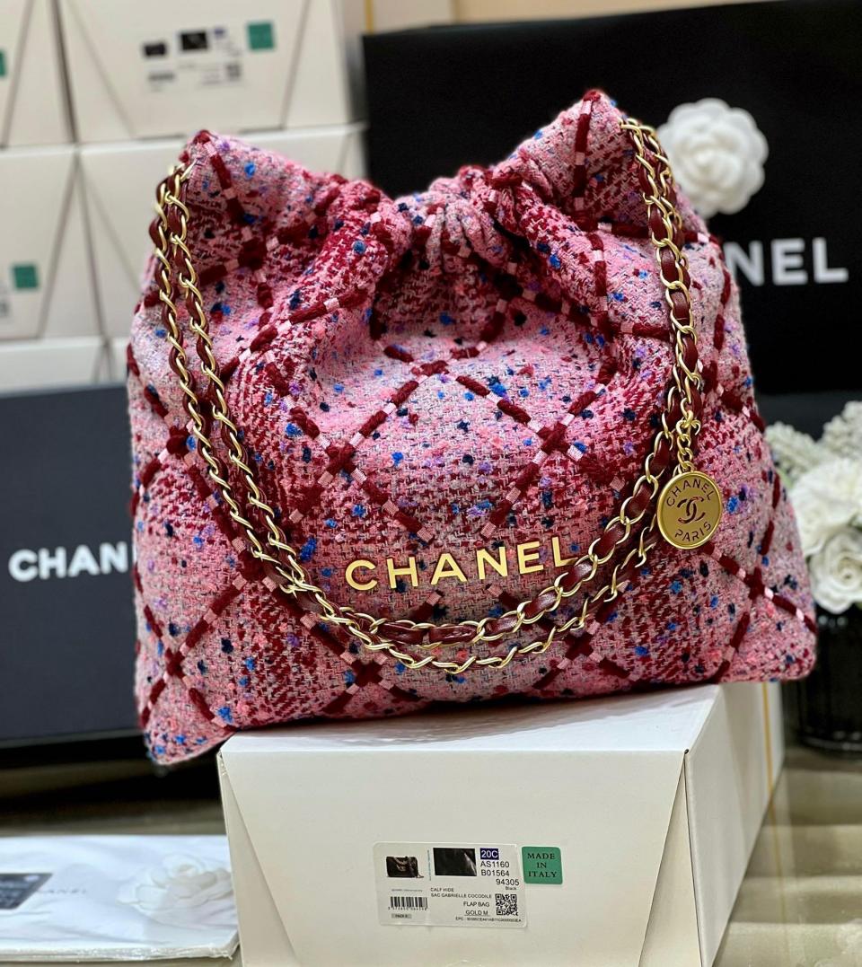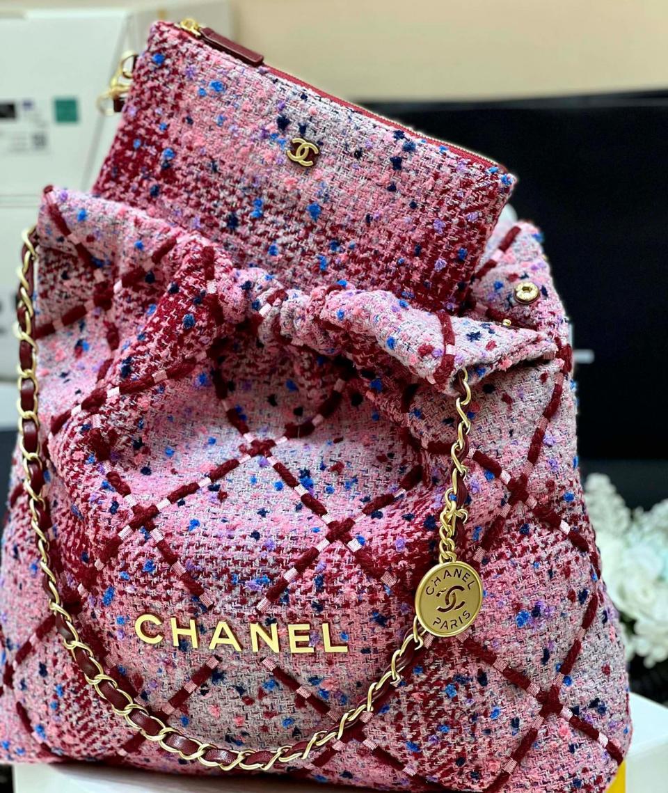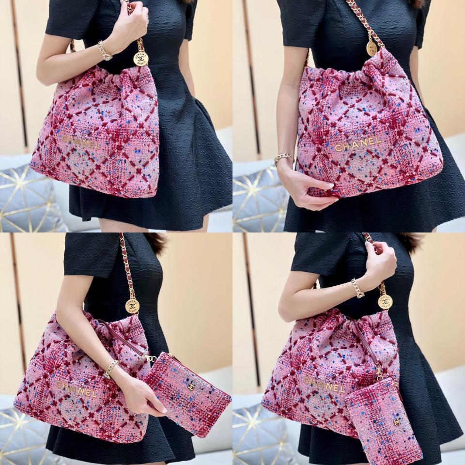 2022秋冬新品 新配色來襲 超級火爆款 22bag粉色花呢單肩購物袋(中號)