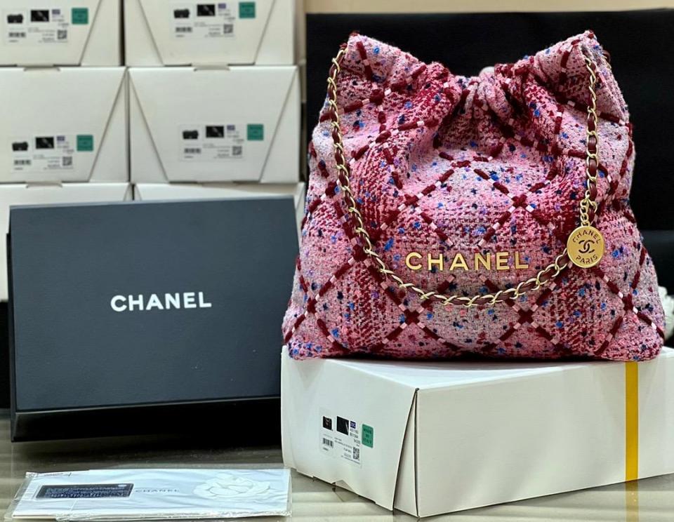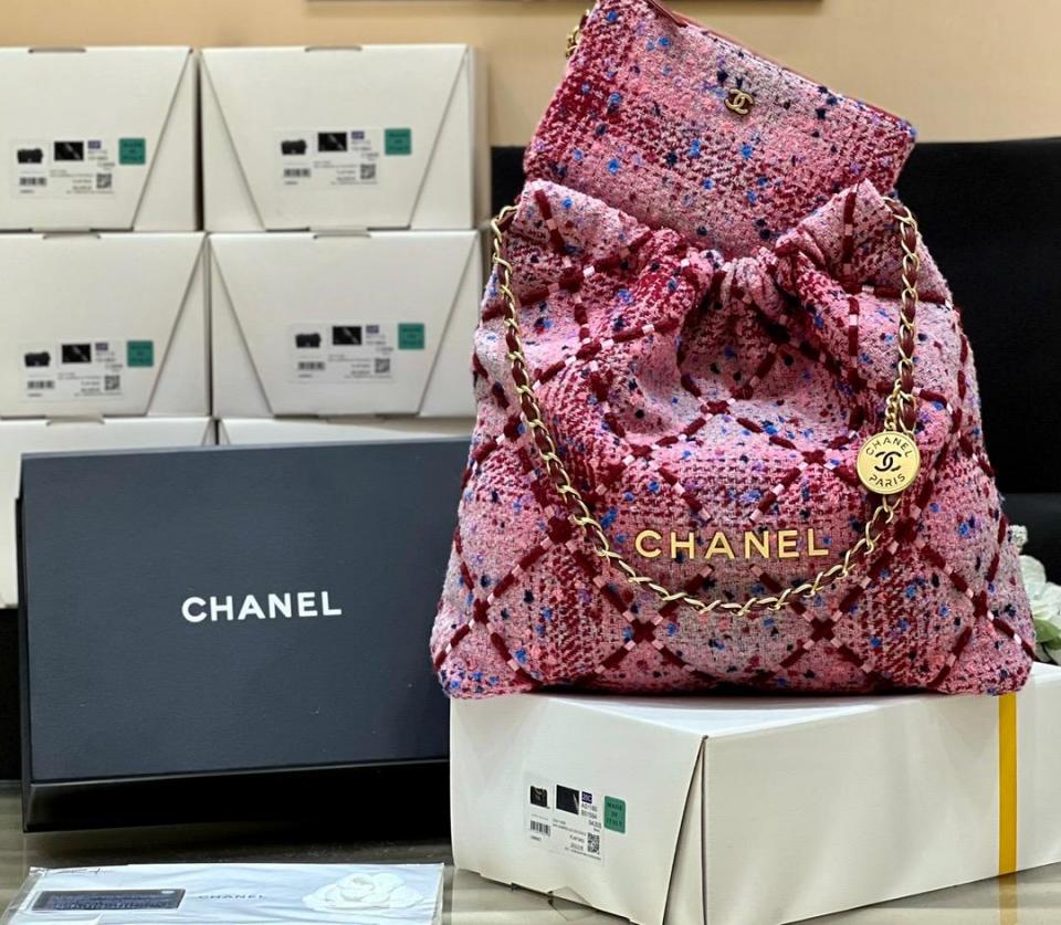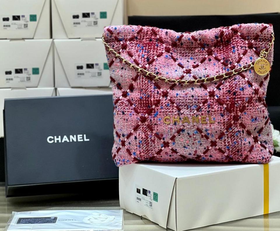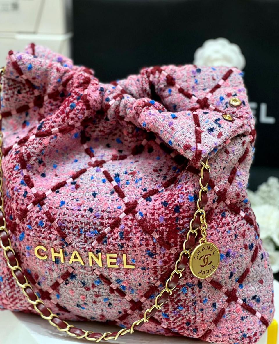 2022秋冬新品 新配色來襲 超級火爆款 22bag粉色花呢單肩購物袋(中號)